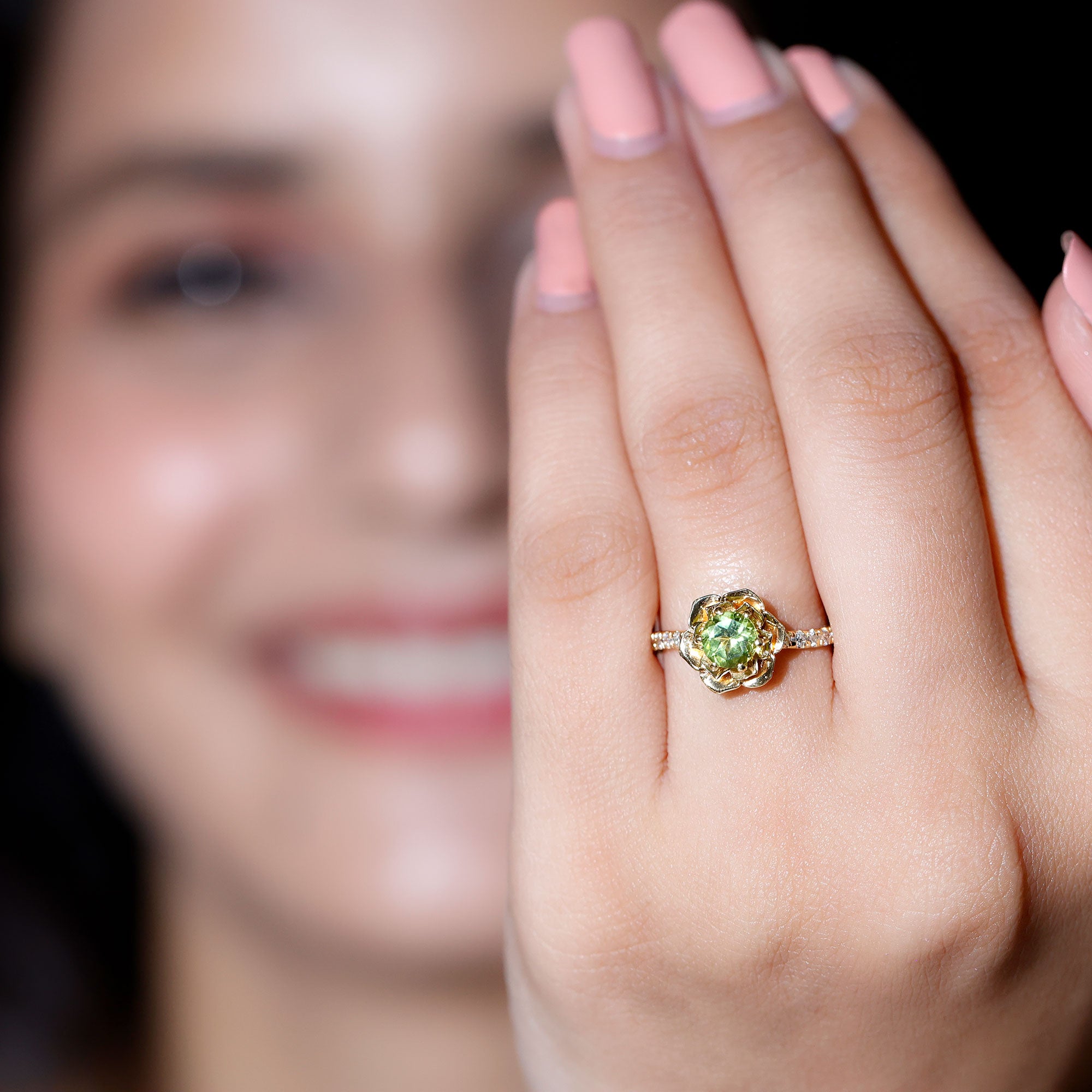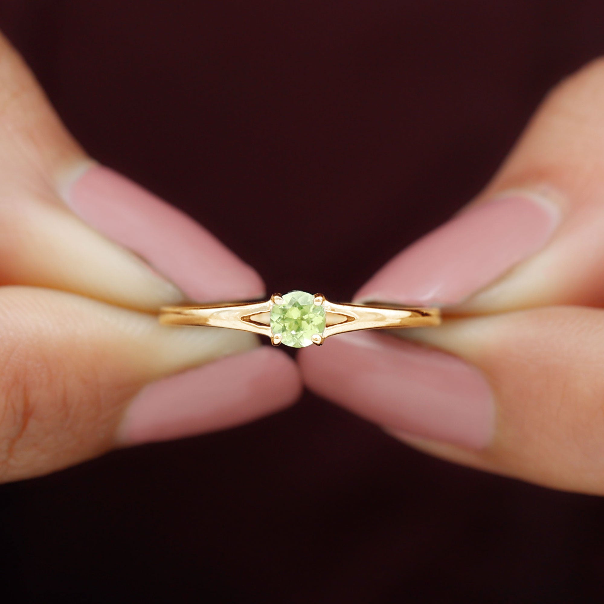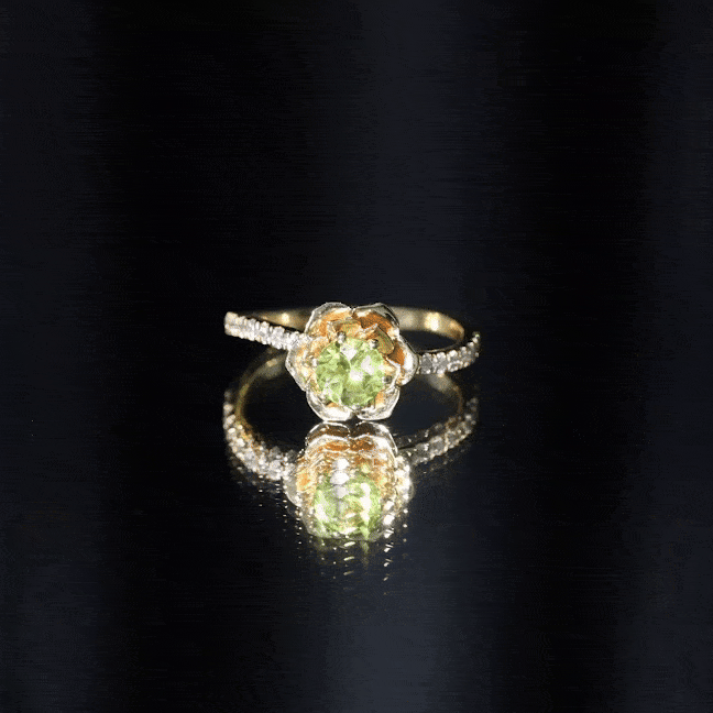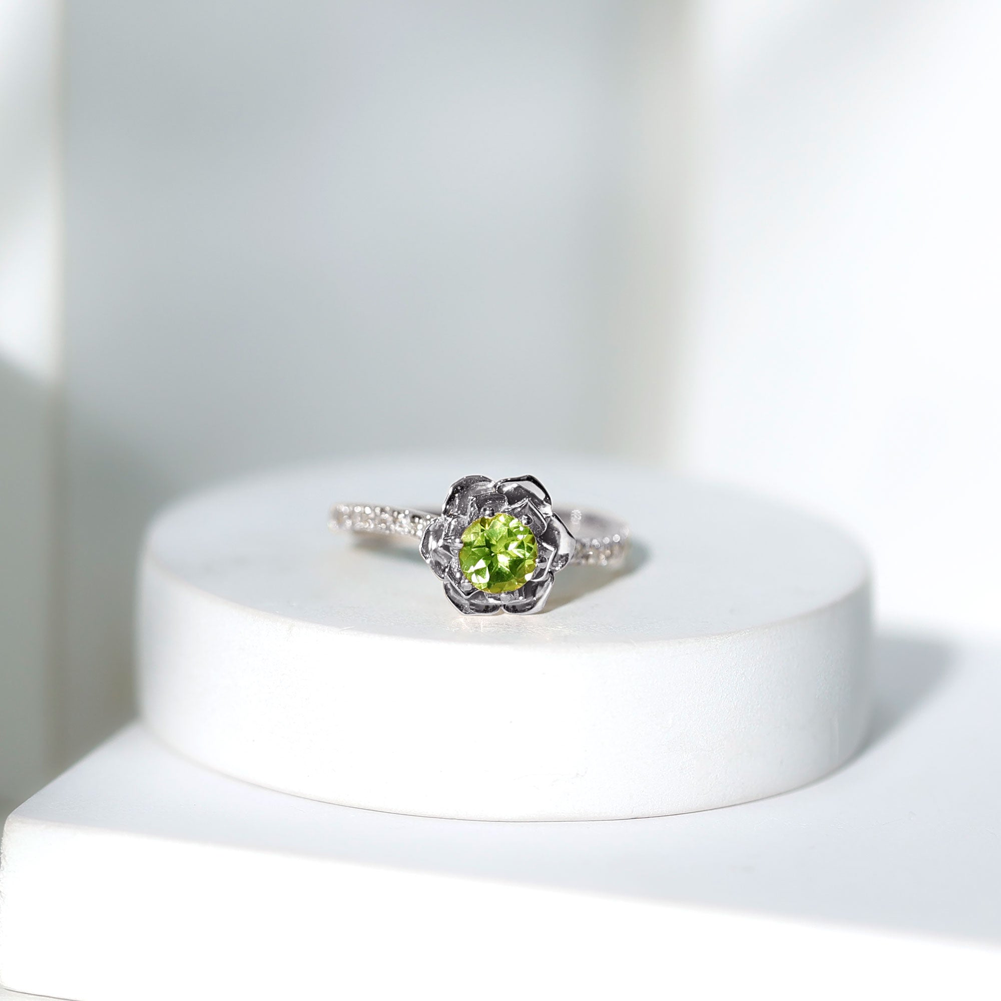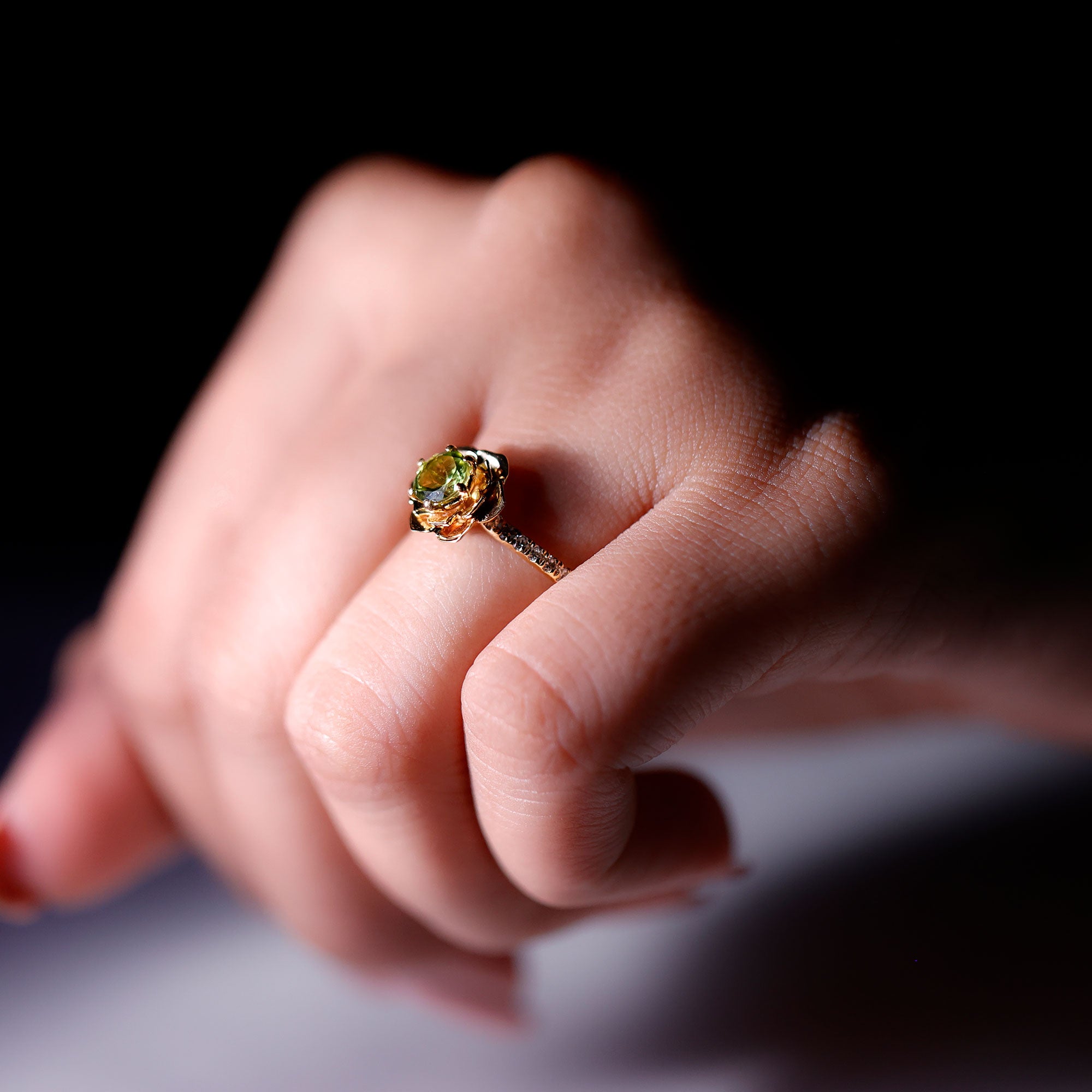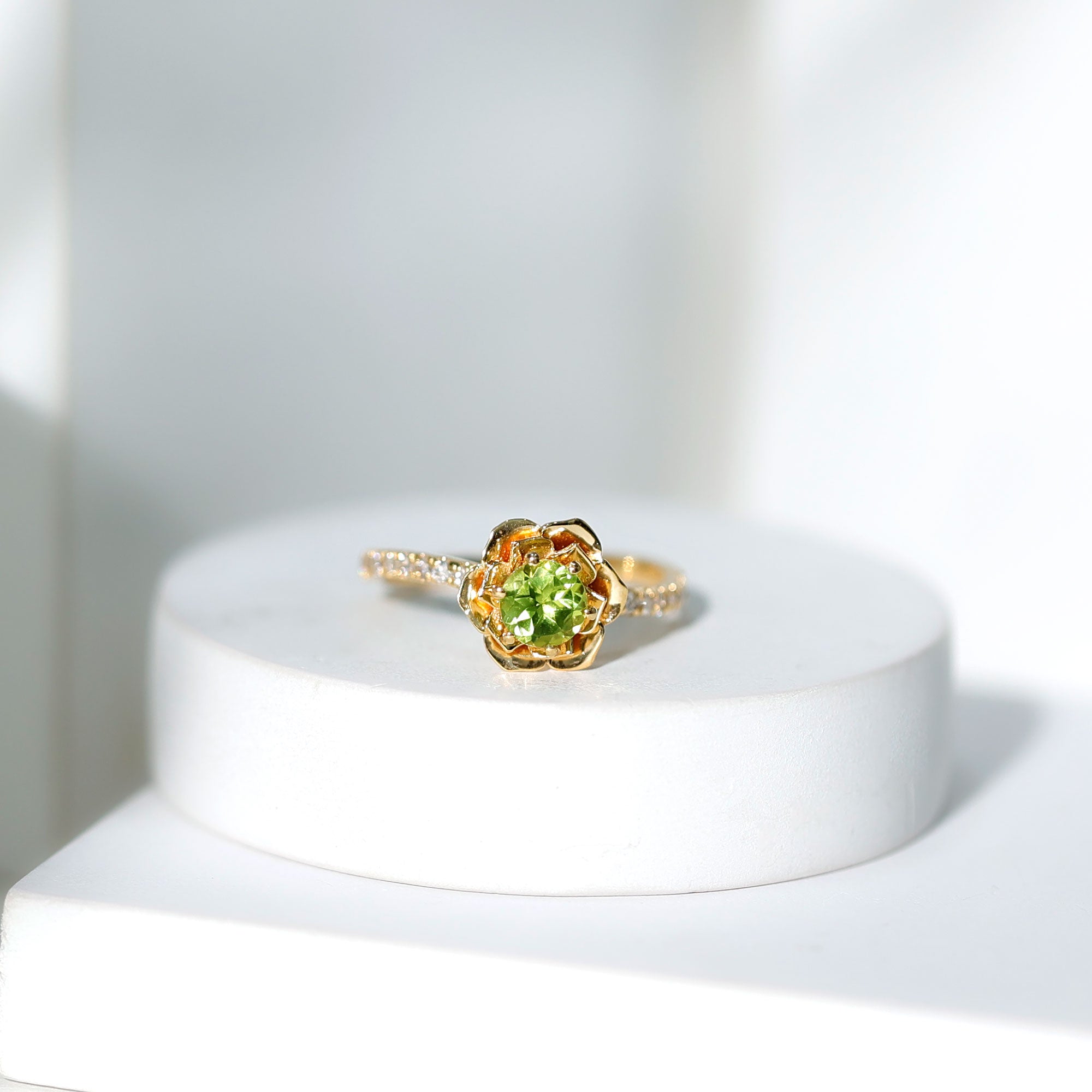 • Rose Gold: A Rose Gold Peridot Ring appeals with its uniquely feminine aesthetic, which is a result of its subtle pinkish hue.