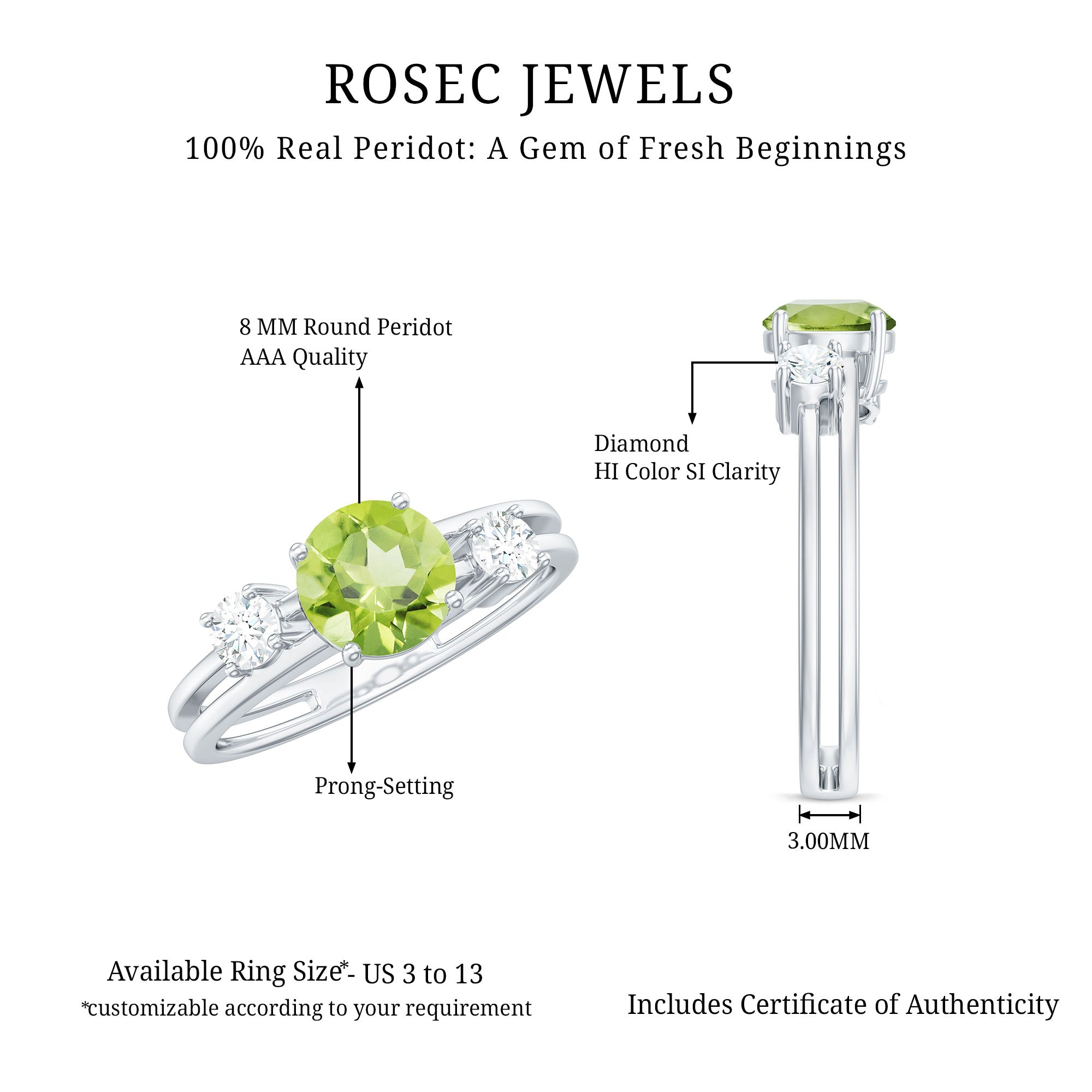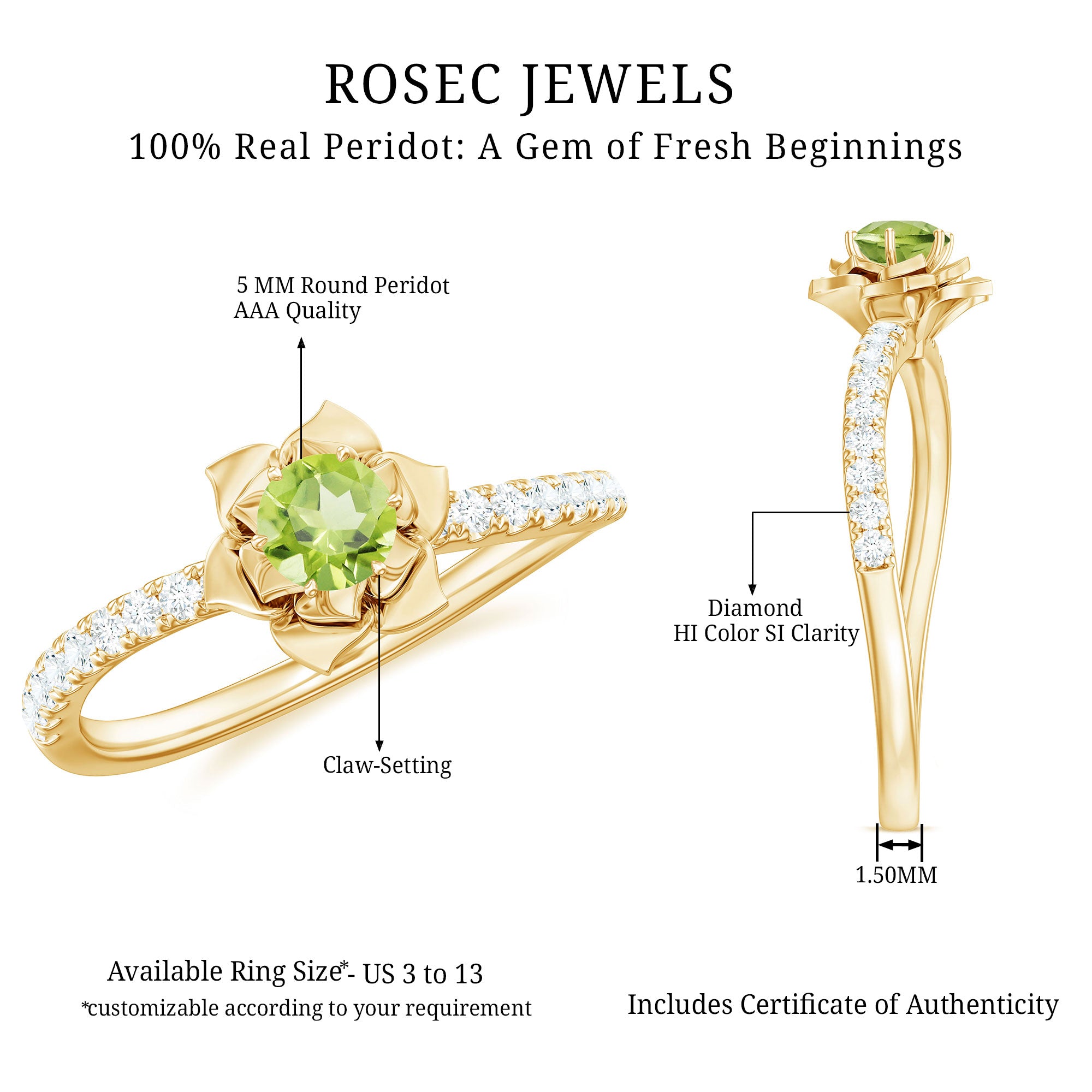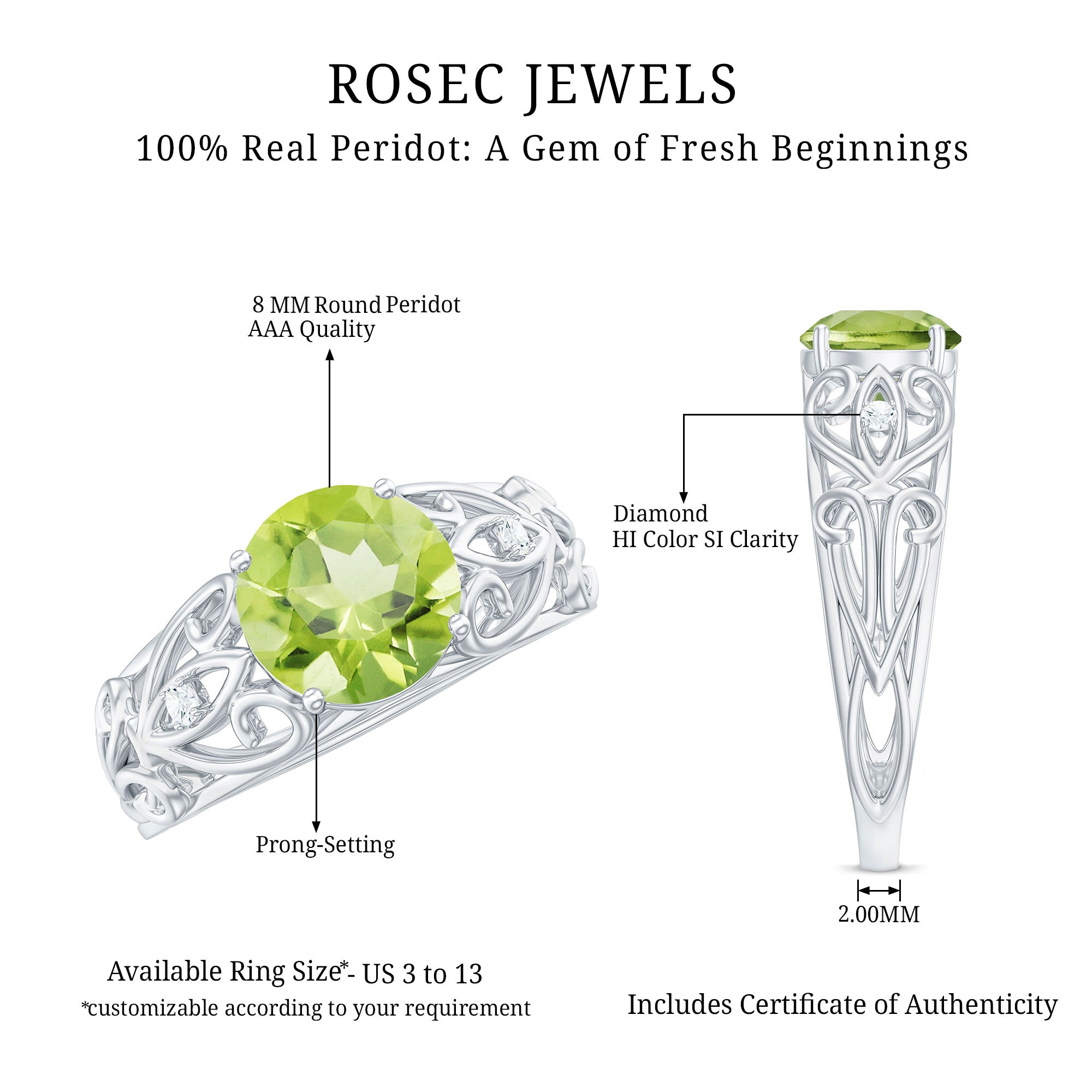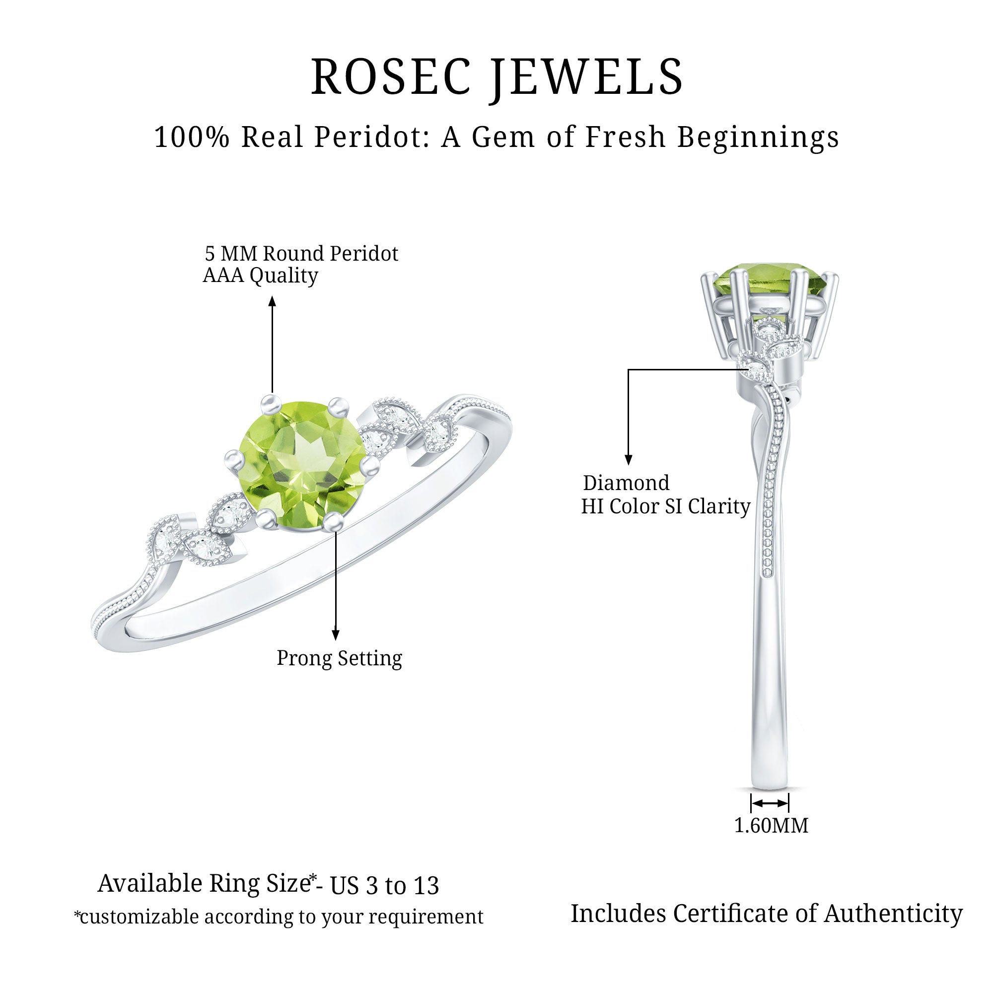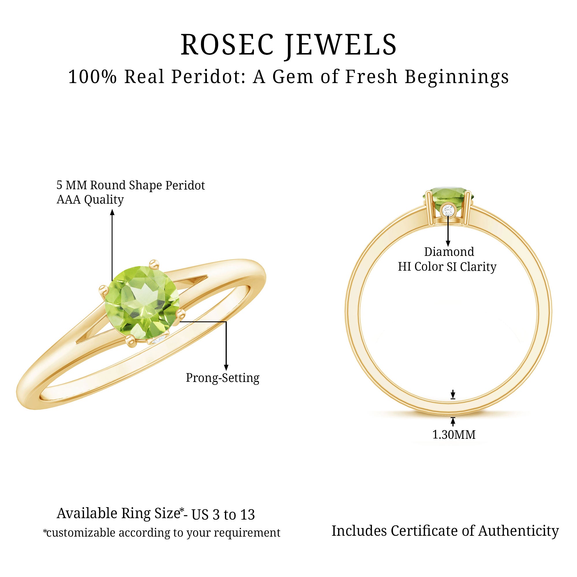 • Rose Gold: A Rose Gold Peridot Ring appeals with its uniquely feminine aesthetic, which is a result of its subtle pinkish hue.