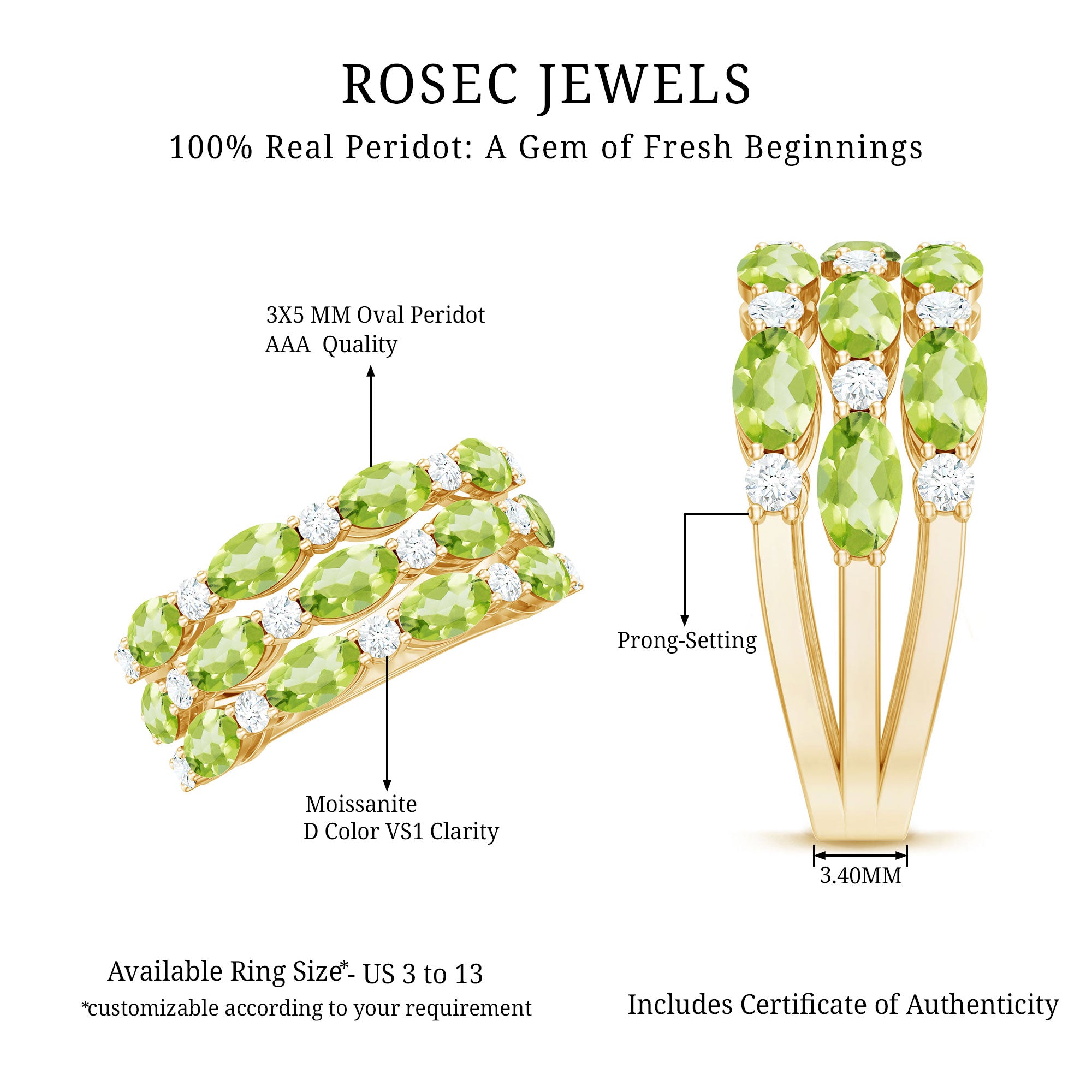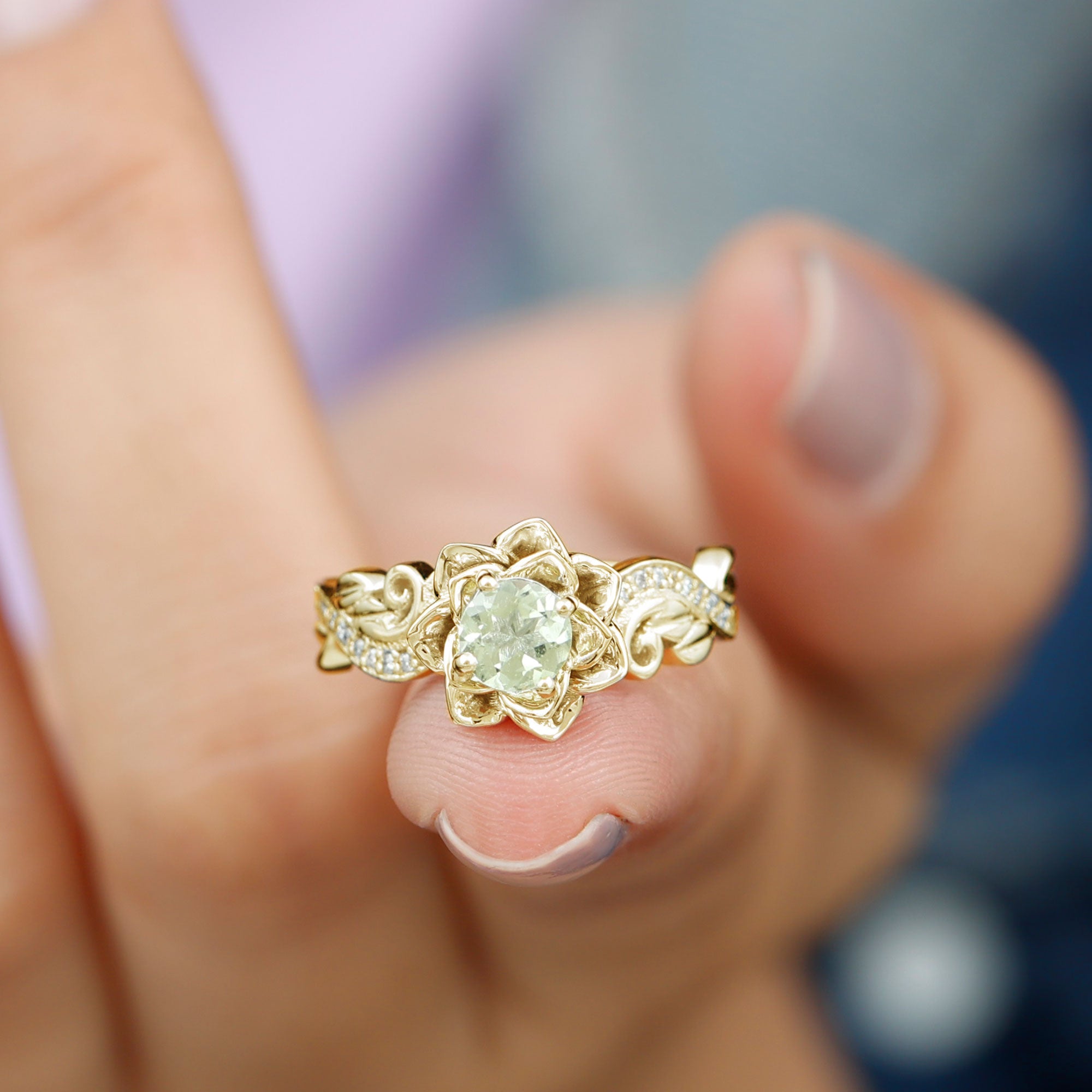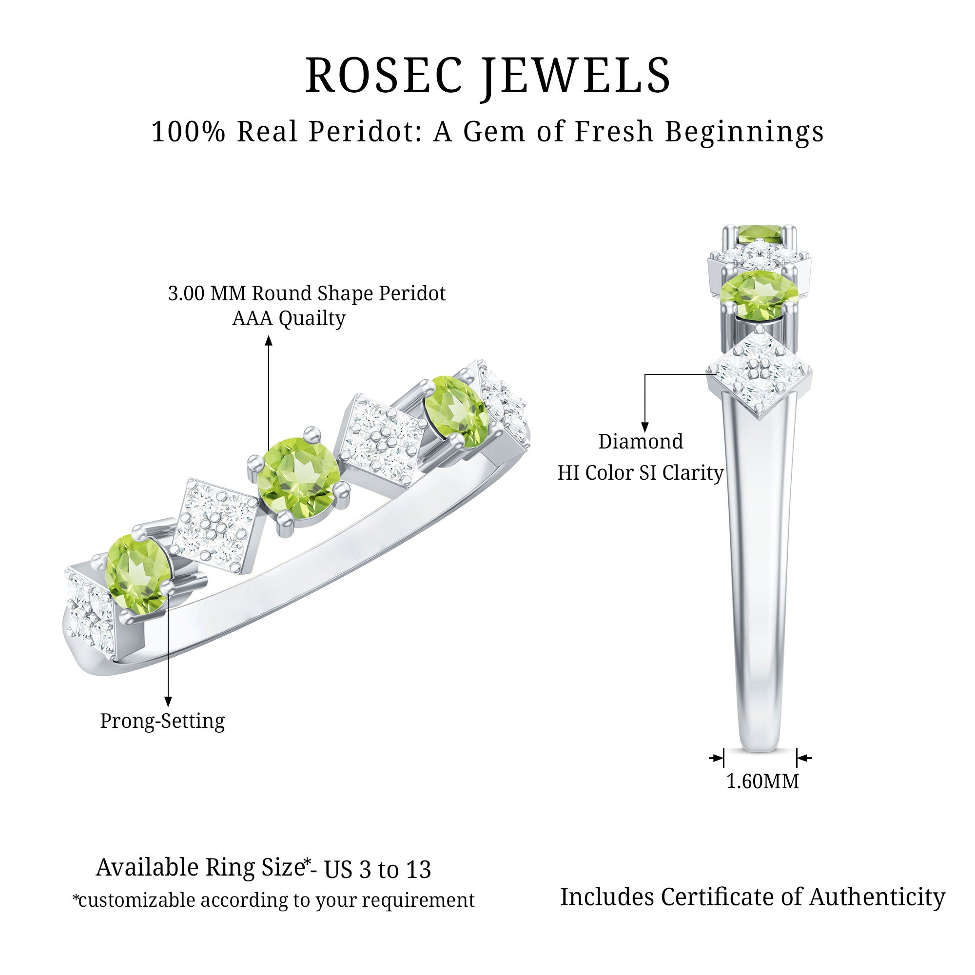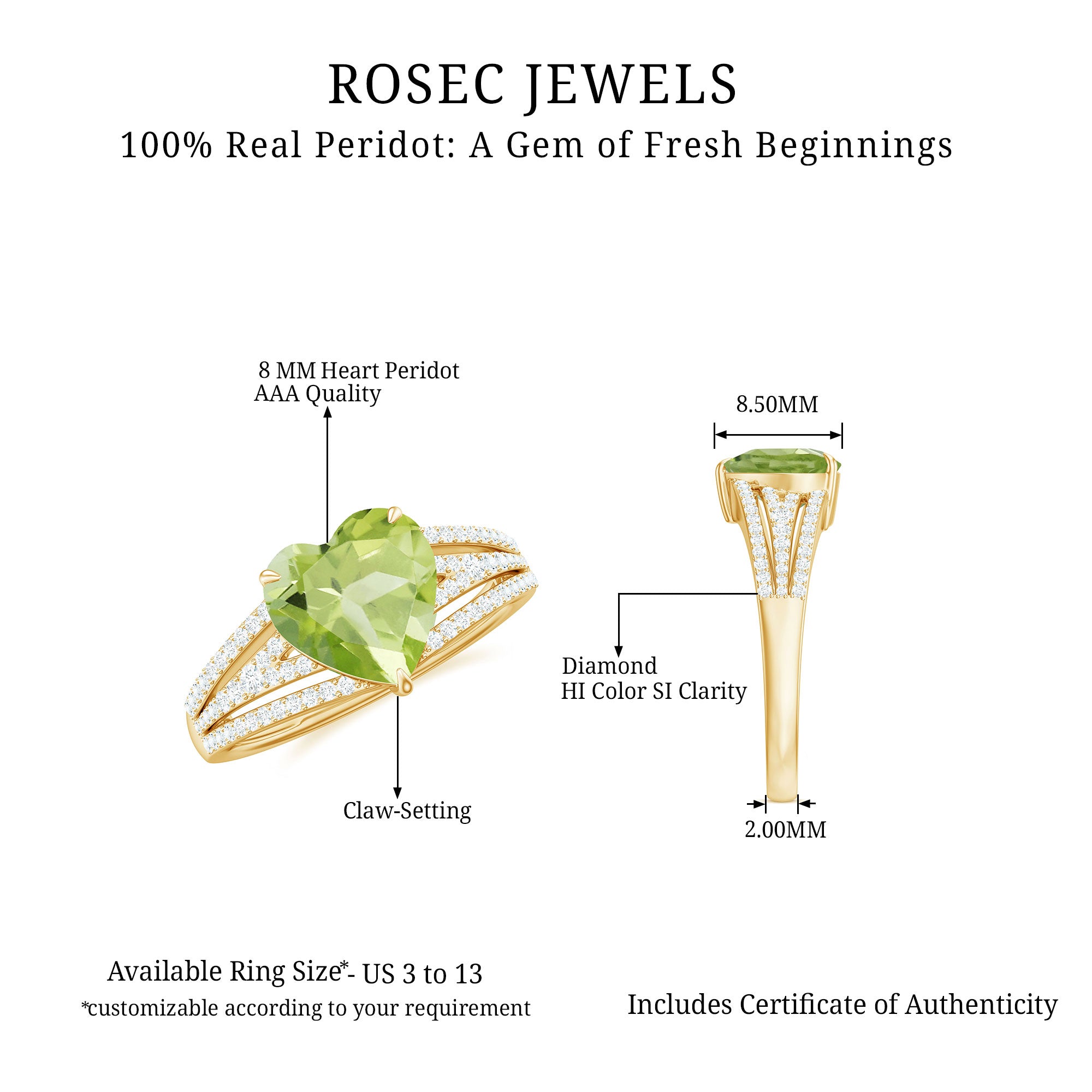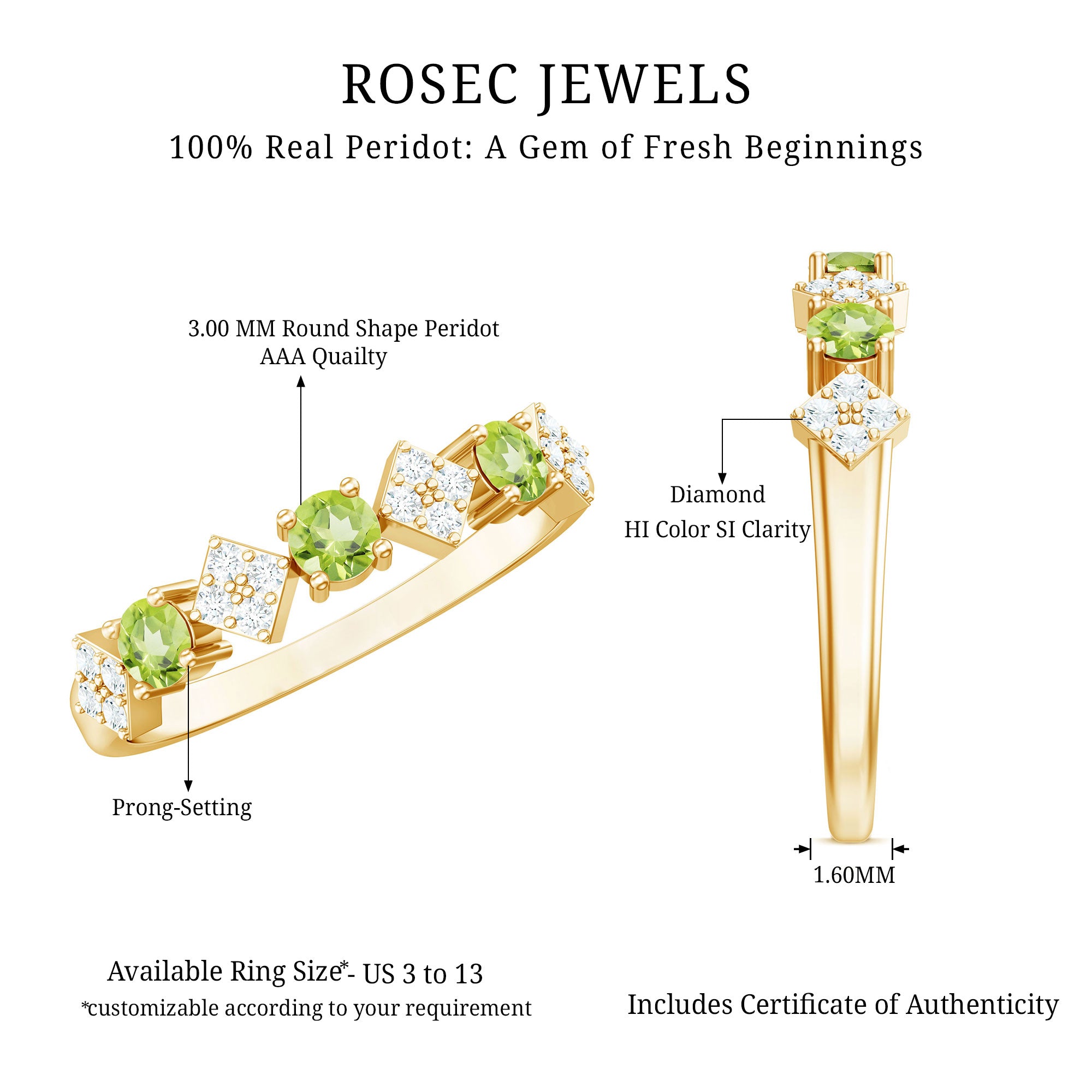 • Rose Gold: A Rose Gold Peridot Ring appeals with its uniquely feminine aesthetic, which is a result of its subtle pinkish hue.