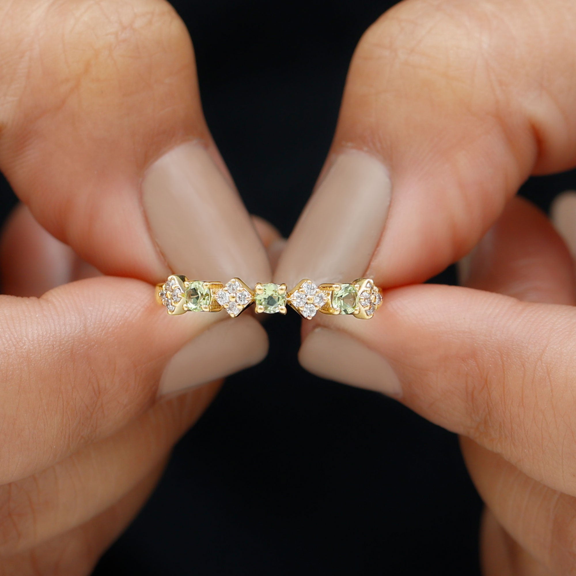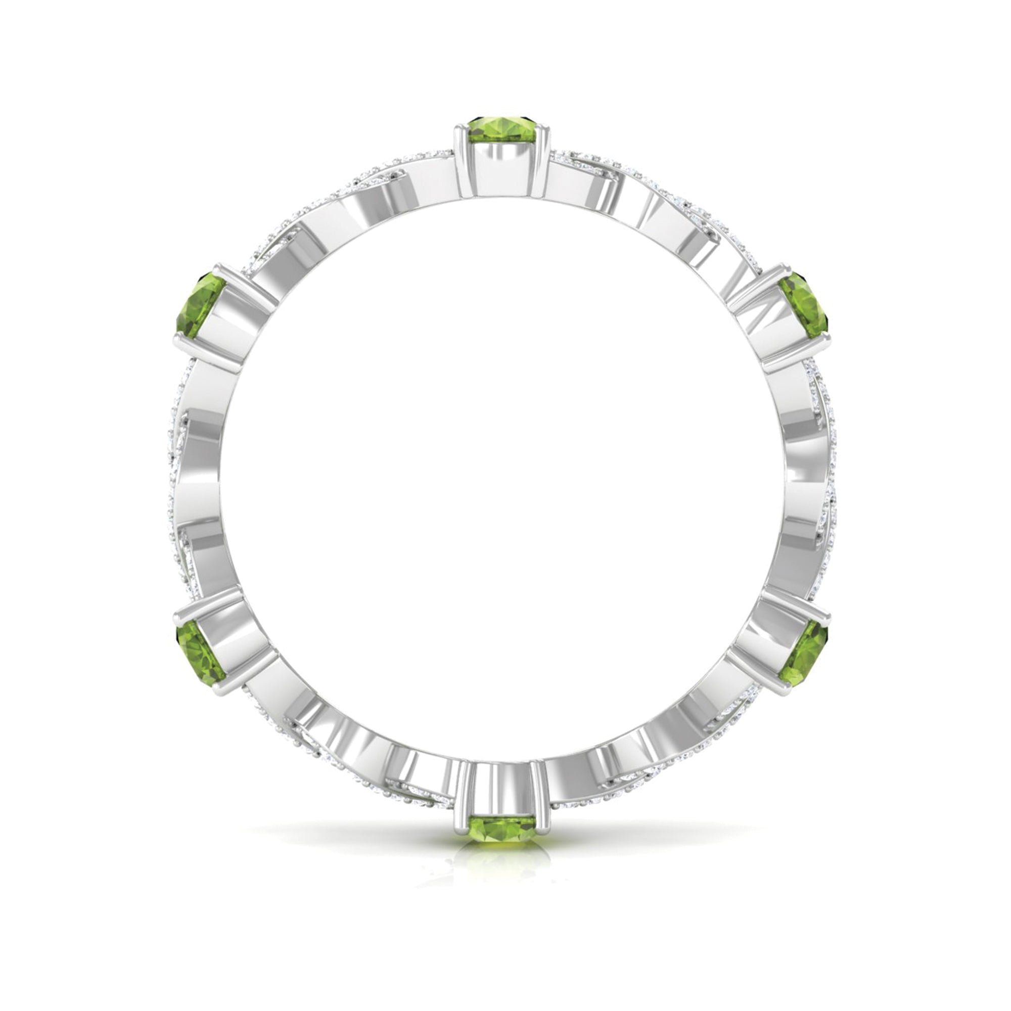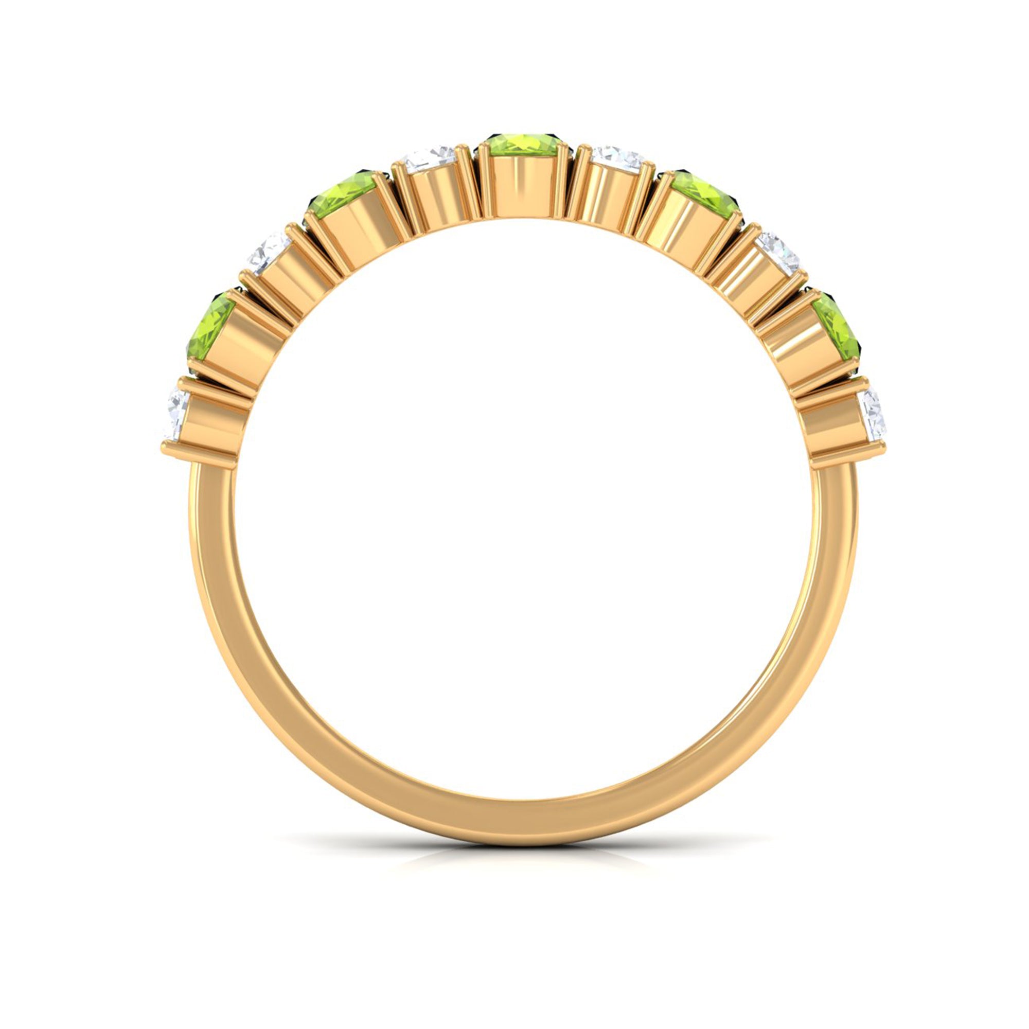 Aesthetically, a Peridot Wedding Ring is embedded with Peridots all over the Band. It could range from a classic Peridot band to a somewhat dramatic triple-row Peridot Band or Scattered Peridot and Diamond Ring. The versatile part is that it also makes for one of the most unique Peridot Stackable Rings. Symbolically, it is exchanged during the wedding vows to commemorate the union of two people forever.