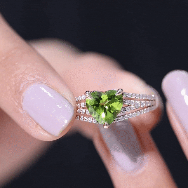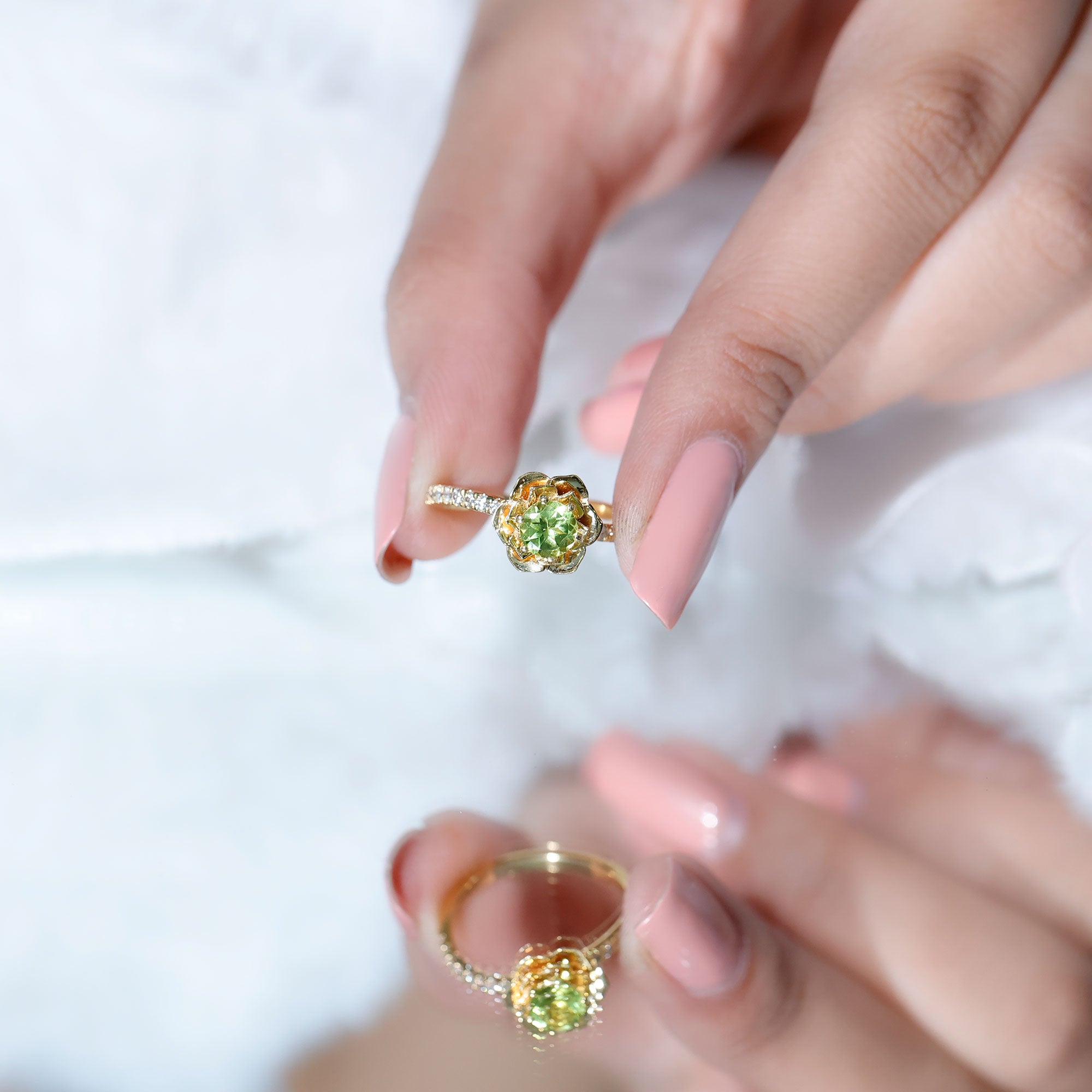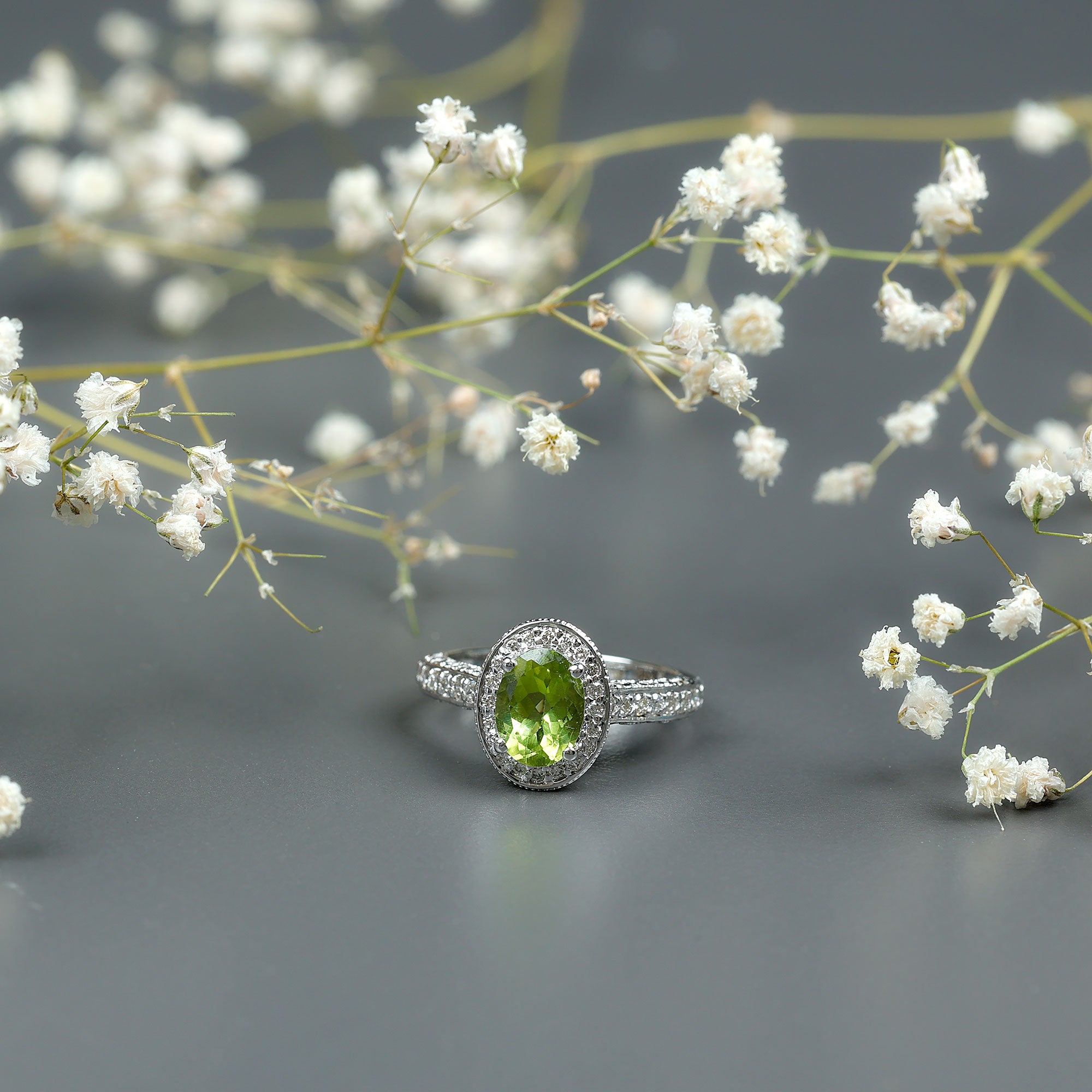 We only use 100% Natural Peridots, our peridots showcase a fascinating green hue and exceptional brilliance. You can choose from a wide range of ring styles like peridot solitaire rings, vintage peridot rings, and more for yourself or a loved one.