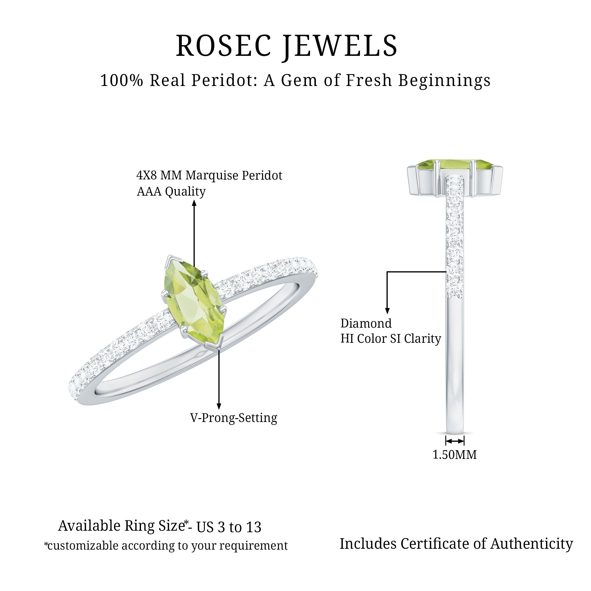 Held in high regard as one of the most classic Peridot Engagement Rings out there, it is characterized by a solo centerpiece of Peridot that steals the limelight. It can also be labeled as the most versatile ring style since the Peridot Solitaire offers you a sea of options in terms of aesthetics, be it the classic Round Peridot Rings offering a traditional aesthetic, the ones fashioned with Pear, Marquise, and Princess exuding an unconventional touch, or Asscher and Emerald Cut Peridot Rings for that perfect vintage vibe.