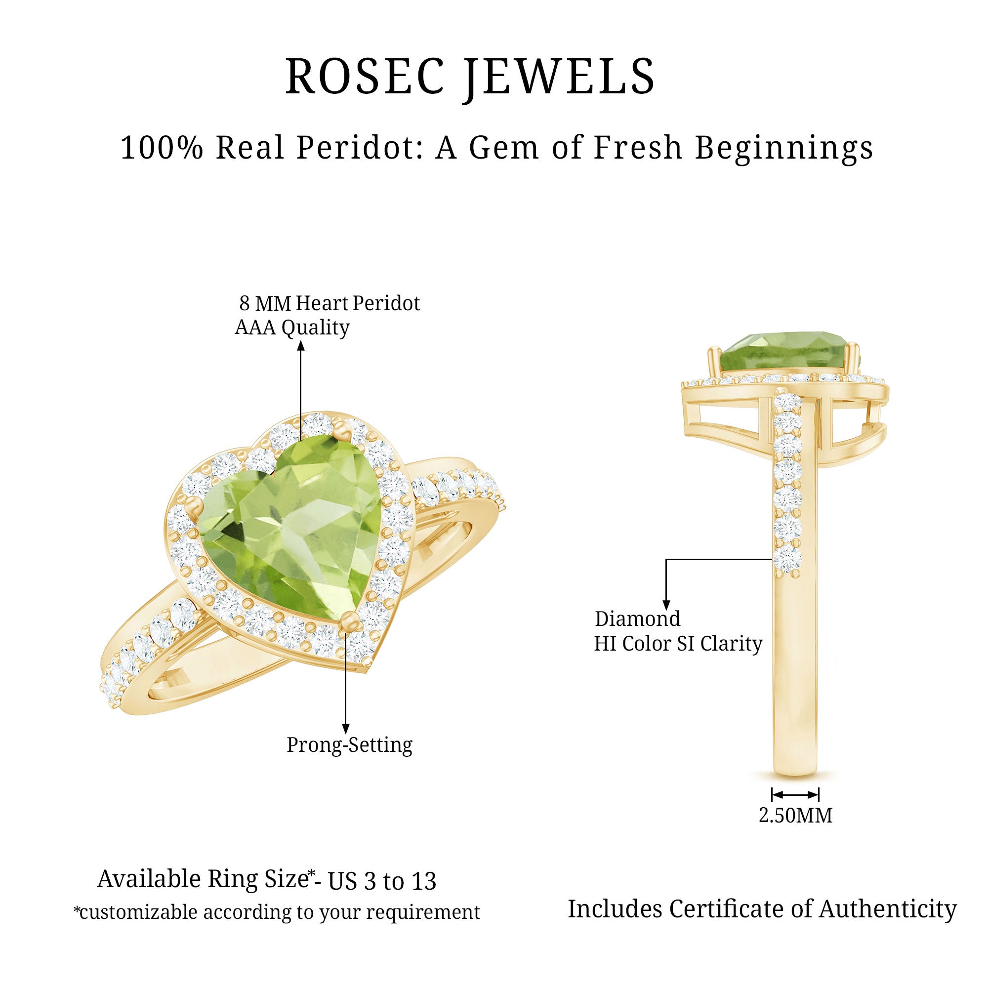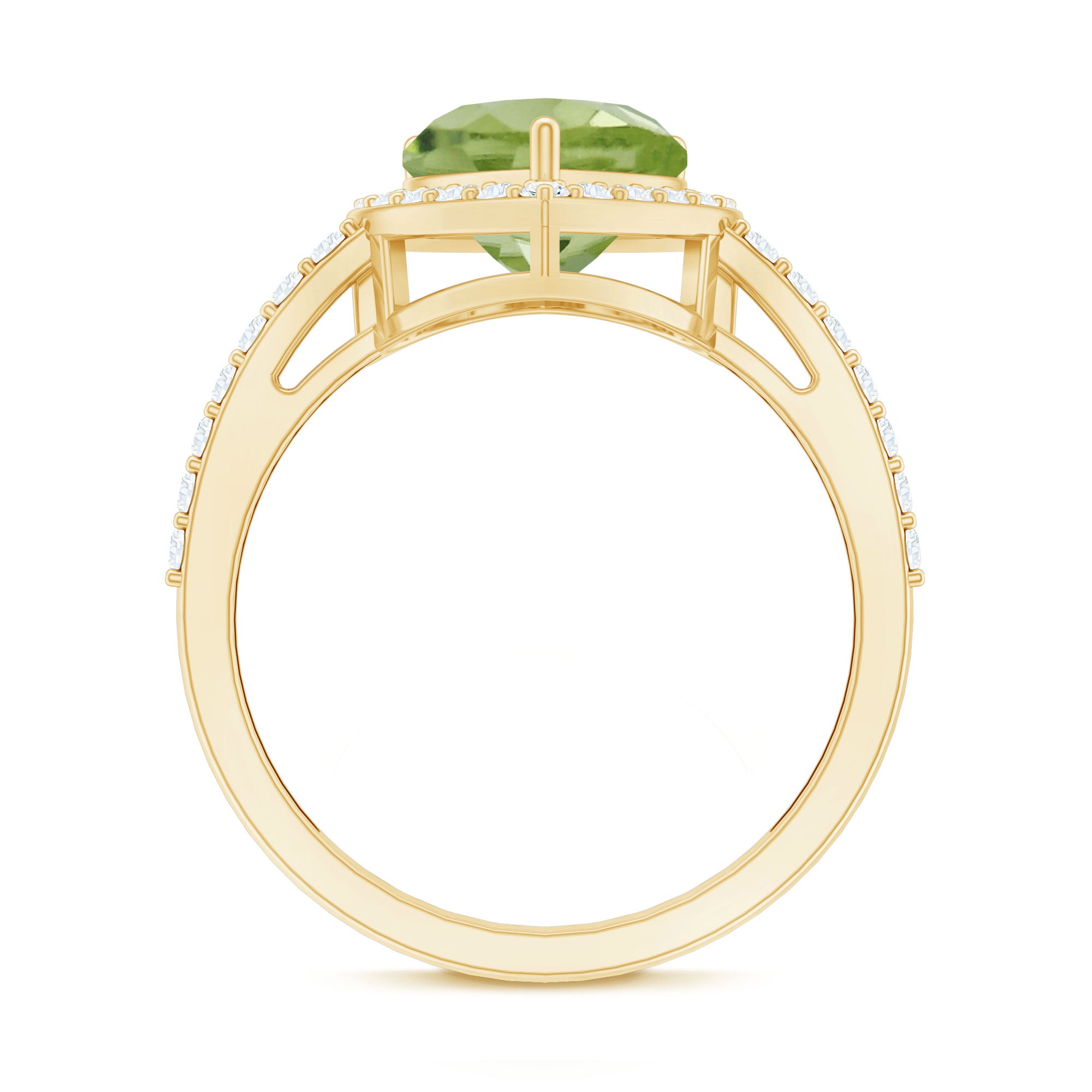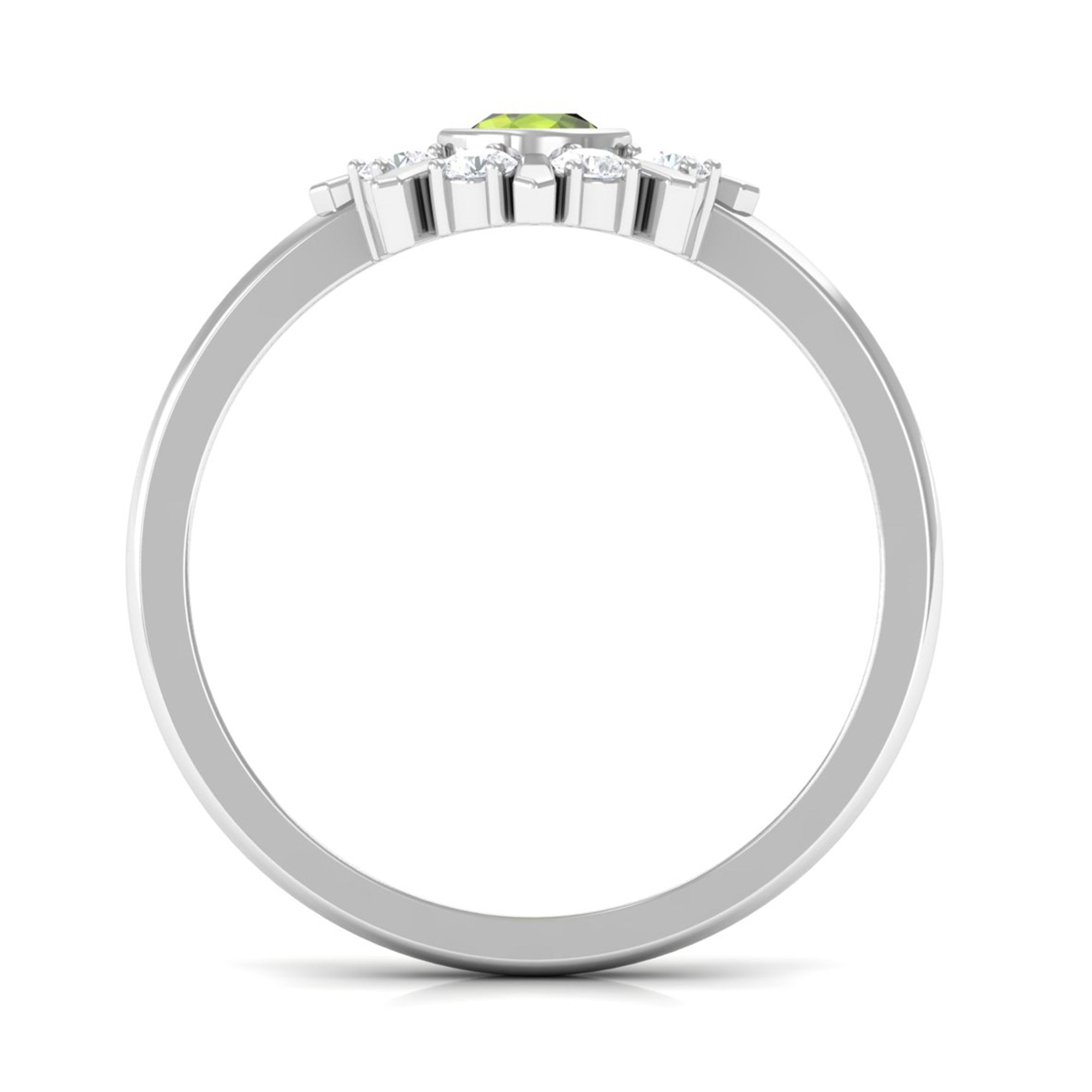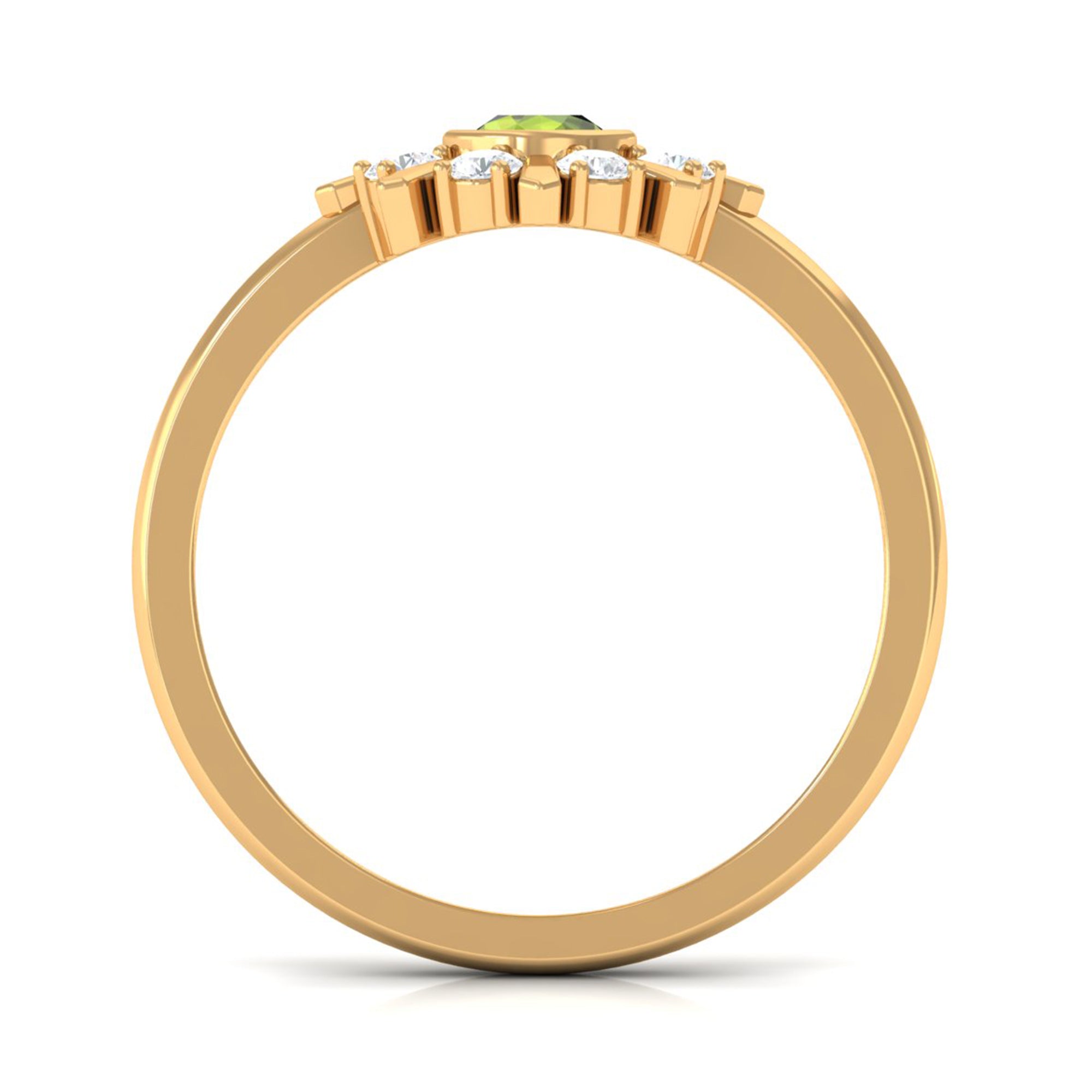 Held in high regard as one of the most classic Peridot Engagement Rings out there, it is characterized by a solo centerpiece of Peridot that steals the limelight. It can also be labeled as the most versatile ring style since the Peridot Solitaire offers you a sea of options in terms of aesthetics, be it the classic Round Peridot Rings offering a traditional aesthetic, the ones fashioned with Pear, Marquise, and Princess exuding an unconventional touch, or Asscher and Emerald Cut Peridot Rings for that perfect vintage vibe.