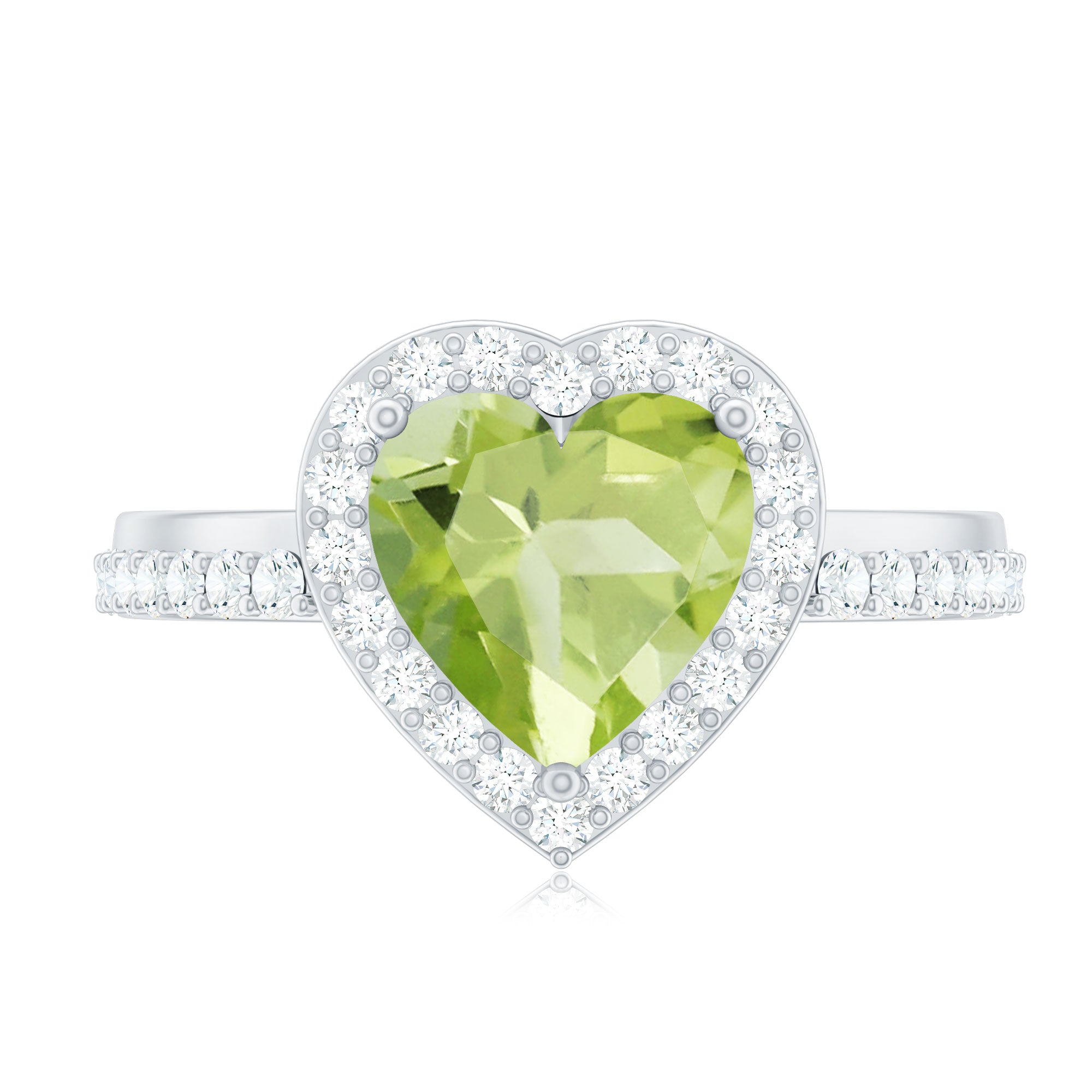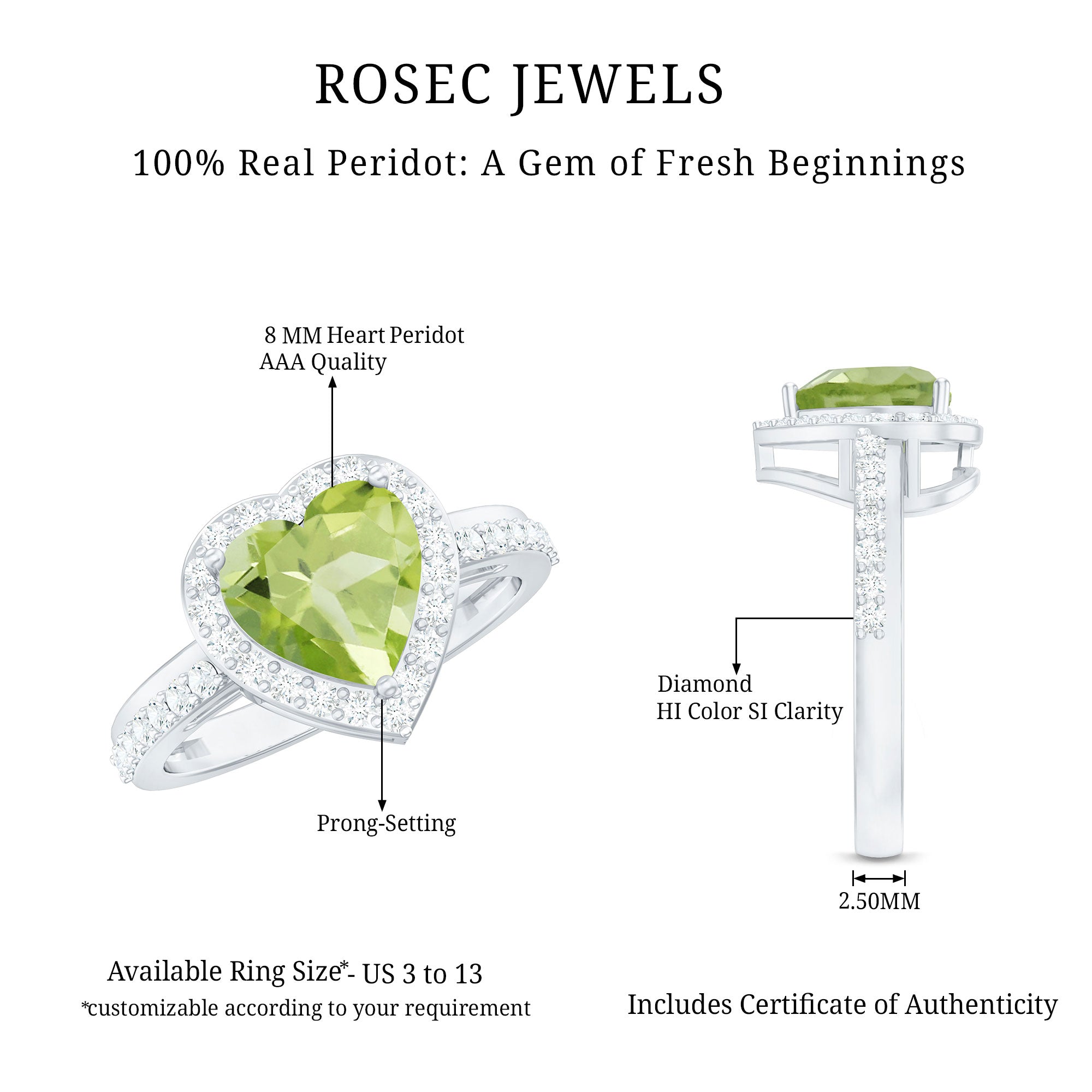 When the Centerpiece of Peridot is encircled with a shimmering row of Diamond/Moissanite (i.e., the Halo), it is termed a Peridot Halo Ring. Offering a unique touch to the otherwise classic Peridot Solitaire Ring, it highlights the center stone by making it appear bigger than its size. For those who are on the lookout for a Peridot and Diamond Ring, this Halo-style ring might end your hunt.