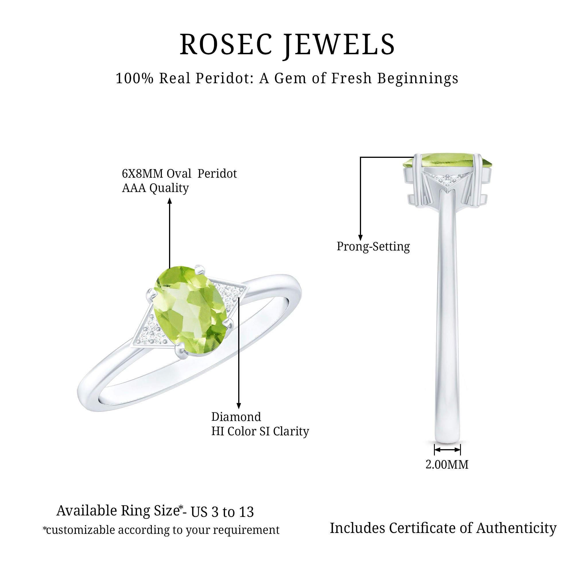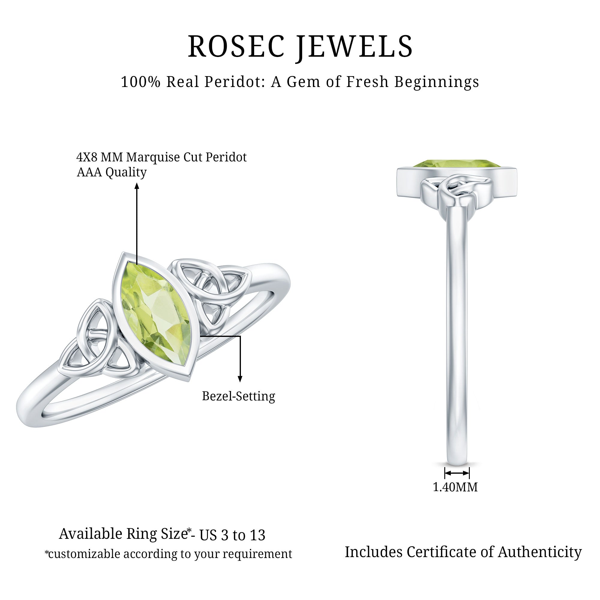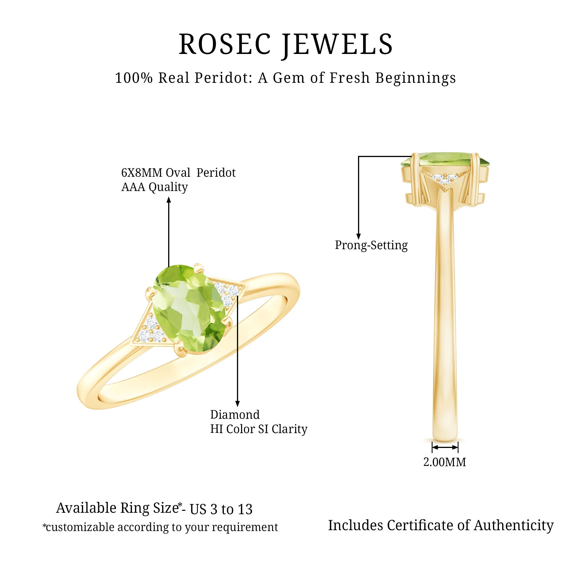 Rose Gold: A Rose Gold Peridot Ring appeals with its uniquely feminine aesthetic, which is a result of its subtle pinkish hue.