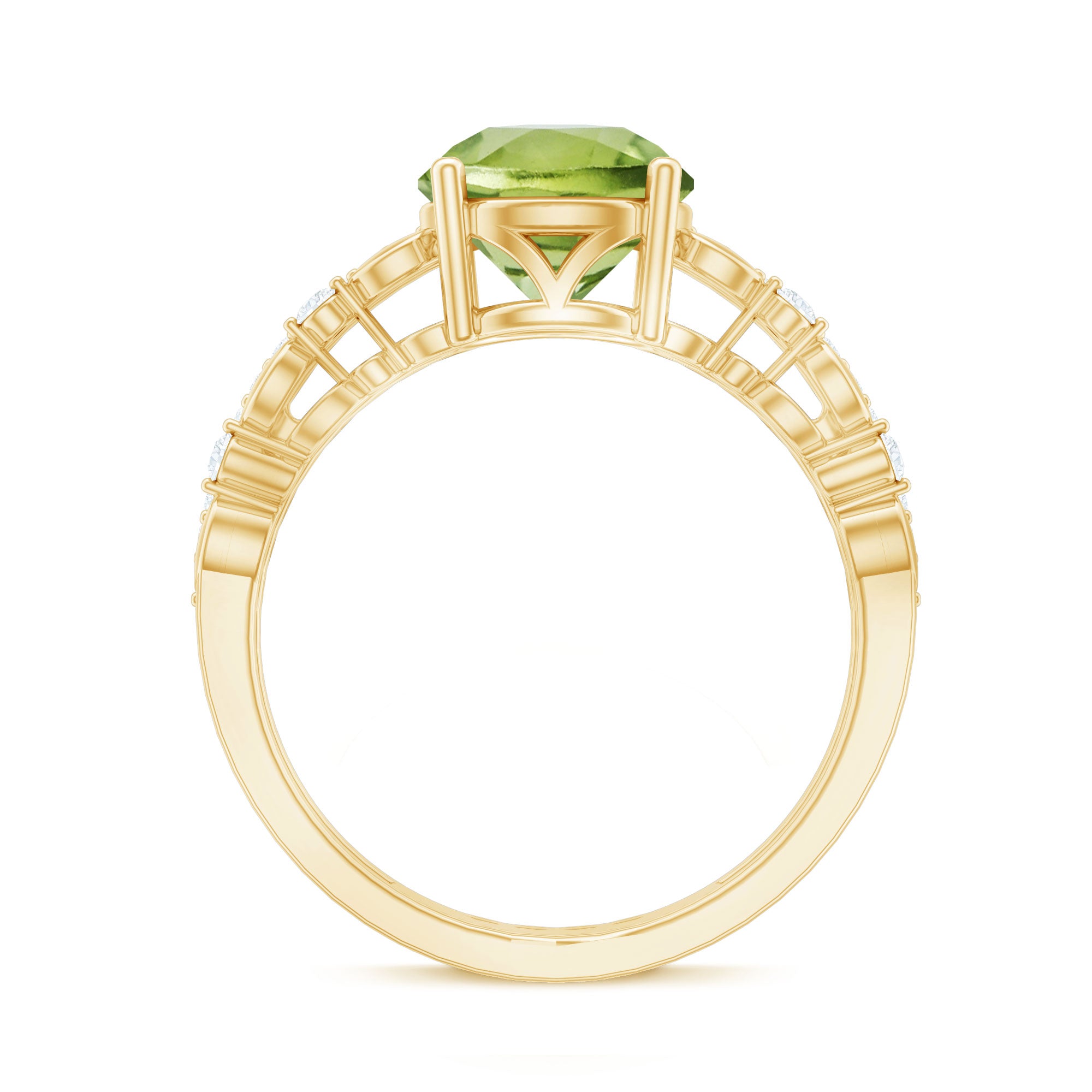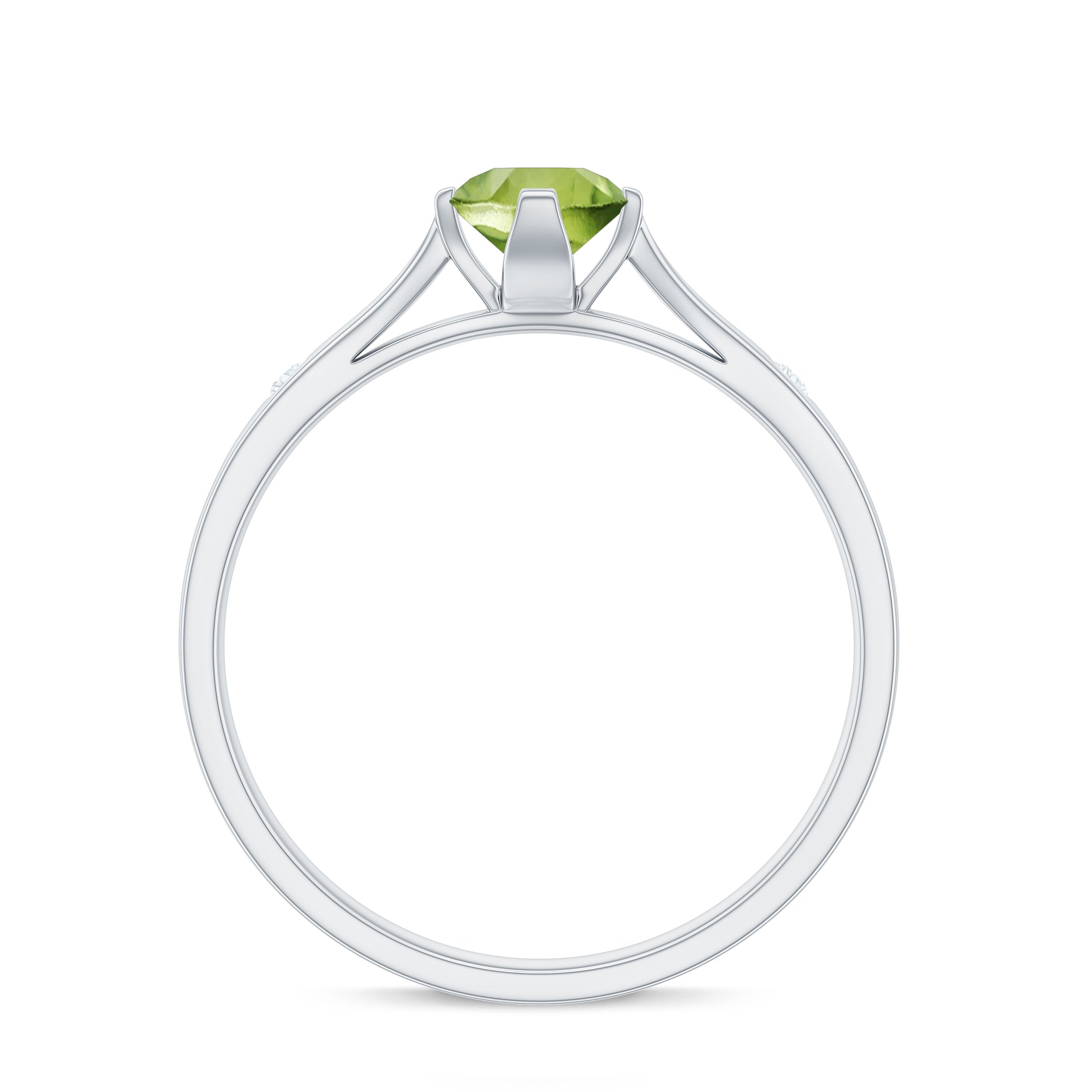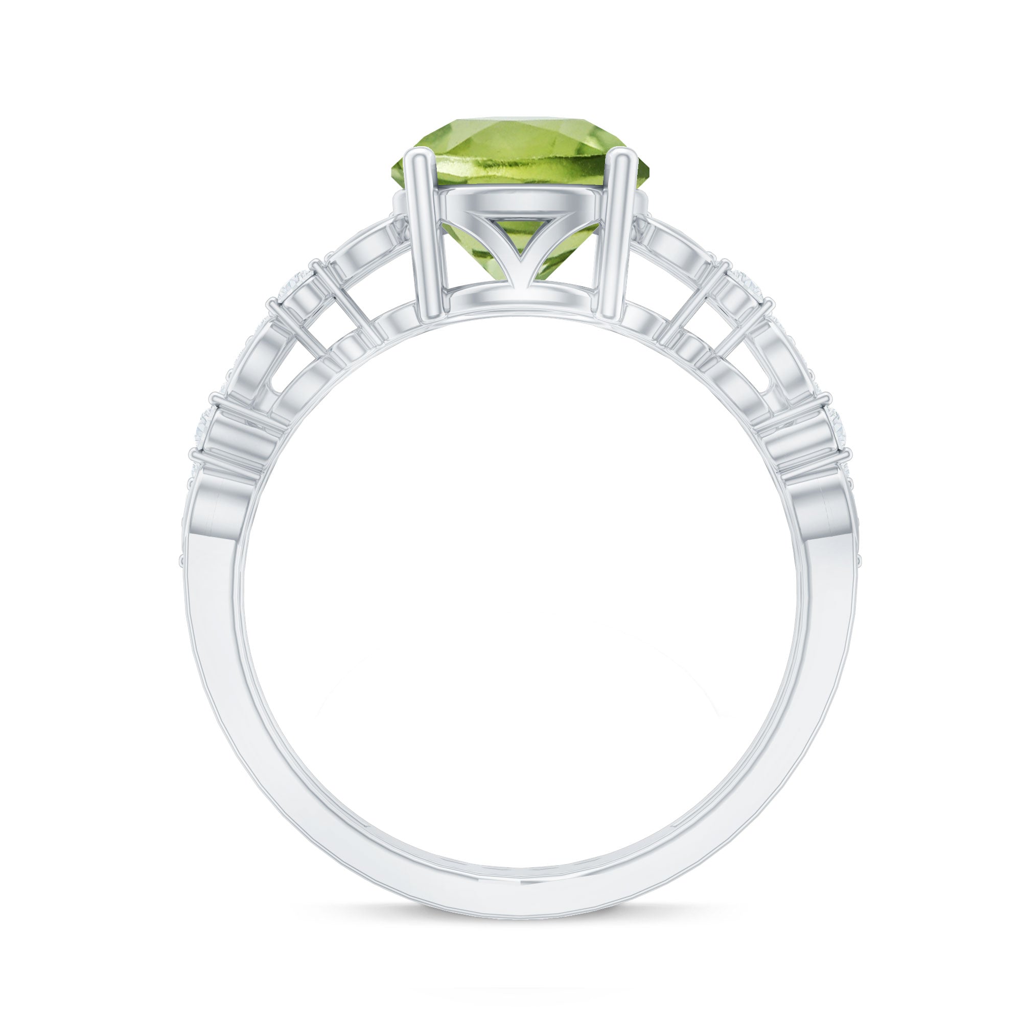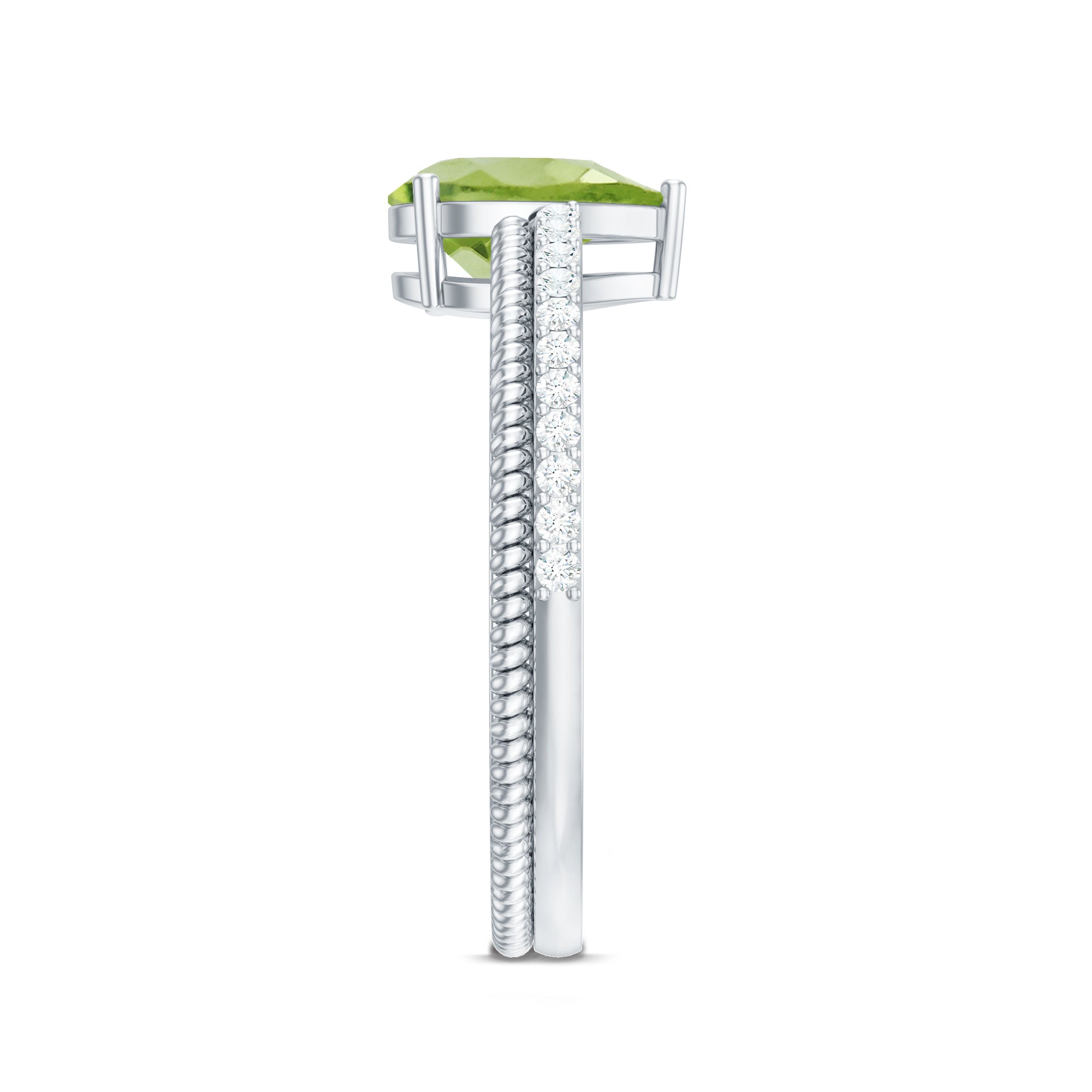 Held in high regard as one of the most classic Peridot Engagement Rings out there, it is characterized by a solo centerpiece of Peridot that steals the limelight. It can also be labeled as the most versatile ring style since the Peridot Solitaire offers you a sea of options in terms of aesthetics, be it the classic Round Peridot Rings offering a traditional aesthetic, the ones fashioned with Pear, Marquise, and Princess exuding an unconventional touch, or Asscher and Emerald Cut Peridot Rings for that perfect vintage vibe.