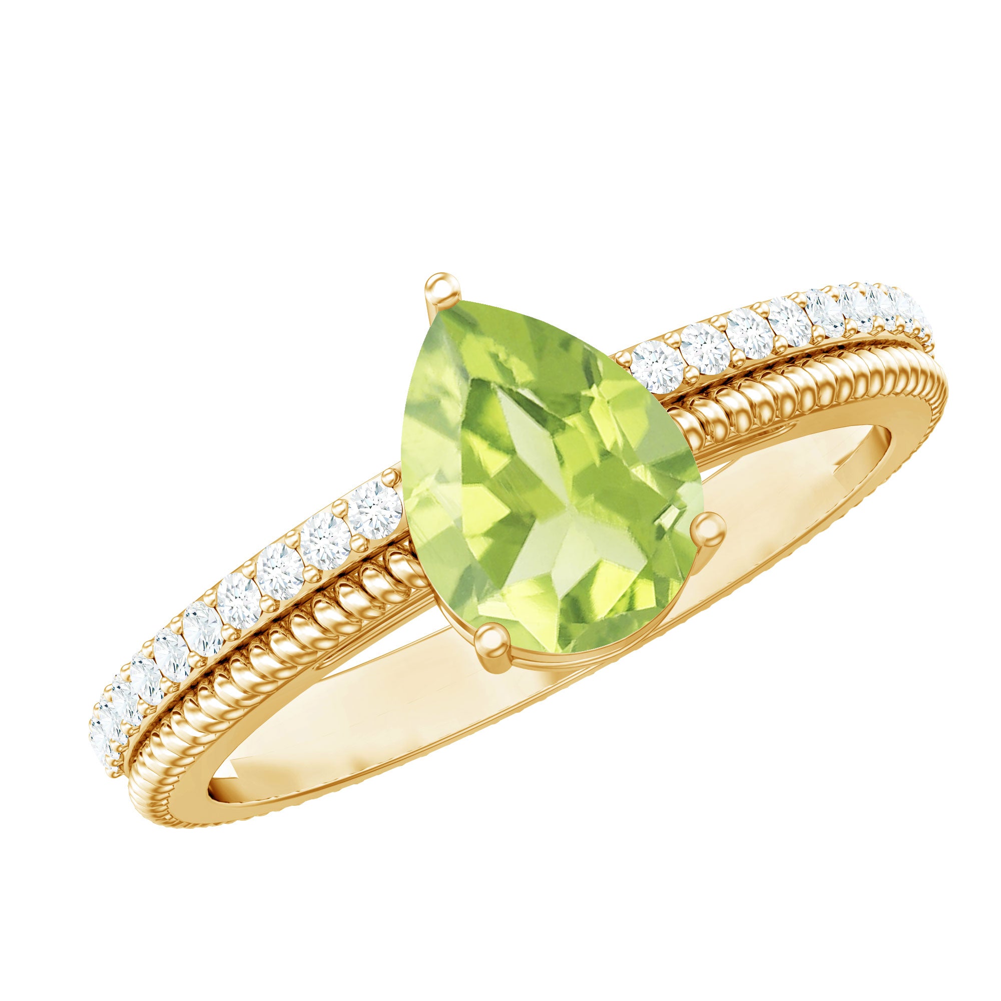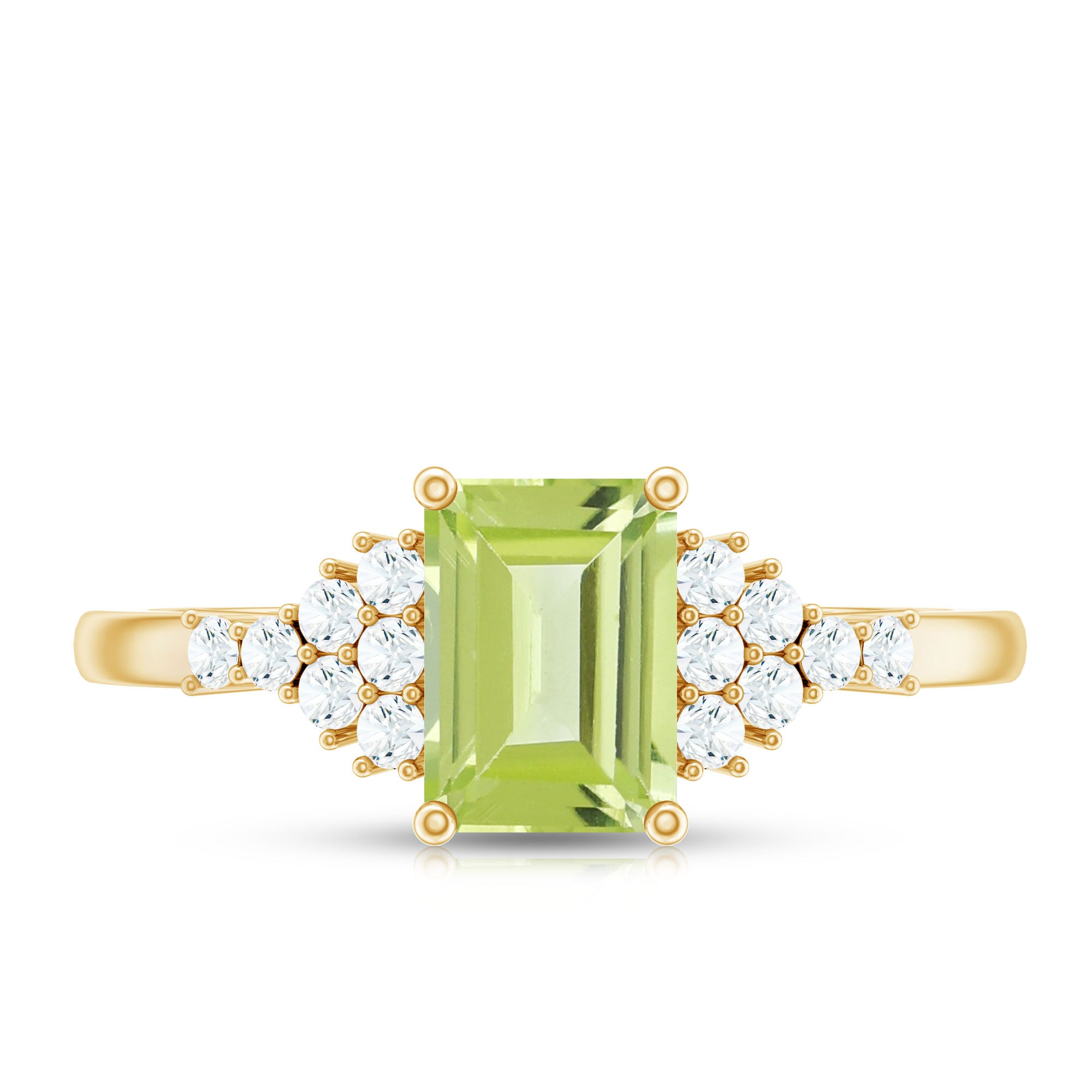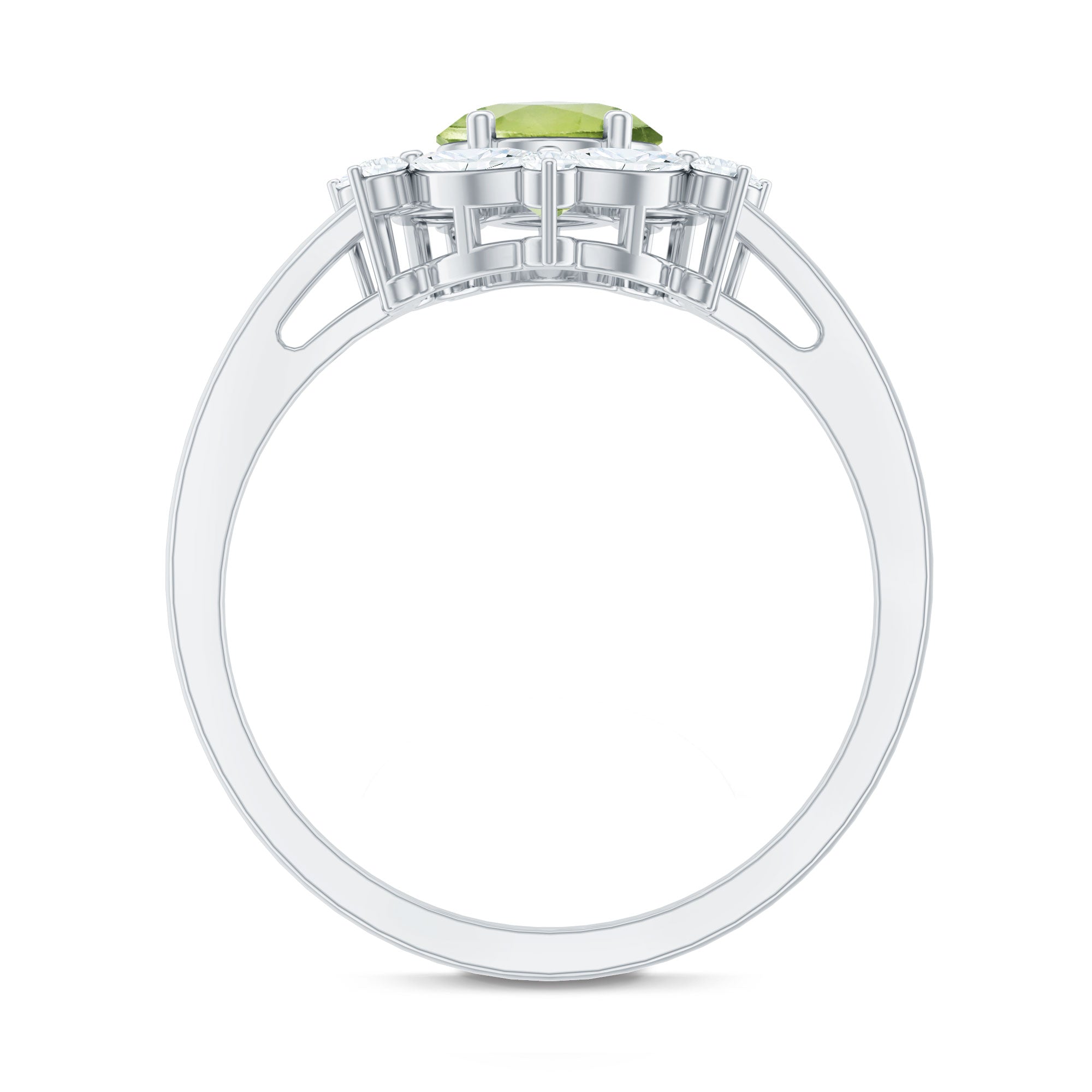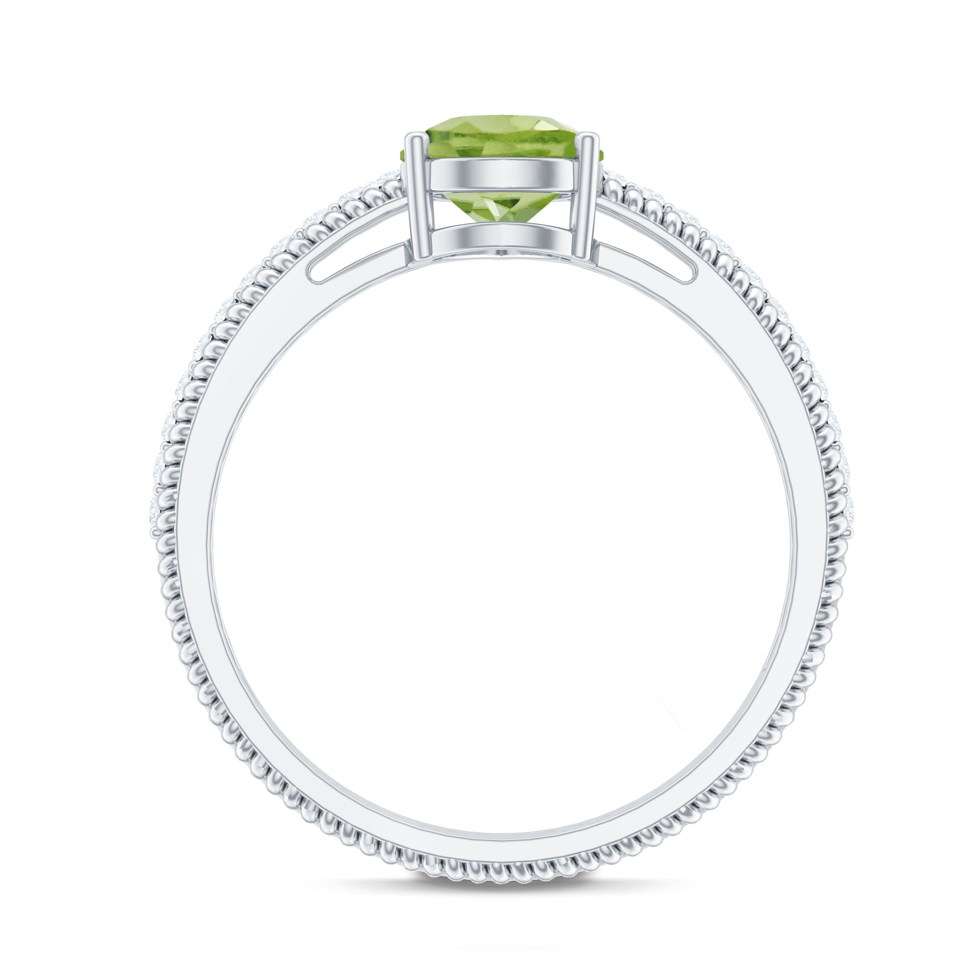 Held in high regard as one of the most classic Peridot Engagement Rings out there, it is characterized by a solo centerpiece of Peridot that steals the limelight. It can also be labeled as the most versatile ring style since the Peridot Solitaire offers you a sea of options in terms of aesthetics, be it the classic Round Peridot Rings offering a traditional aesthetic, the ones fashioned with Pear, Marquise, and Princess exuding an unconventional touch, or Asscher and Emerald Cut Peridot Rings for that perfect vintage vibe.