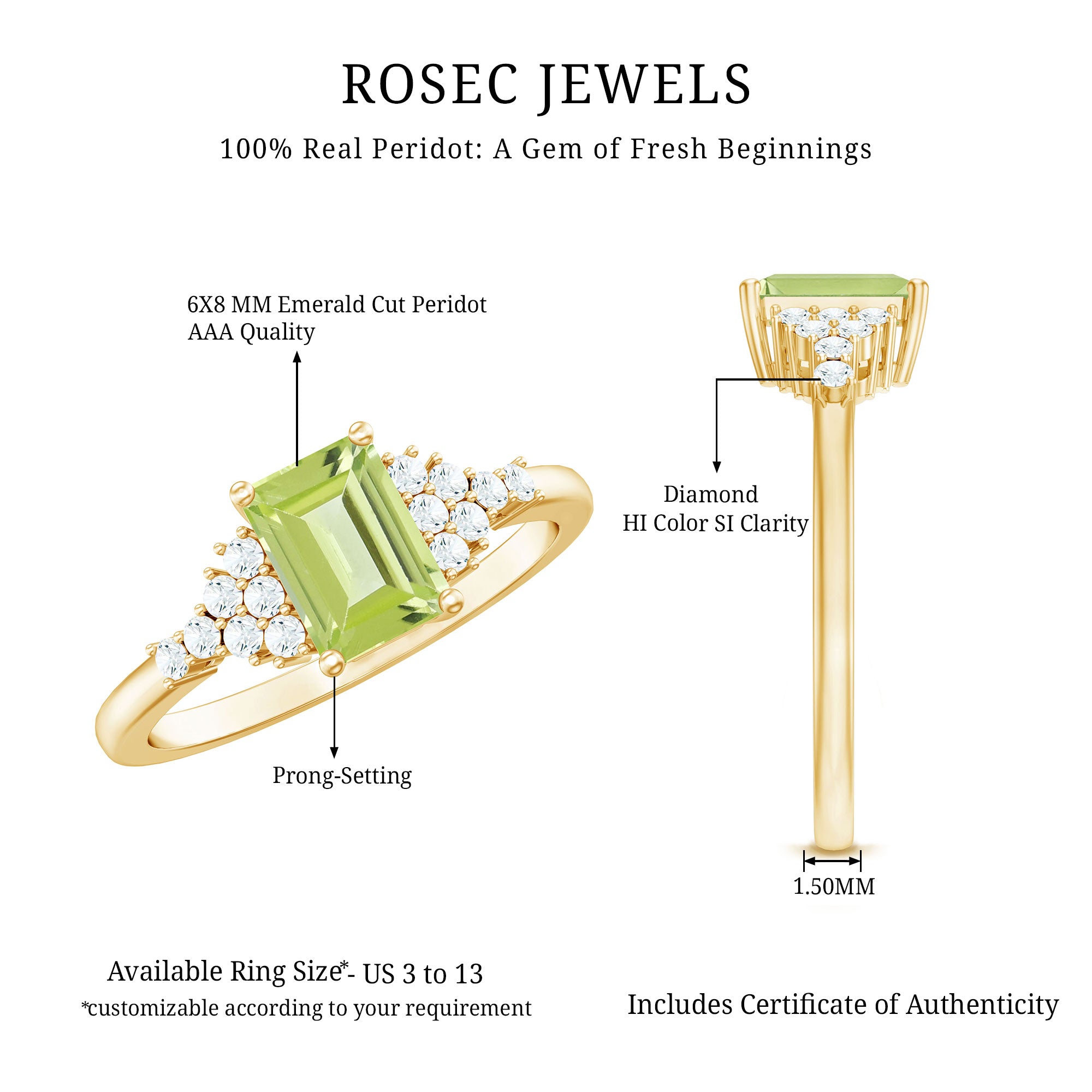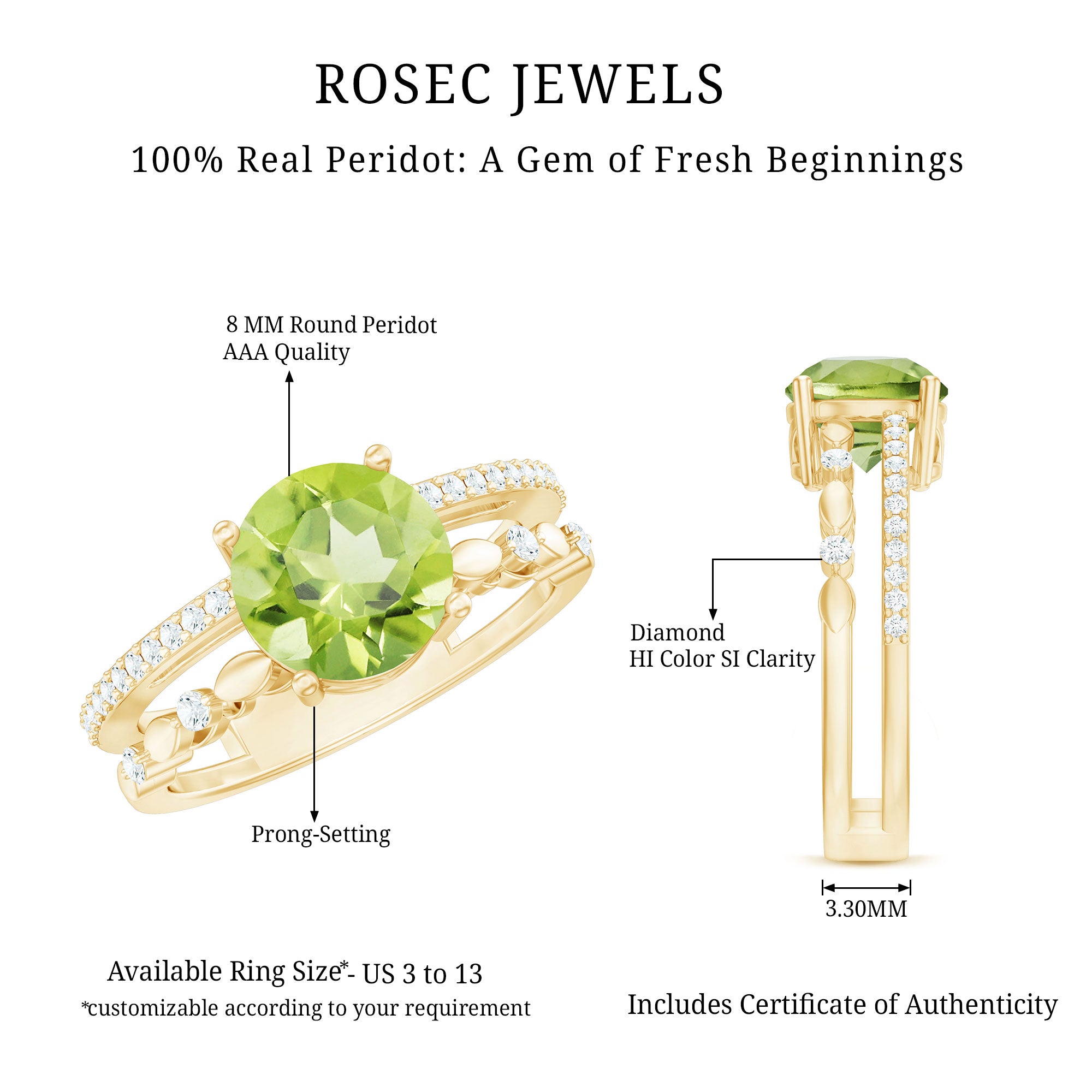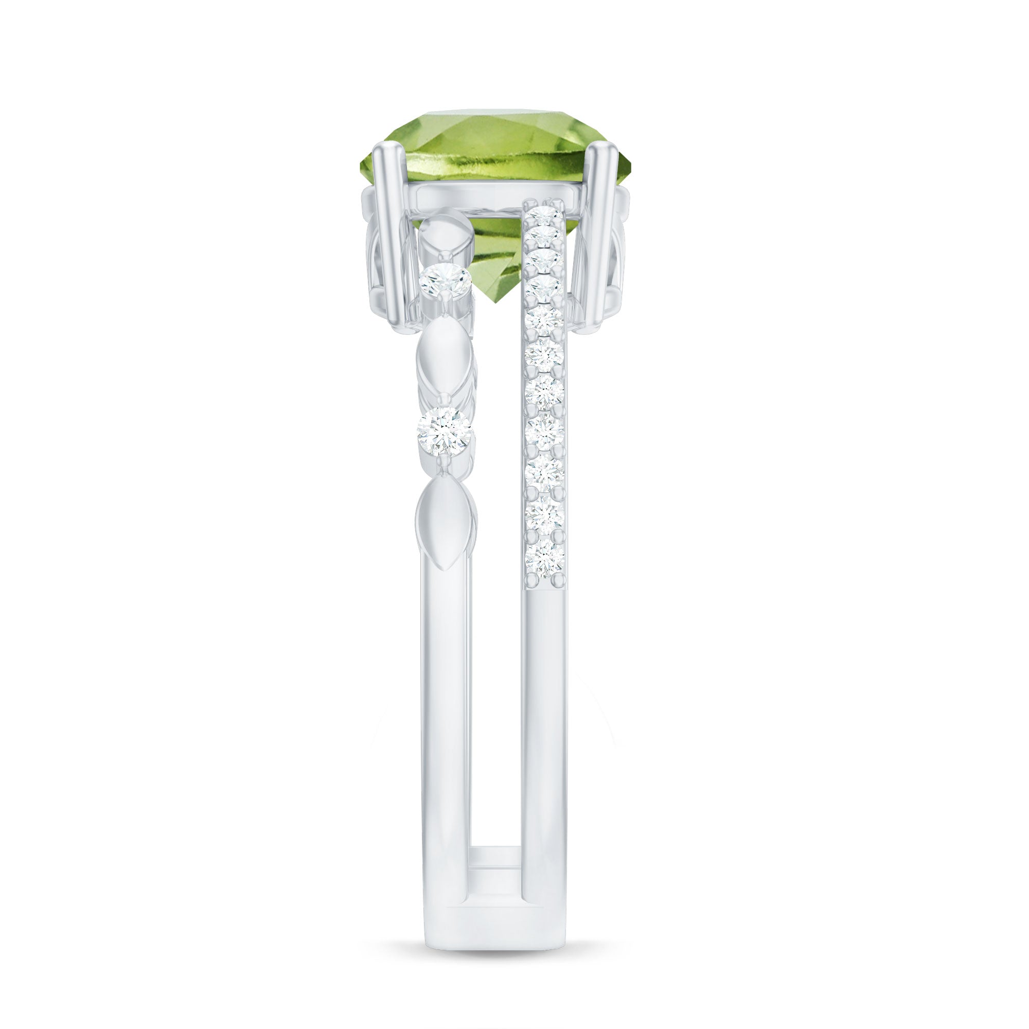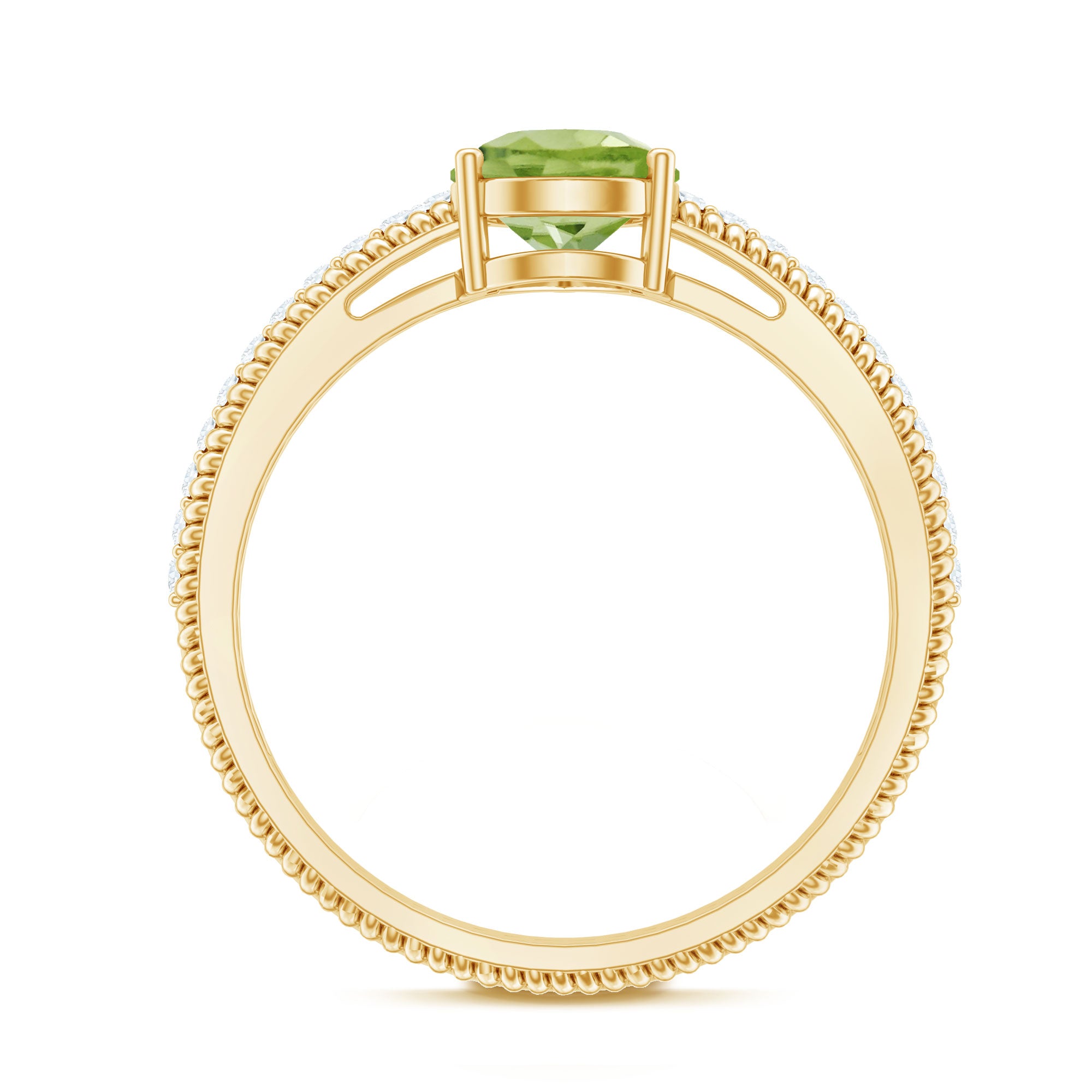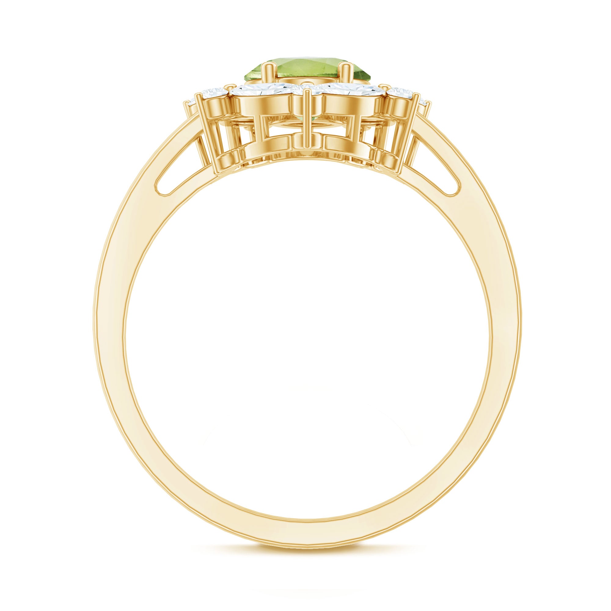 Held in high regard as one of the most classic Peridot Engagement Rings out there, it is characterized by a solo centerpiece of Peridot that steals the limelight. It can also be labeled as the most versatile ring style since the Peridot Solitaire offers you a sea of options in terms of aesthetics, be it the classic Round Peridot Rings offering a traditional aesthetic, the ones fashioned with Pear, Marquise, and Princess exuding an unconventional touch, or Asscher and Emerald Cut Peridot Rings for that perfect vintage vibe.
