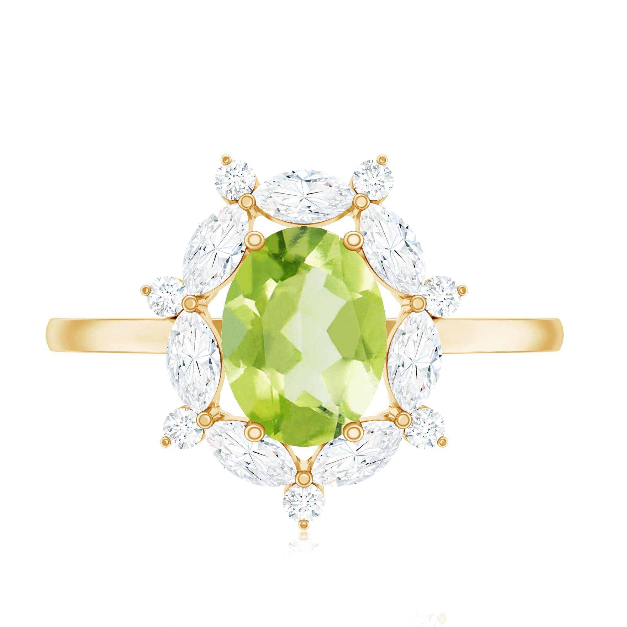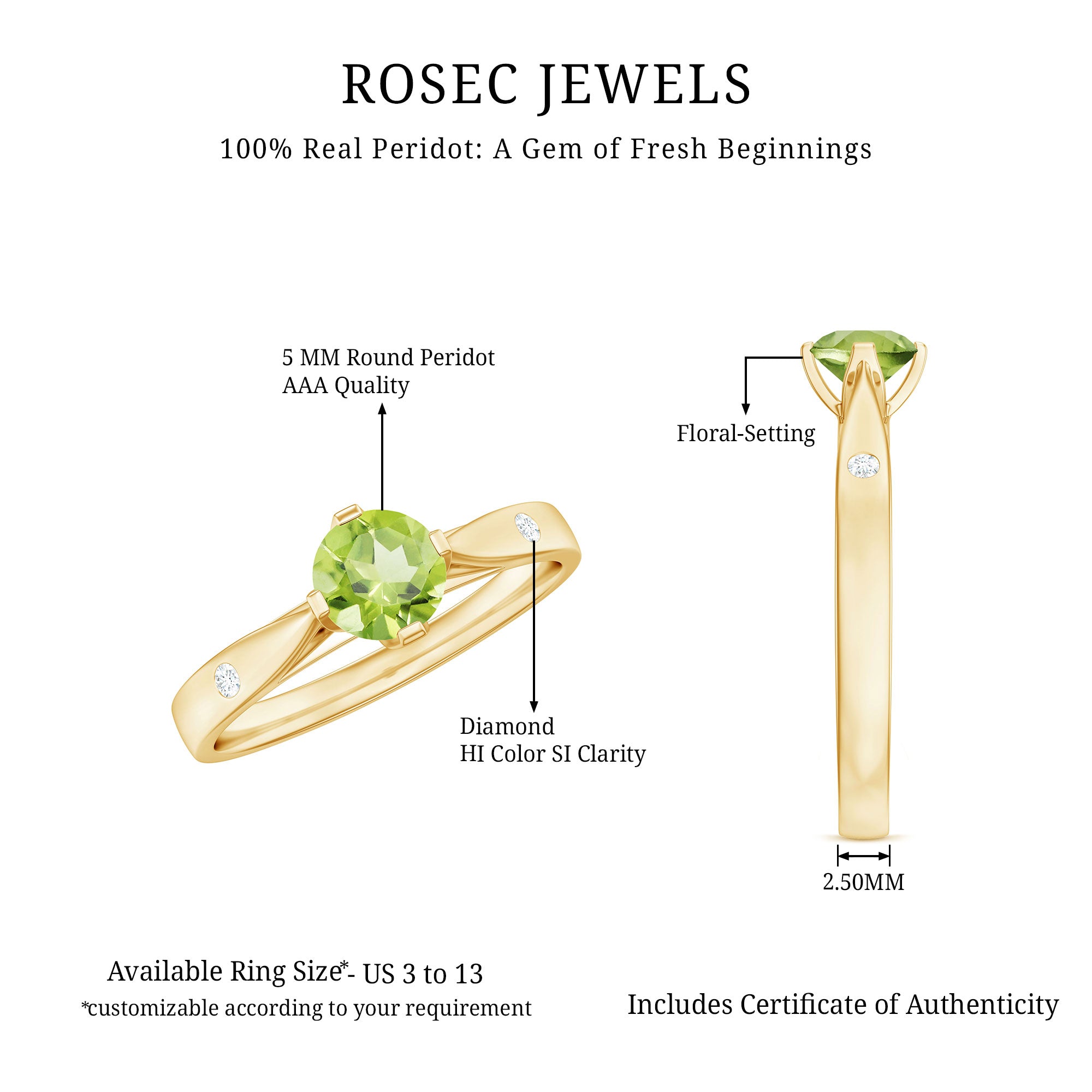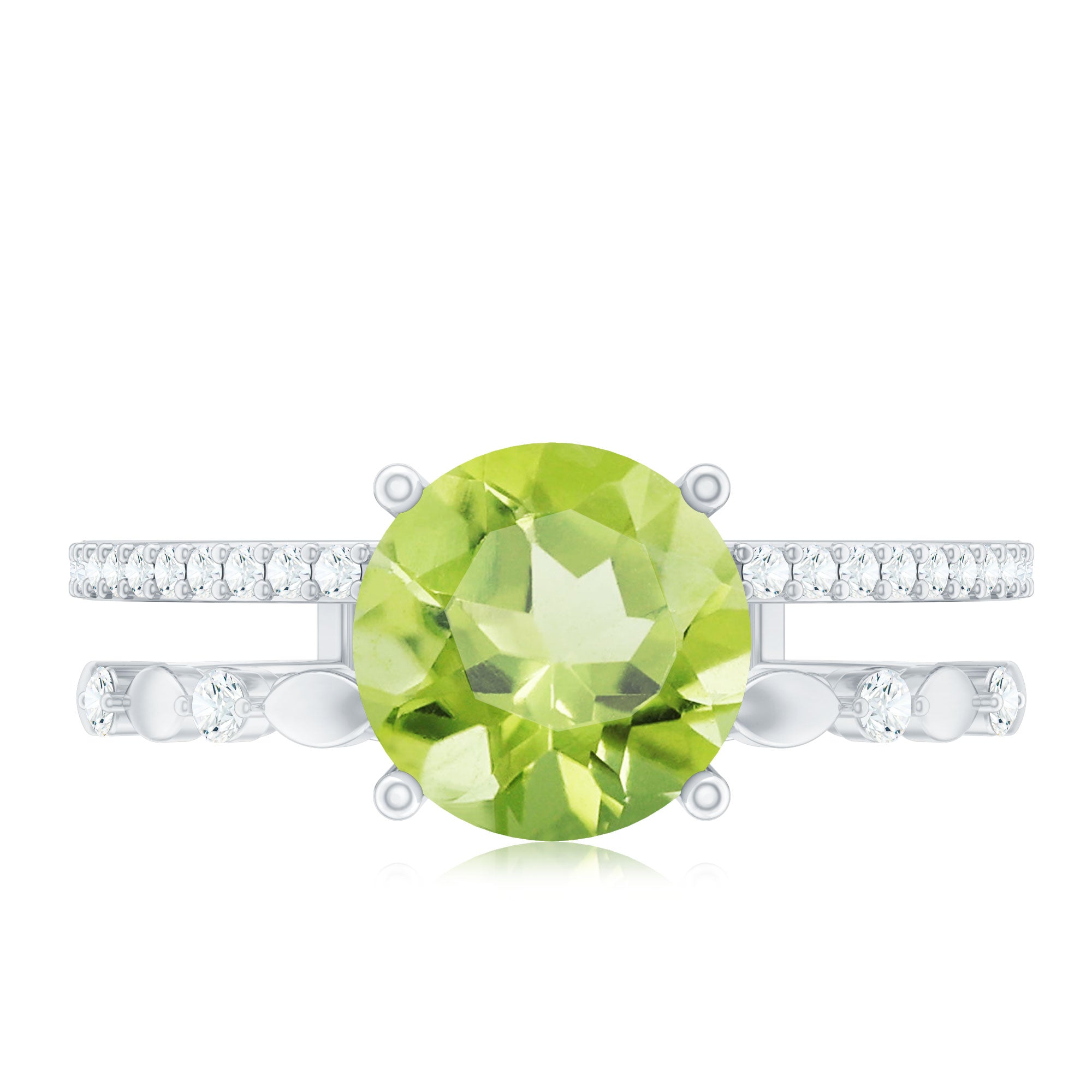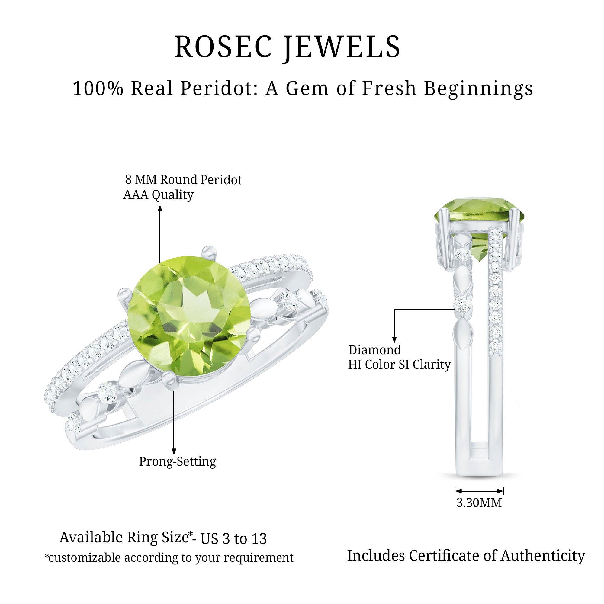 Held in high regard as one of the most classic Peridot Engagement Rings out there, it is characterized by a solo centerpiece of Peridot that steals the limelight. It can also be labeled as the most versatile ring style since the Peridot Solitaire offers you a sea of options in terms of aesthetics, be it the classic Round Peridot Rings offering a traditional aesthetic, the ones fashioned with Pear, Marquise, and Princess exuding an unconventional touch, or Asscher and Emerald Cut Peridot Rings for that perfect vintage vibe.