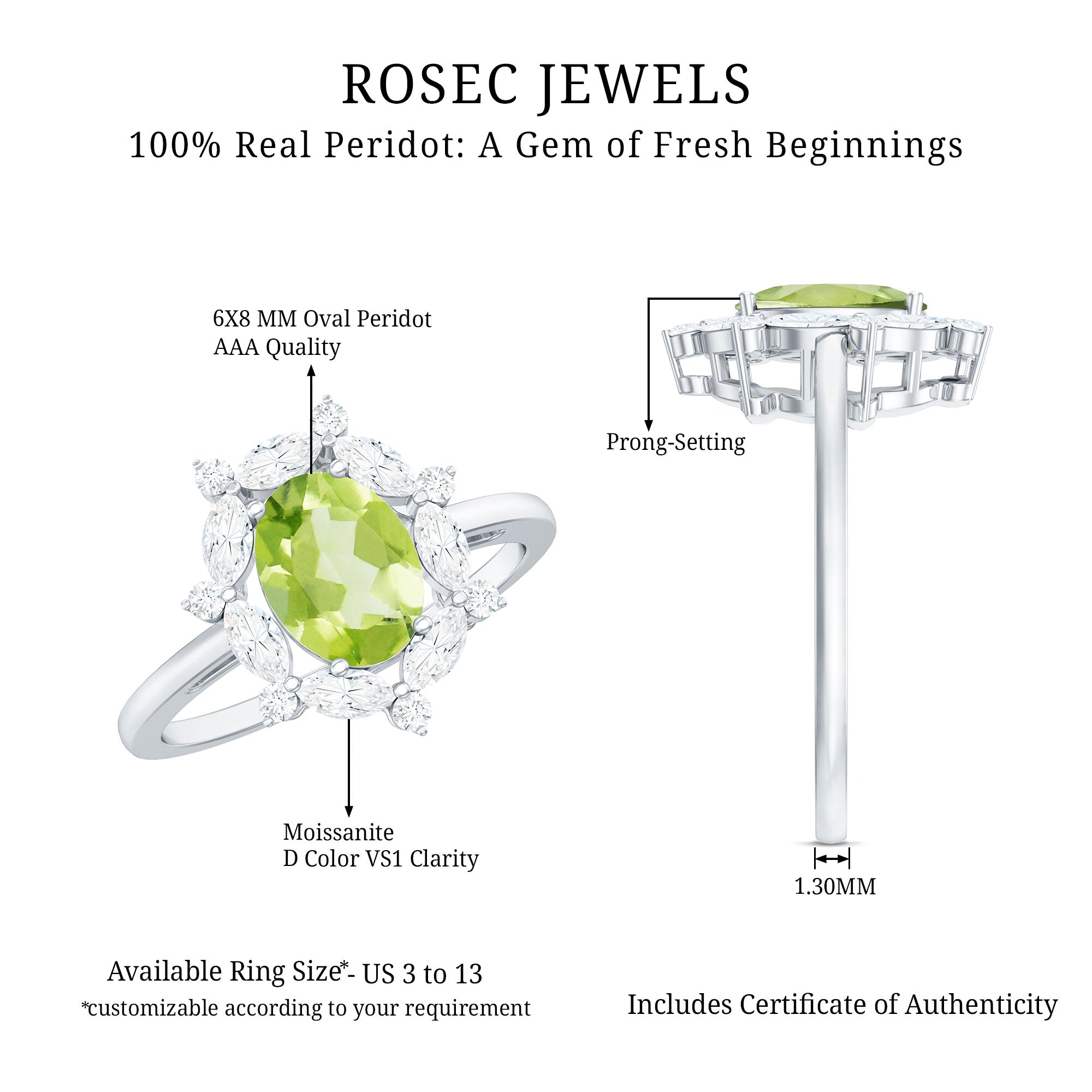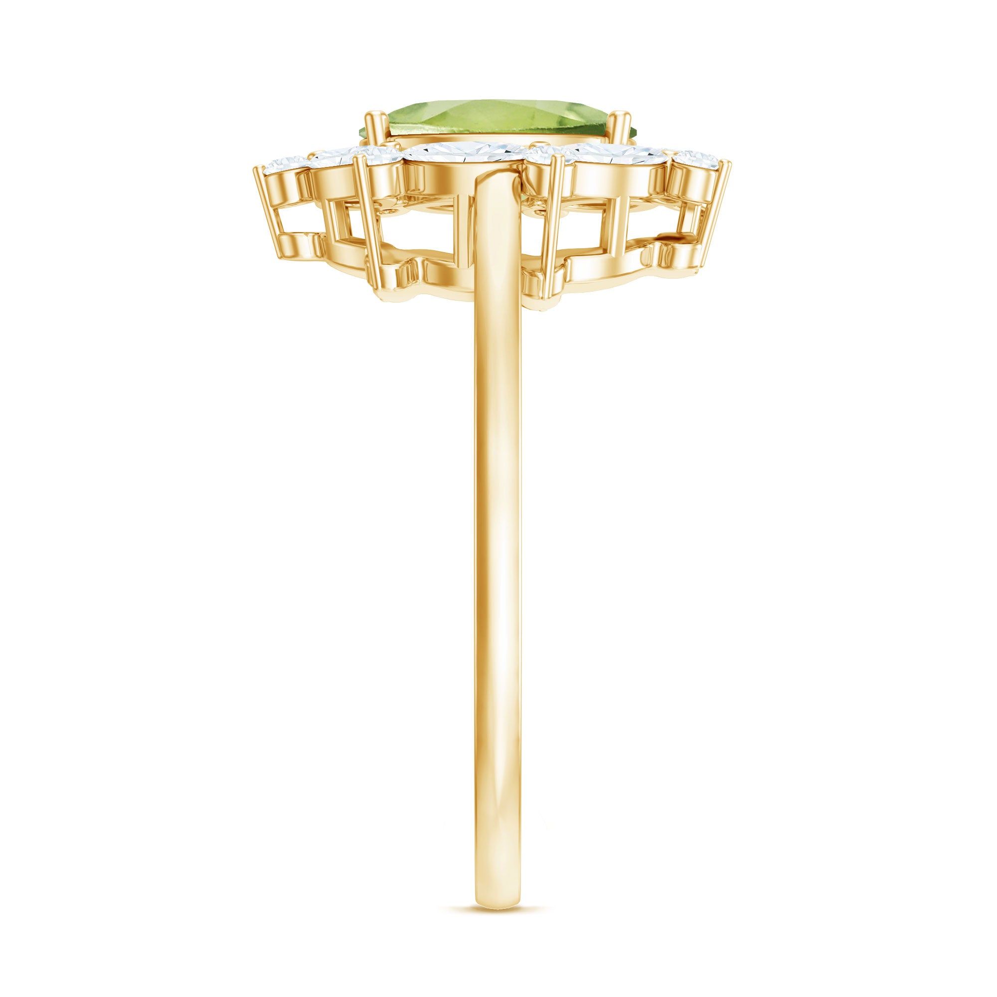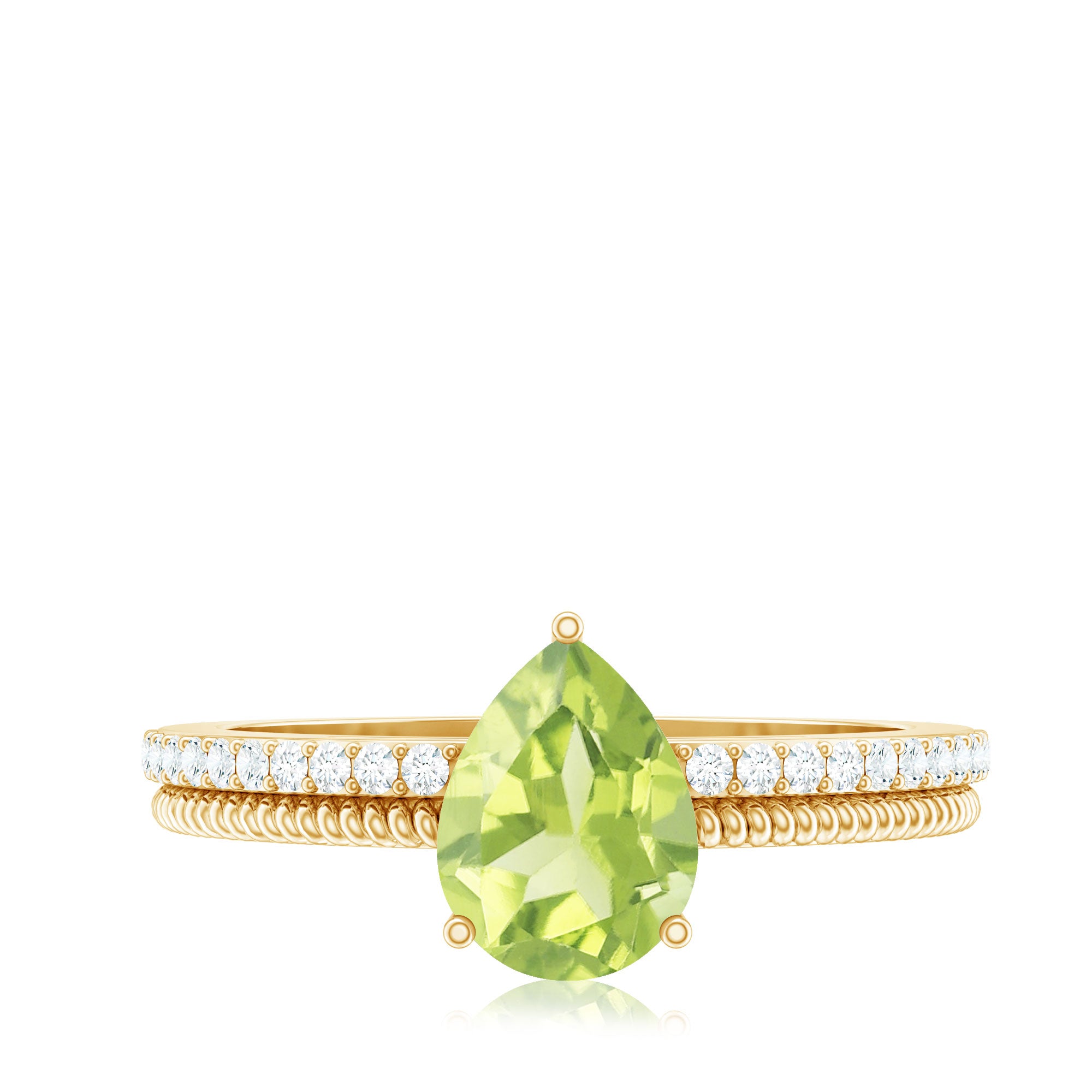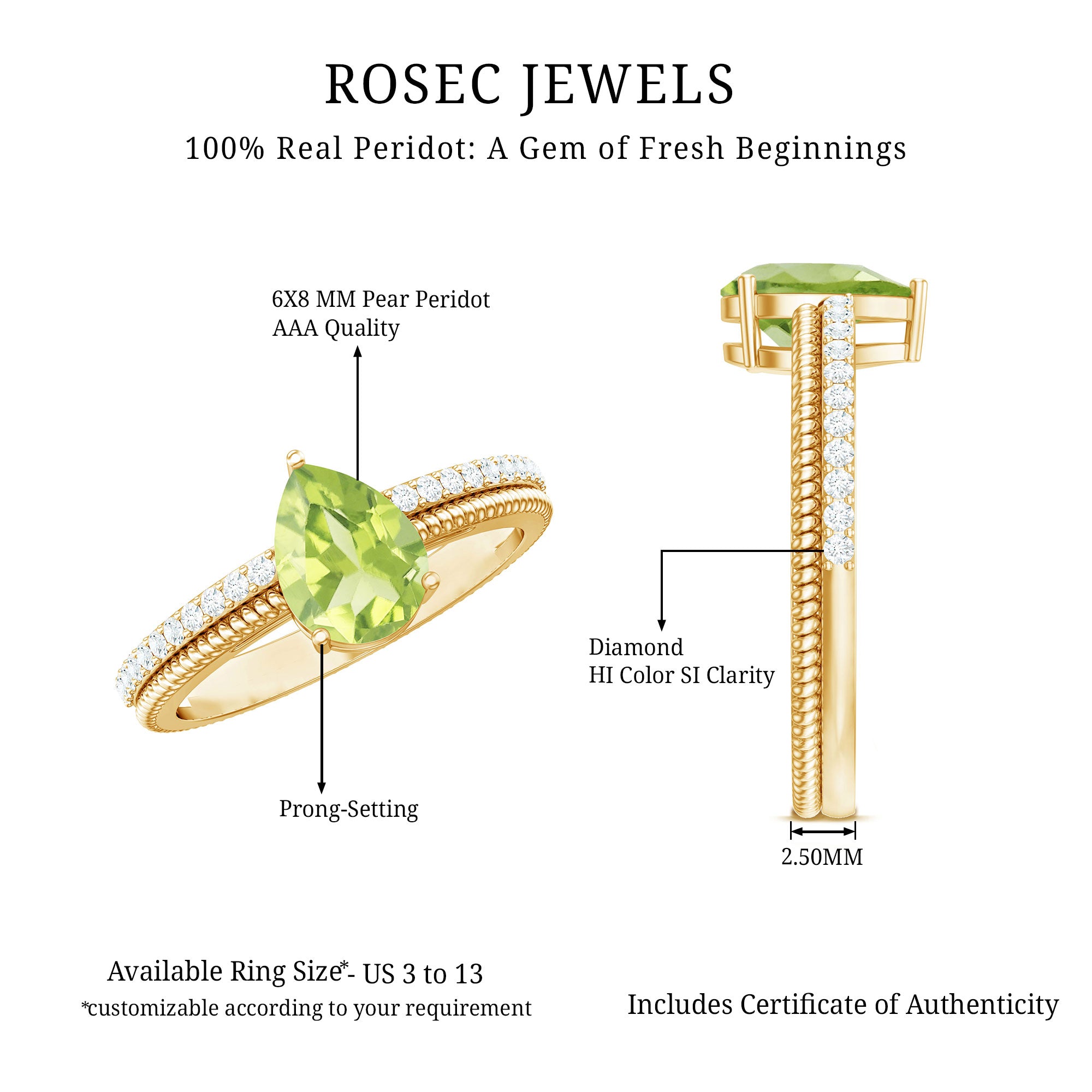 Held in high regard as one of the most classic Peridot Engagement Rings out there, it is characterized by a solo centerpiece of Peridot that steals the limelight. It can also be labeled as the most versatile ring style since the Peridot Solitaire offers you a sea of options in terms of aesthetics, be it the classic Round Peridot Rings offering a traditional aesthetic, the ones fashioned with Pear, Marquise, and Princess exuding an unconventional touch, or Asscher and Emerald Cut Peridot Rings for that perfect vintage vibe.