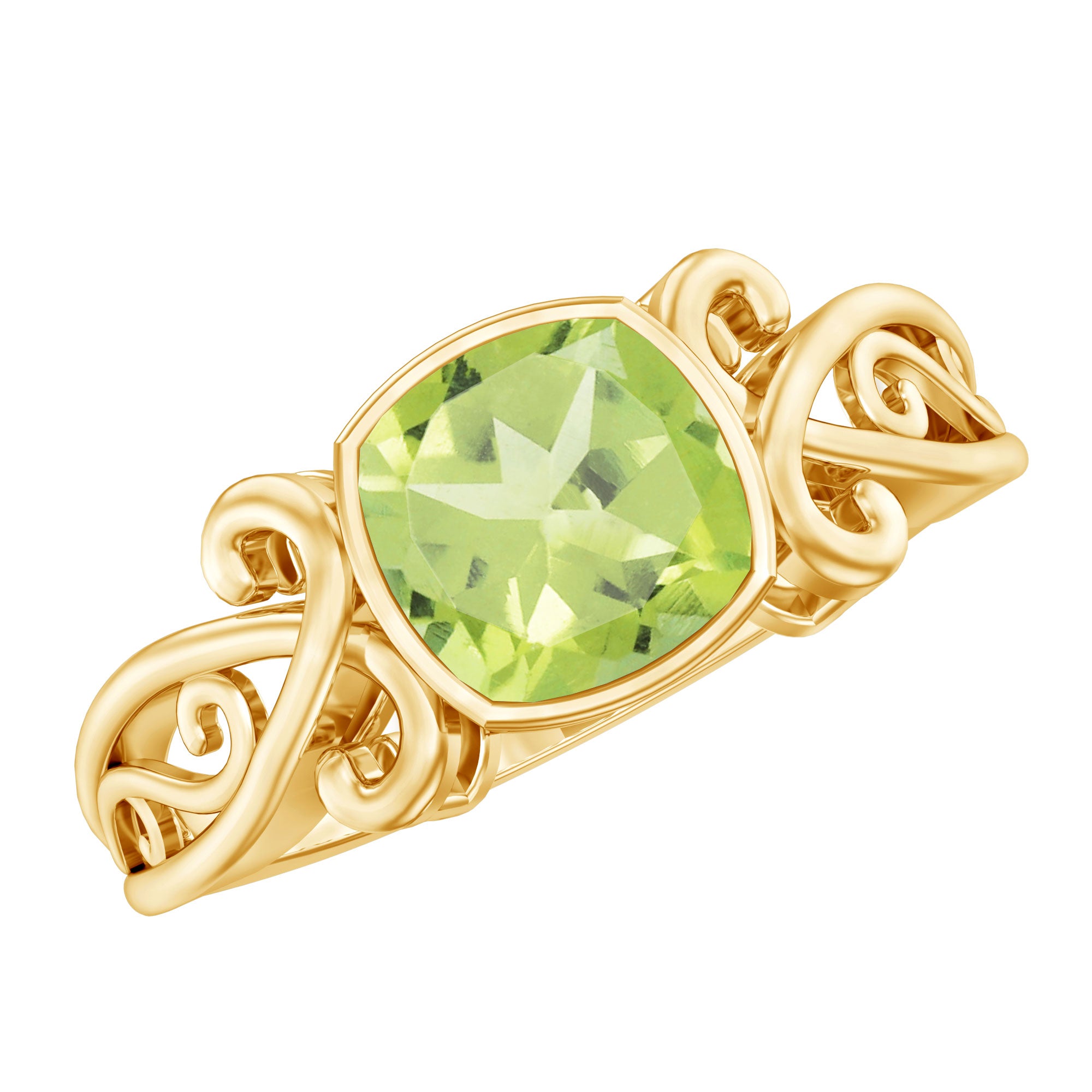 A Vintage-inspired Peridot Ring draws inspiration from the most significant designs from the Victorian, Edwardian, and Art Deco eras. It highlights the center stone of Peridot, which is beautified by antique engravings, milgrain and filigree details, and abstract art deco patterns. This Antique Peridot Ring oozes an old-world feel, which also makes it a highly desirable engagement ring for those who like their token of love to carry a story.