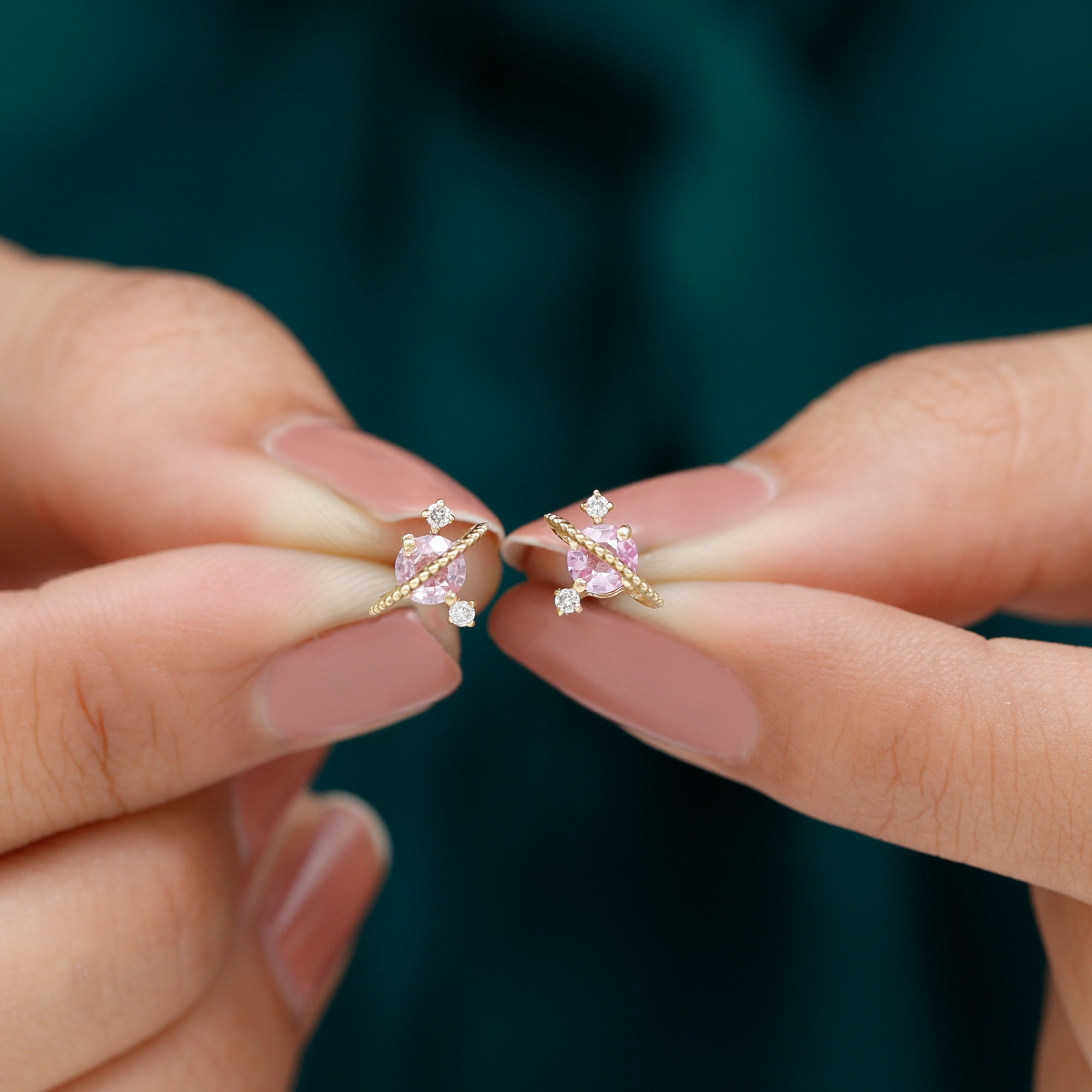 Perfect to slip on every day, Pink Sapphire Stud Earrings snug tight on the earlobe (without hanging or dangling down) and are mounted with an elegant centerpiece of Pink Sapphire. Whether you’re a fan of their minimalist appeal or the timeless style statement, they are hands down the most popular choice of accessory out there! What’s more, from classic round Sapphire Studs to the ones sparkled up with a Halo for an added visual appeal or even the romantic Pink Sapphire Heart Earrings if you’re scouting something for your beloved, the options before you are endless!