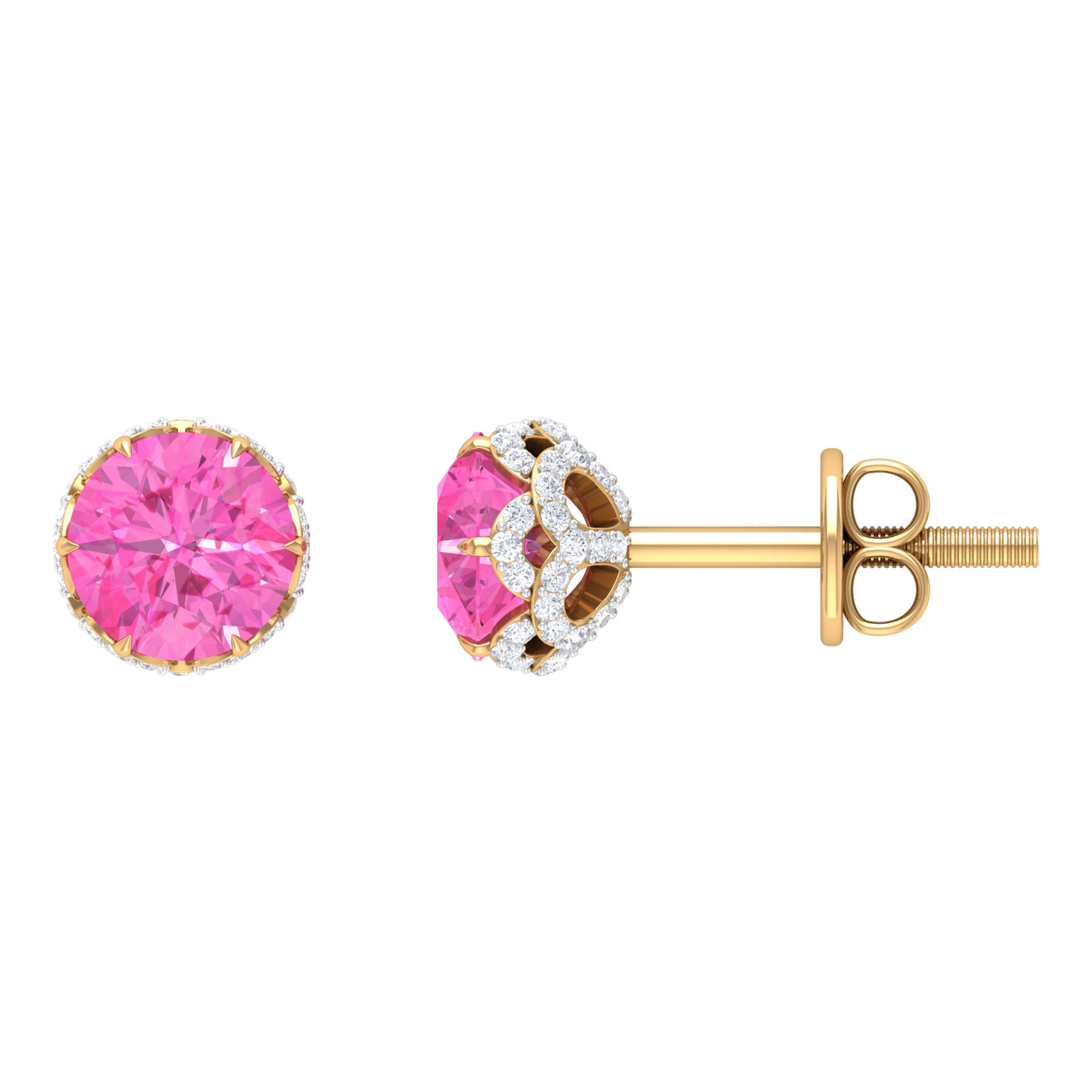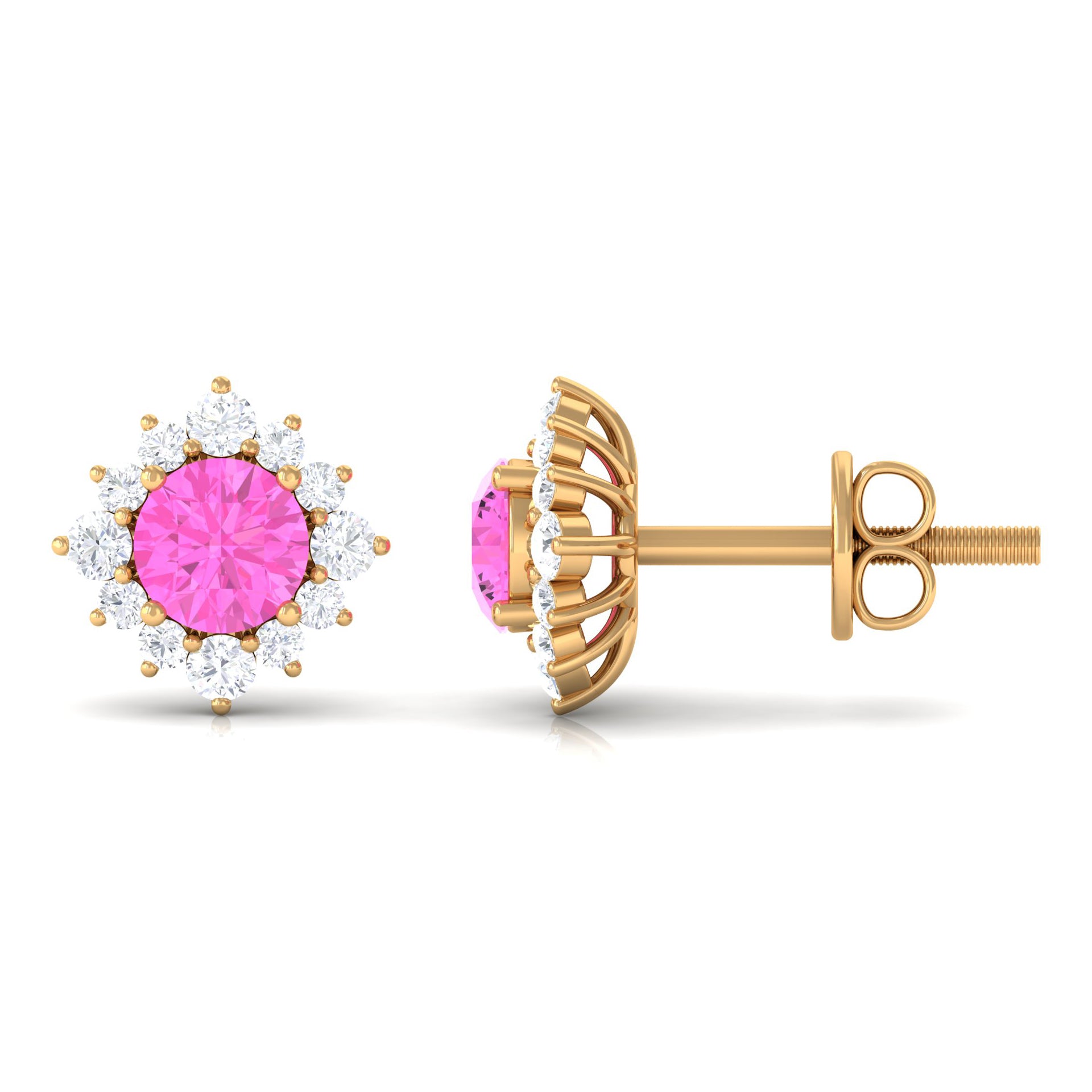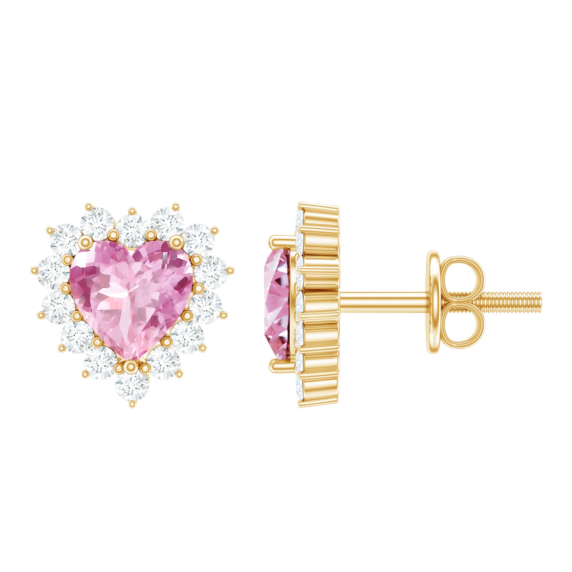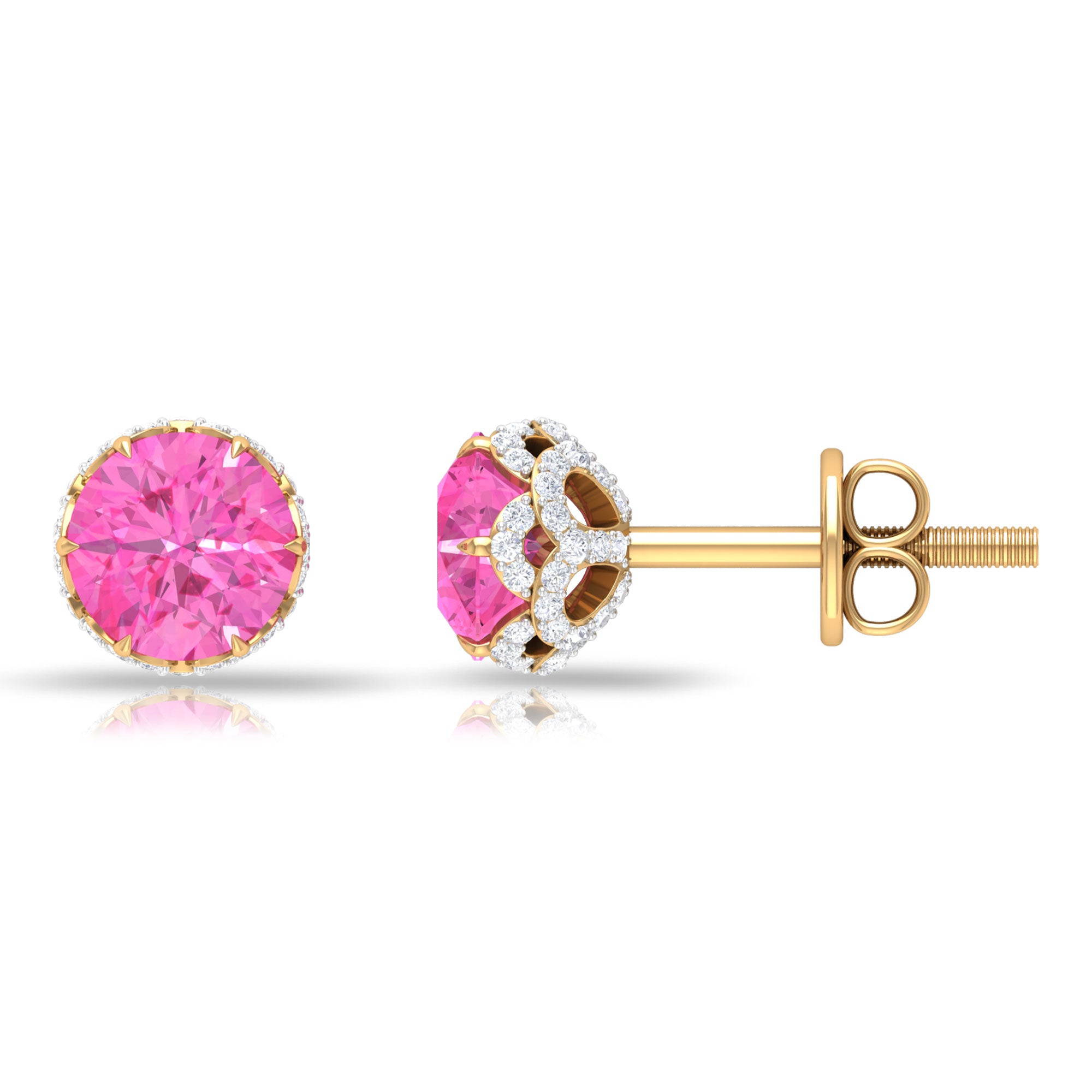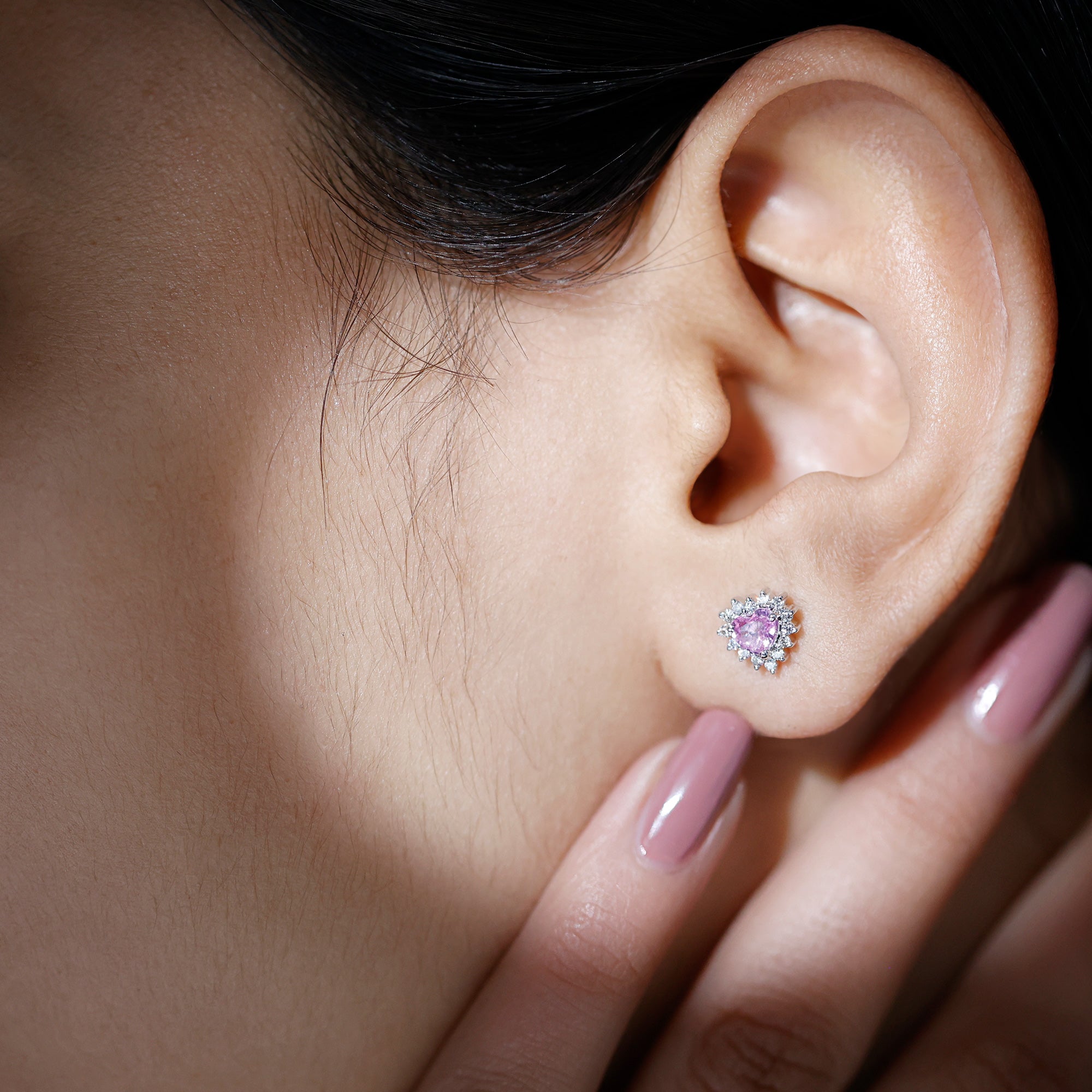 Perfect to slip on every day, Pink Sapphire Stud Earrings snug tight on the earlobe (without hanging or dangling down) and are mounted with an elegant centerpiece of Pink Sapphire. Whether you’re a fan of their minimalist appeal or the timeless style statement, they are hands down the most popular choice of accessory out there! What’s more, from classic round Sapphire Studs to the ones sparkled up with a Halo for an added visual appeal or even the romantic Pink Sapphire Heart Earrings if you’re scouting something for your beloved, the options before you are endless!