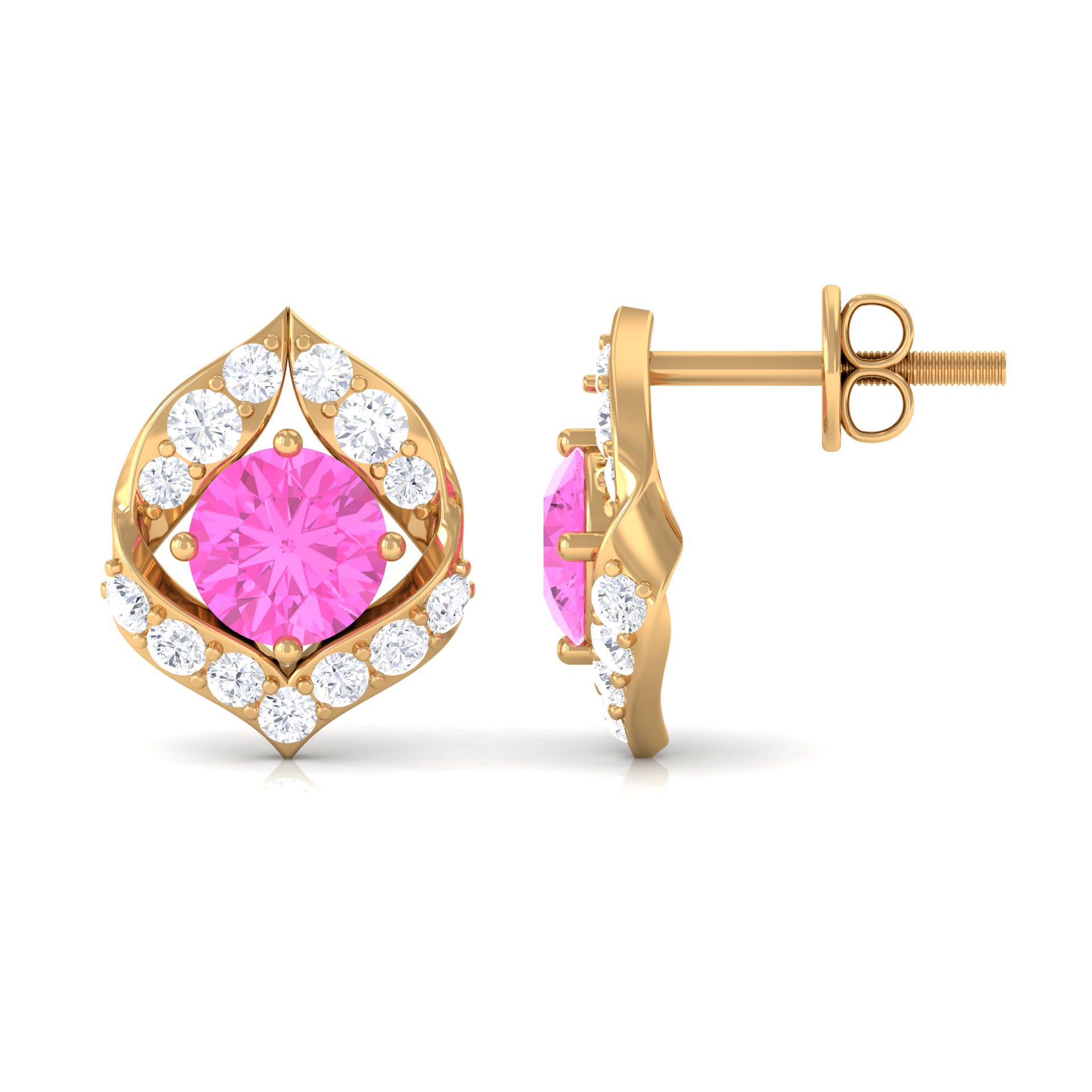 Now that we’ve made you fall in love with this one of a kind gemstone, let’s help you navigate through the best options in our collection of Pink Sapphire Gold Earringsthat has been handcrafted to resonate with different senses of style: