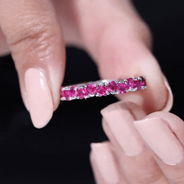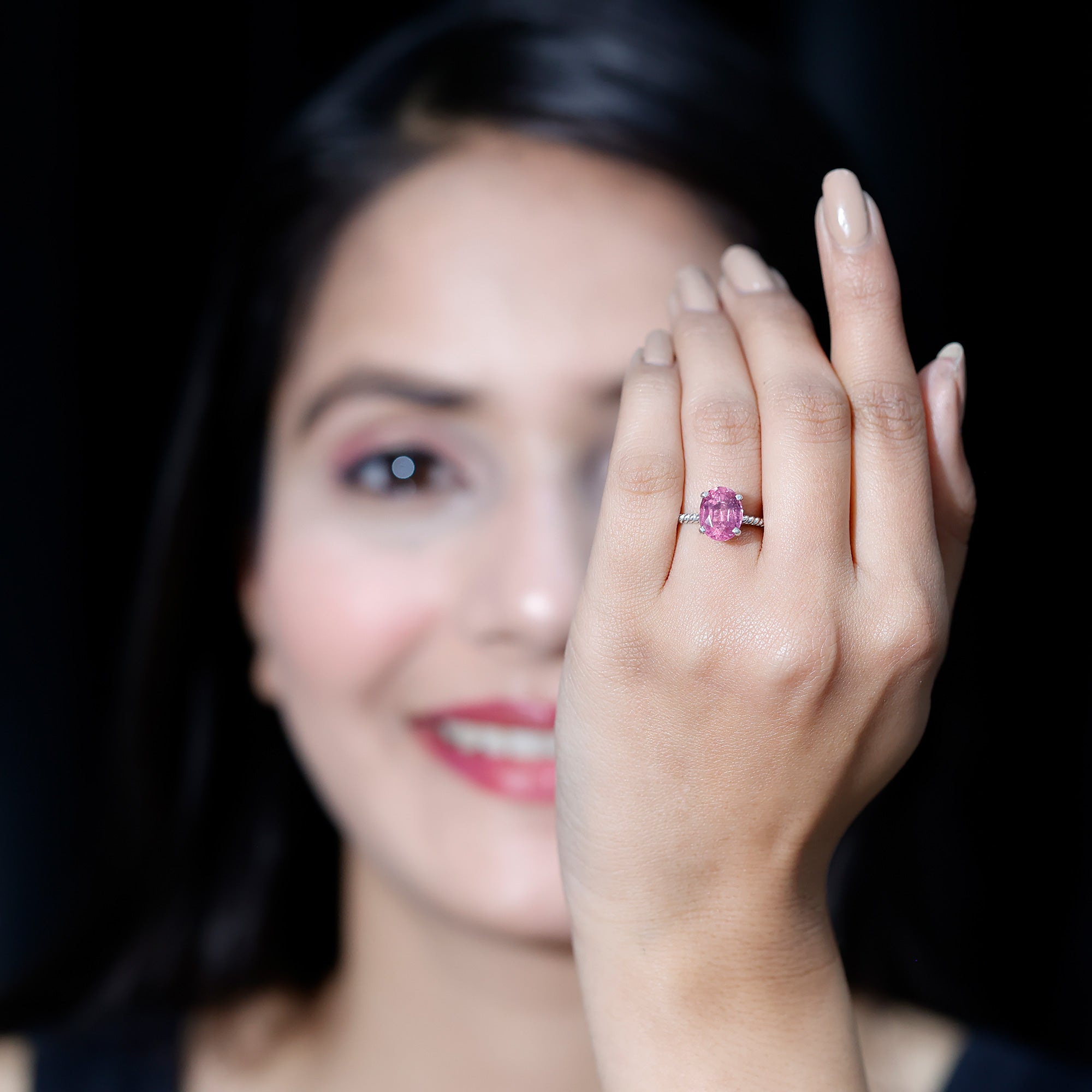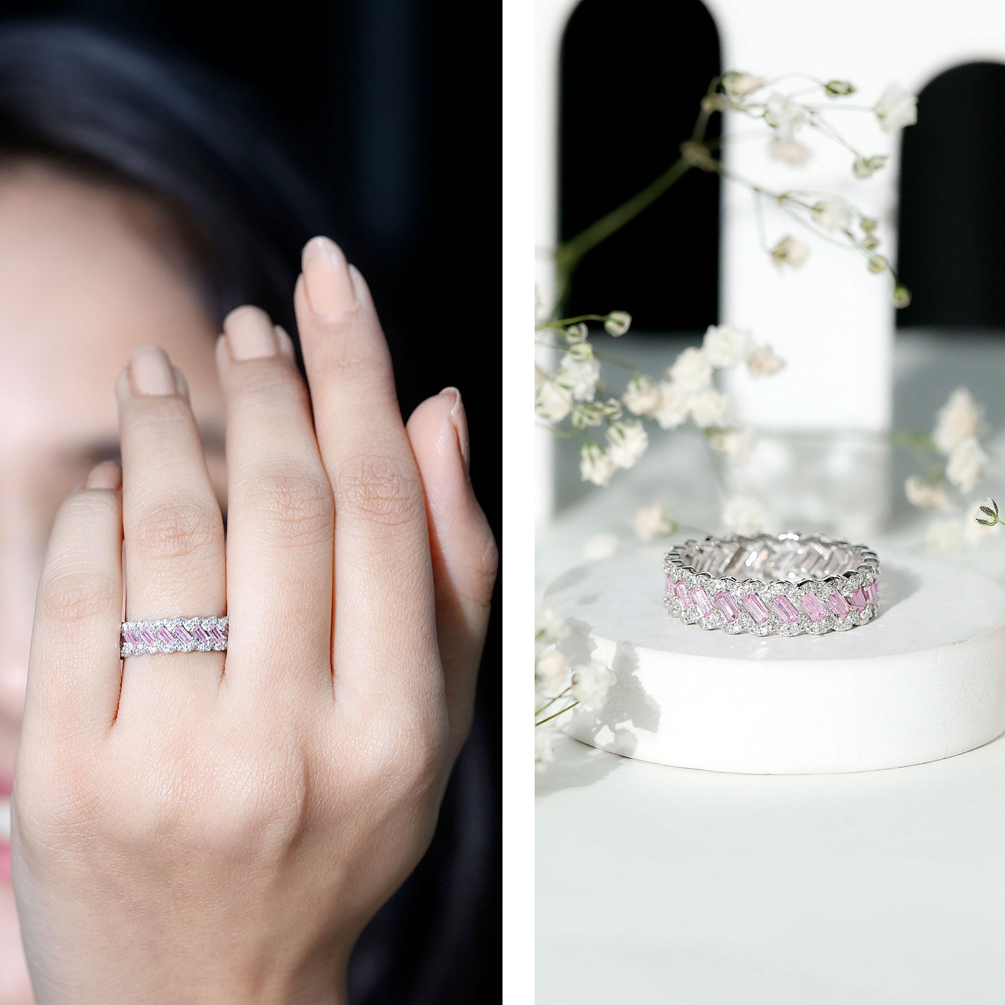 A two-stone lab-grown pink sapphire ring or a dainty design can be a great option as a promise ring. Another trending and meaningful way to express love and commitment is with minimal lab-created pink sapphire rings.