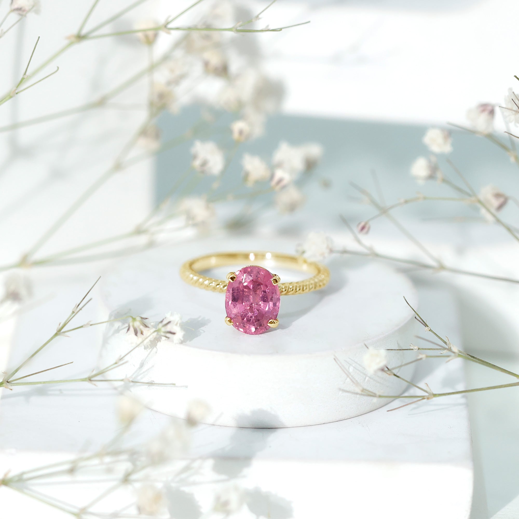Loved created sapphires, but looking for an alternative with some soft and romantic pink hue? Then, lab pink tourmaline rings can be your choice. Pink tourmaline gems fascinate viewers with their gentle and feminine energy. These rings, symbolizing emotional healing and self-love, are the first choice of delicate and whimsical charm lovers. Lab cultured pink tourmaline rings are available in all styles and are perfect for all occasions, too.