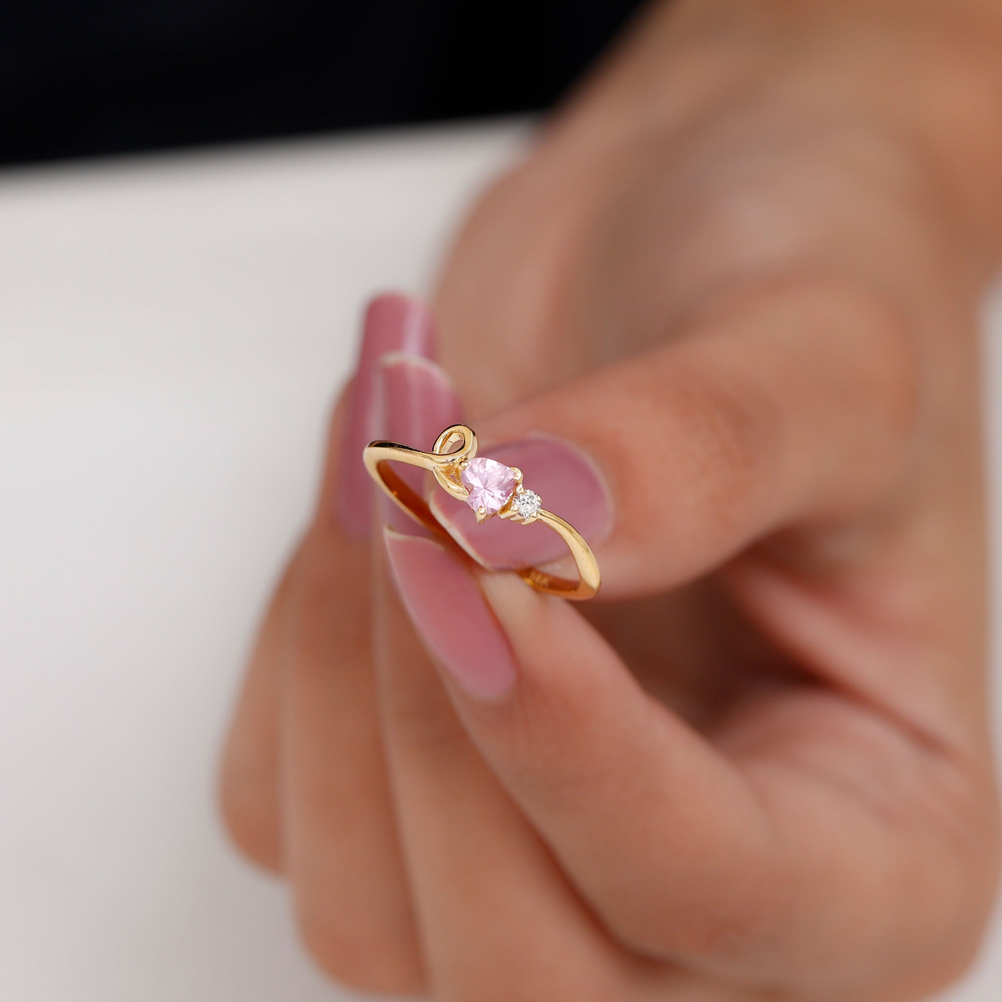 The center stone of Pink Sapphire here takes away all attention, without being too big. It’s typically not more than 4 mm in size. This Sapphire Promise Ring finds itself in the likes of most understated and elegant Promise Rings out there. Though you can find the Solitaire here in as many shapes as might know of, a Pink Sapphire Heart Ring has a place of its own. That’s because it reflects the kind of romance that a promise ring is known for.