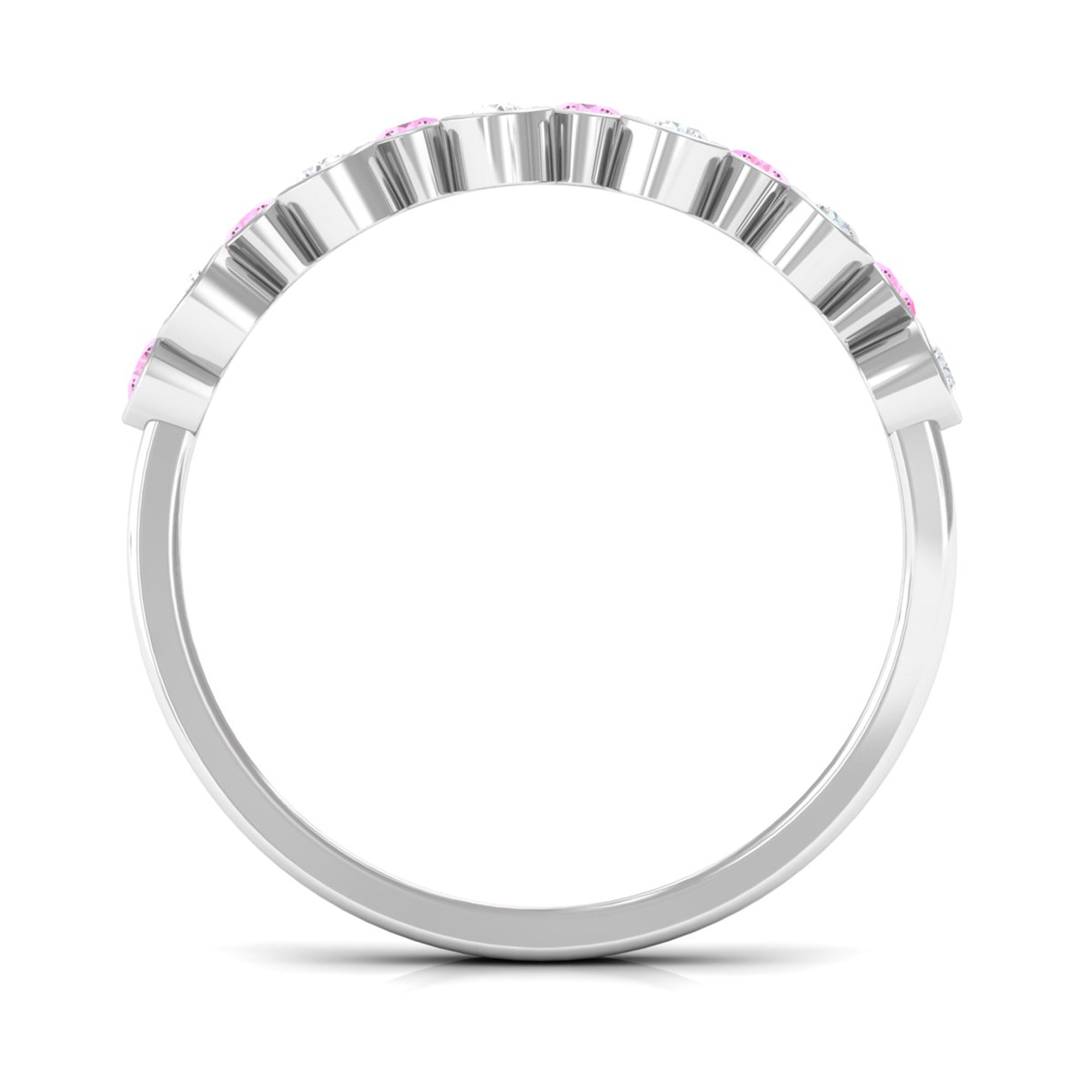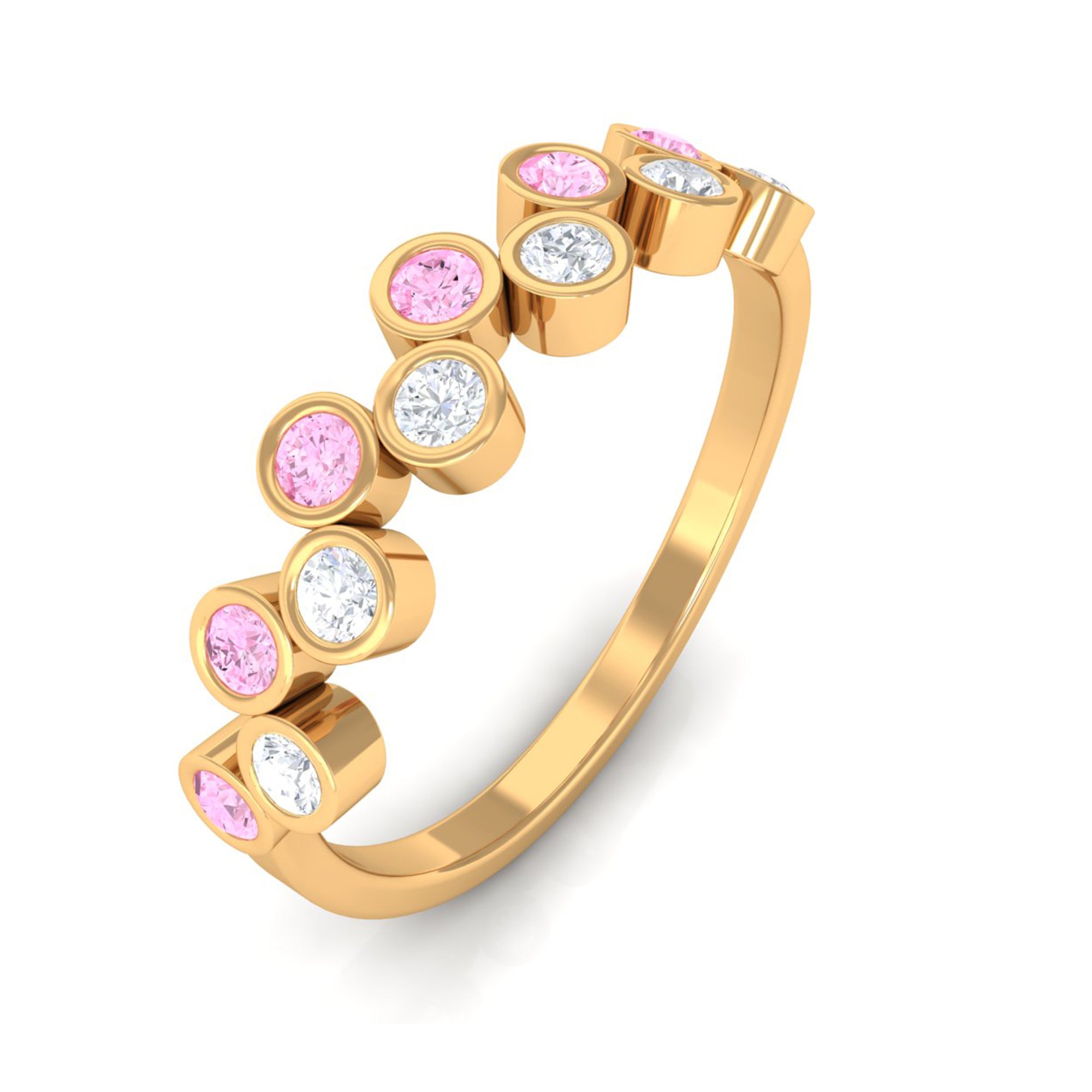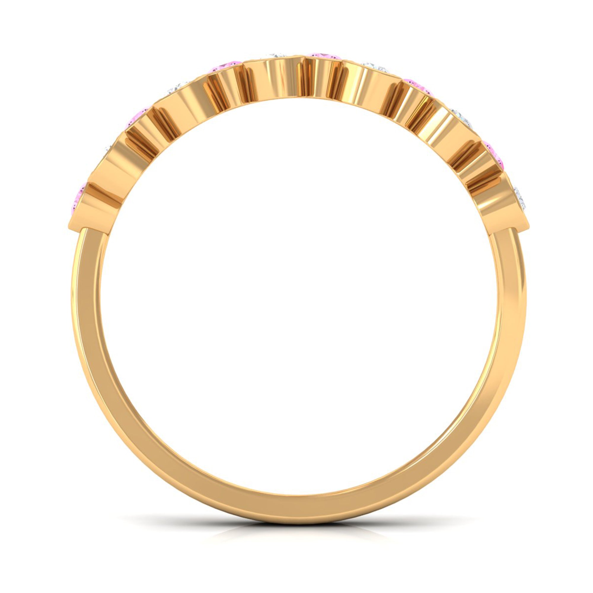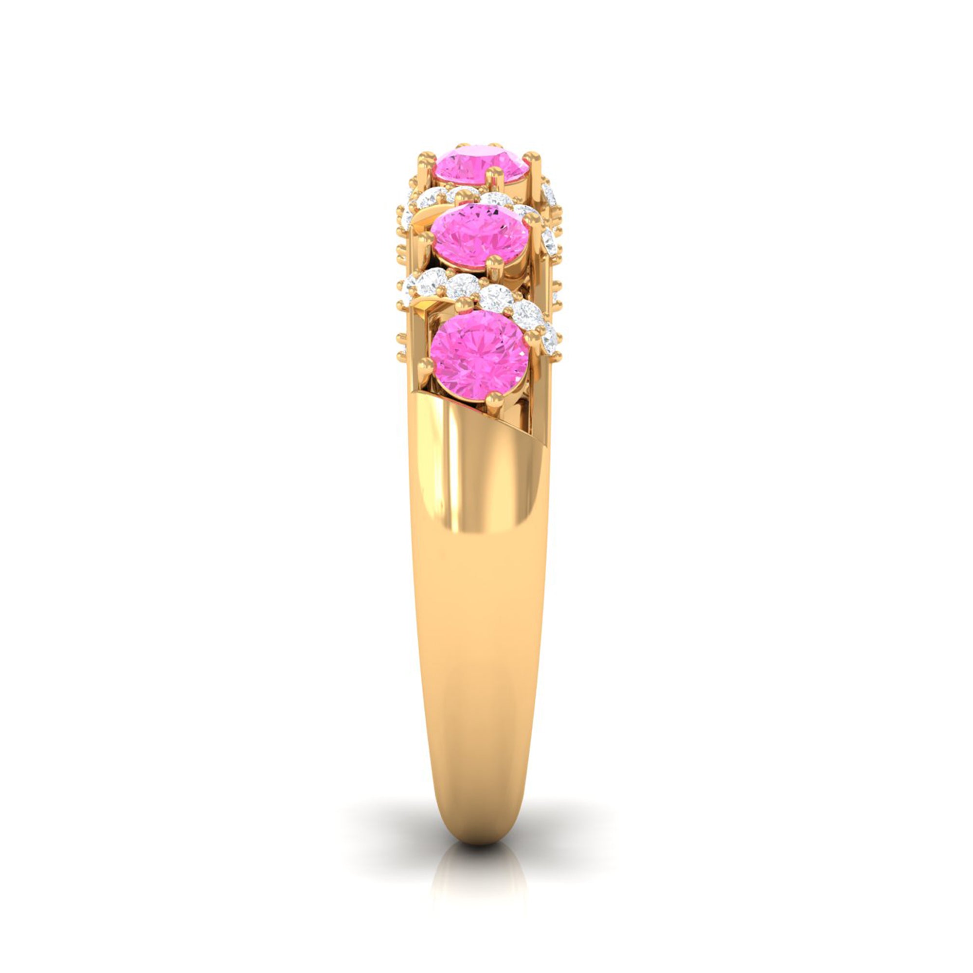 The collection of pink sapphire wedding rings from the online store of Rosec Jewels are a mesmerizing collection of wedding rings for women featuring the delicate and adorable pink hues of this fancy sapphire. Our trending ring styles and intricate designs when combined with the pink sapphire will yield utmost fascination for every eye that witness its beauty. Thus, for women in pursuit of an elegant look to adorn on their wedding day should be surprised with our pink sapphire eternity rings.