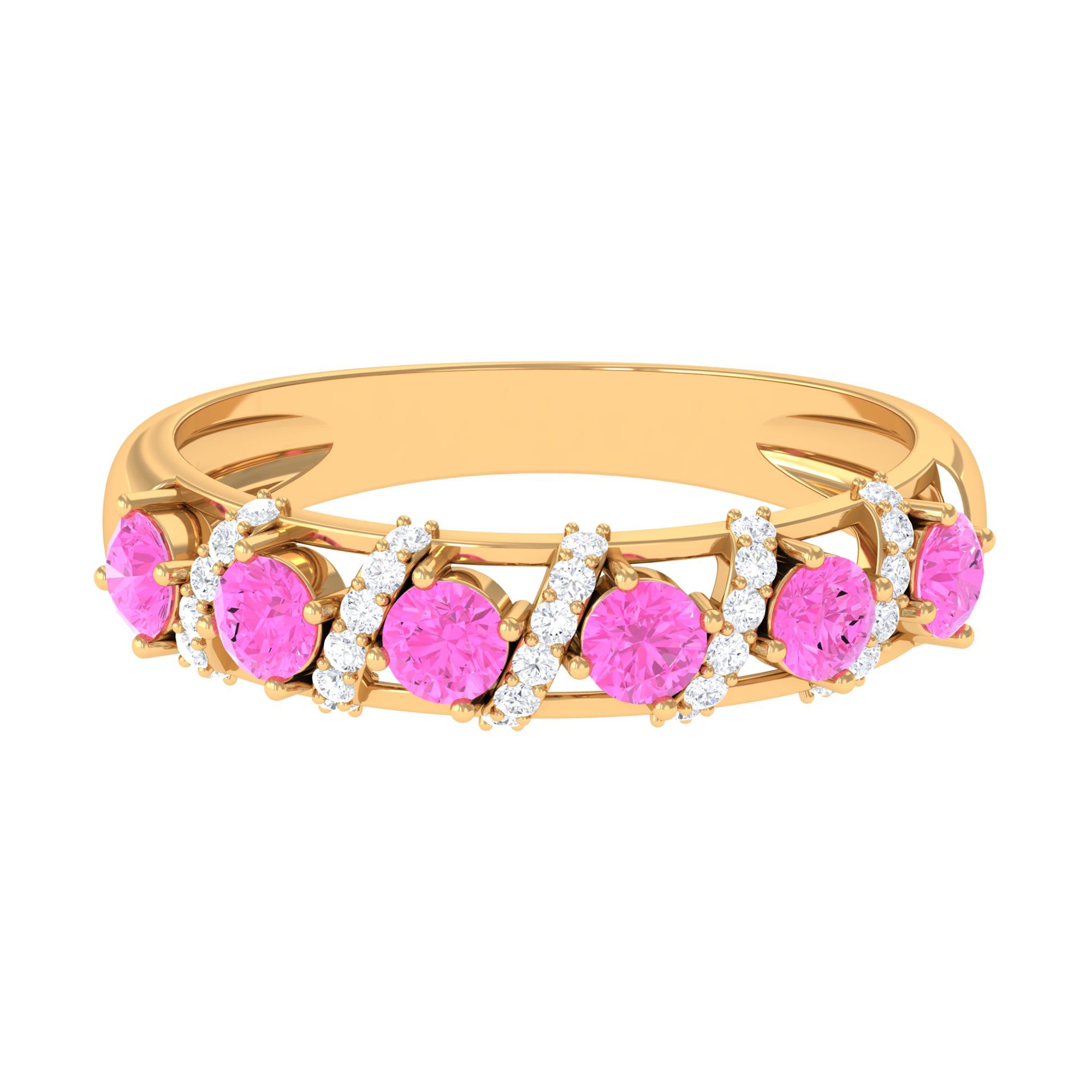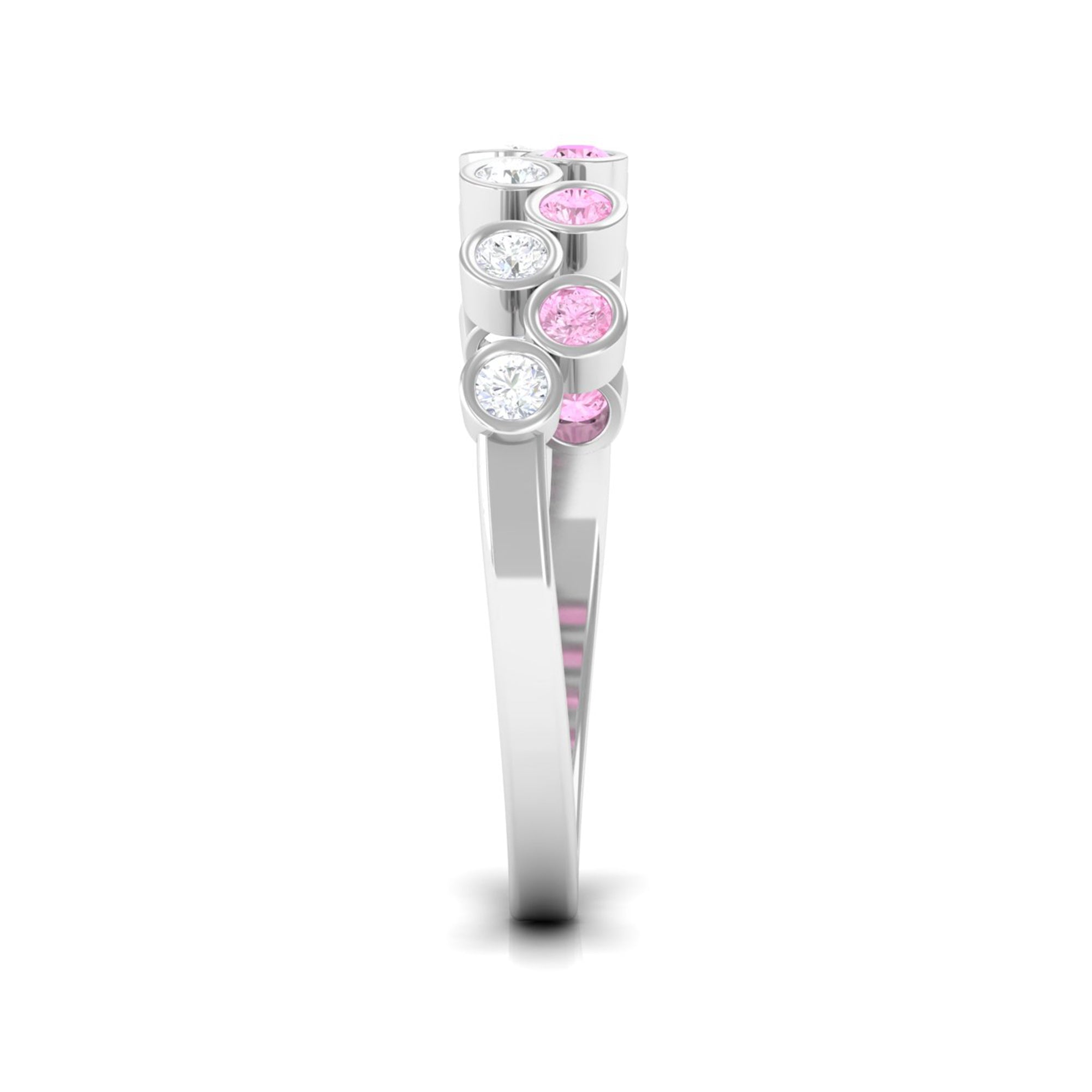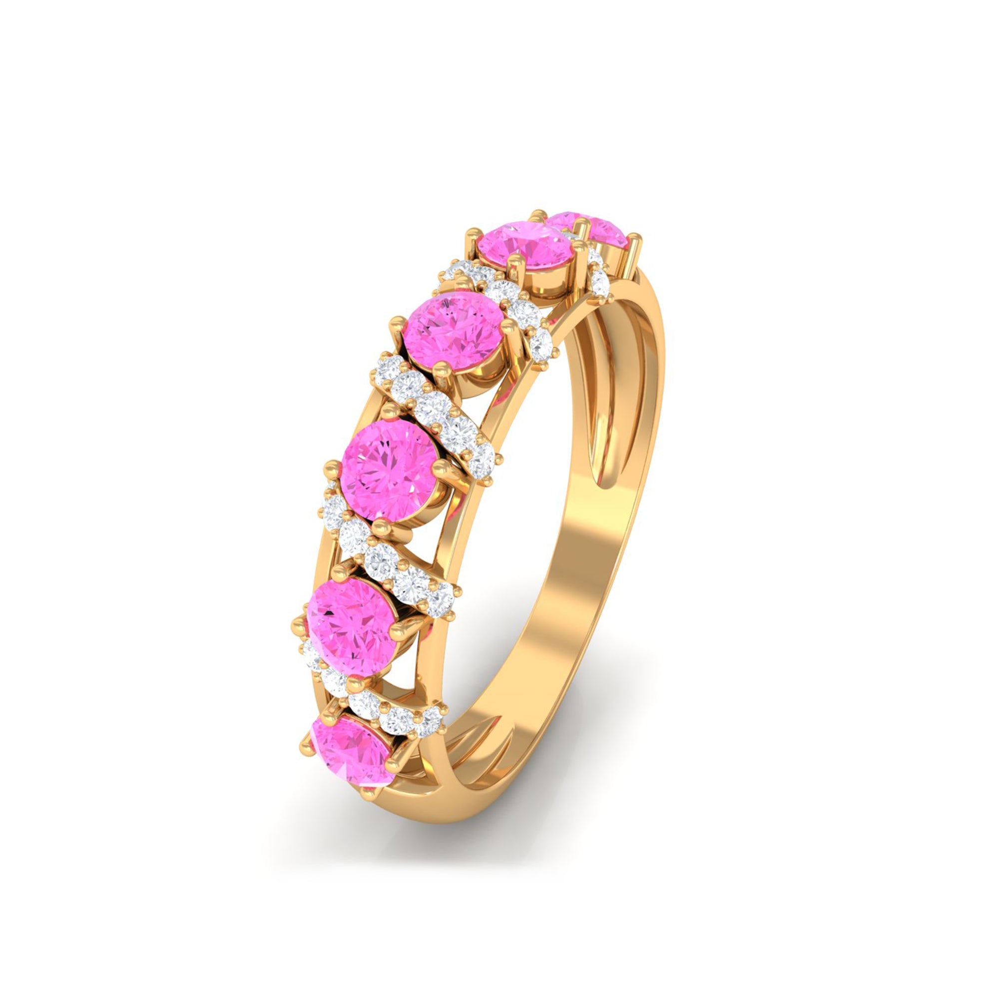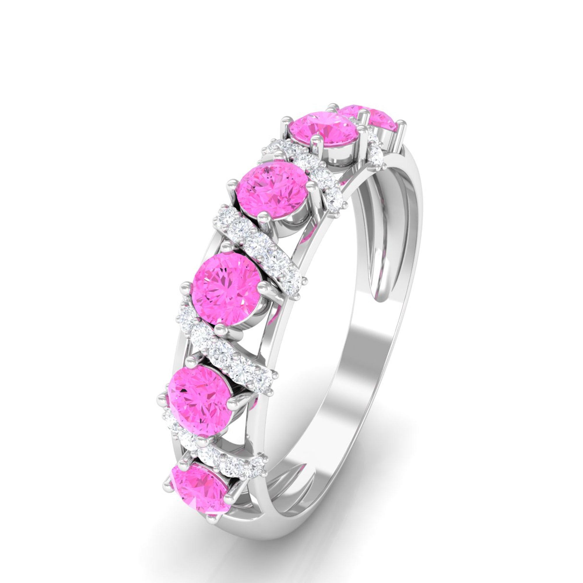 The collection of pink sapphire wedding rings from the online store of Rosec Jewels are a mesmerizing collection of wedding rings for women featuring the delicate and adorable pink hues of this fancy sapphire. Our trending ring styles and intricate designs when combined with the pink sapphire will yield utmost fascination for every eye that witness its beauty. Thus, for women in pursuit of an elegant look to adorn on their wedding day should be surprised with our pink sapphire eternity rings.