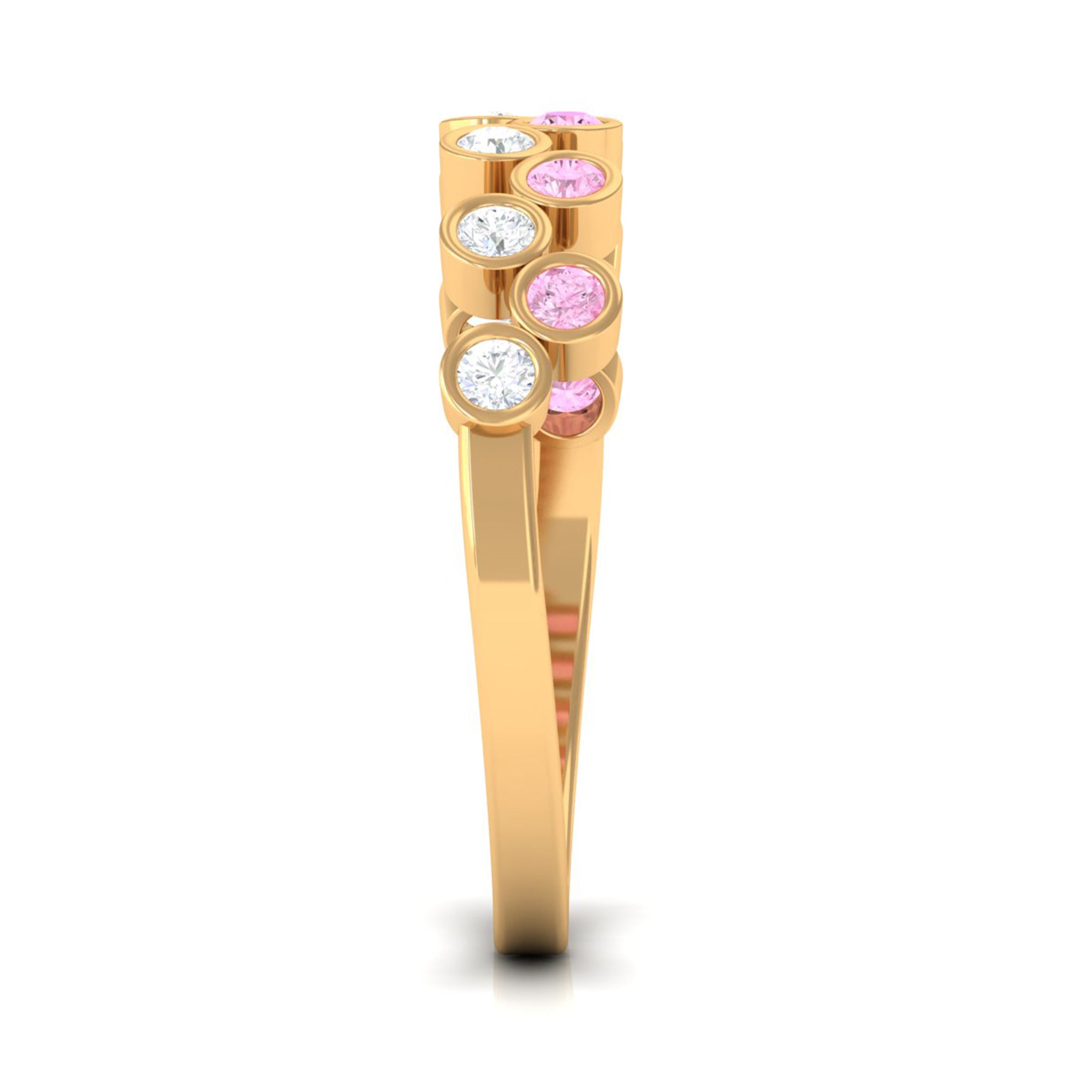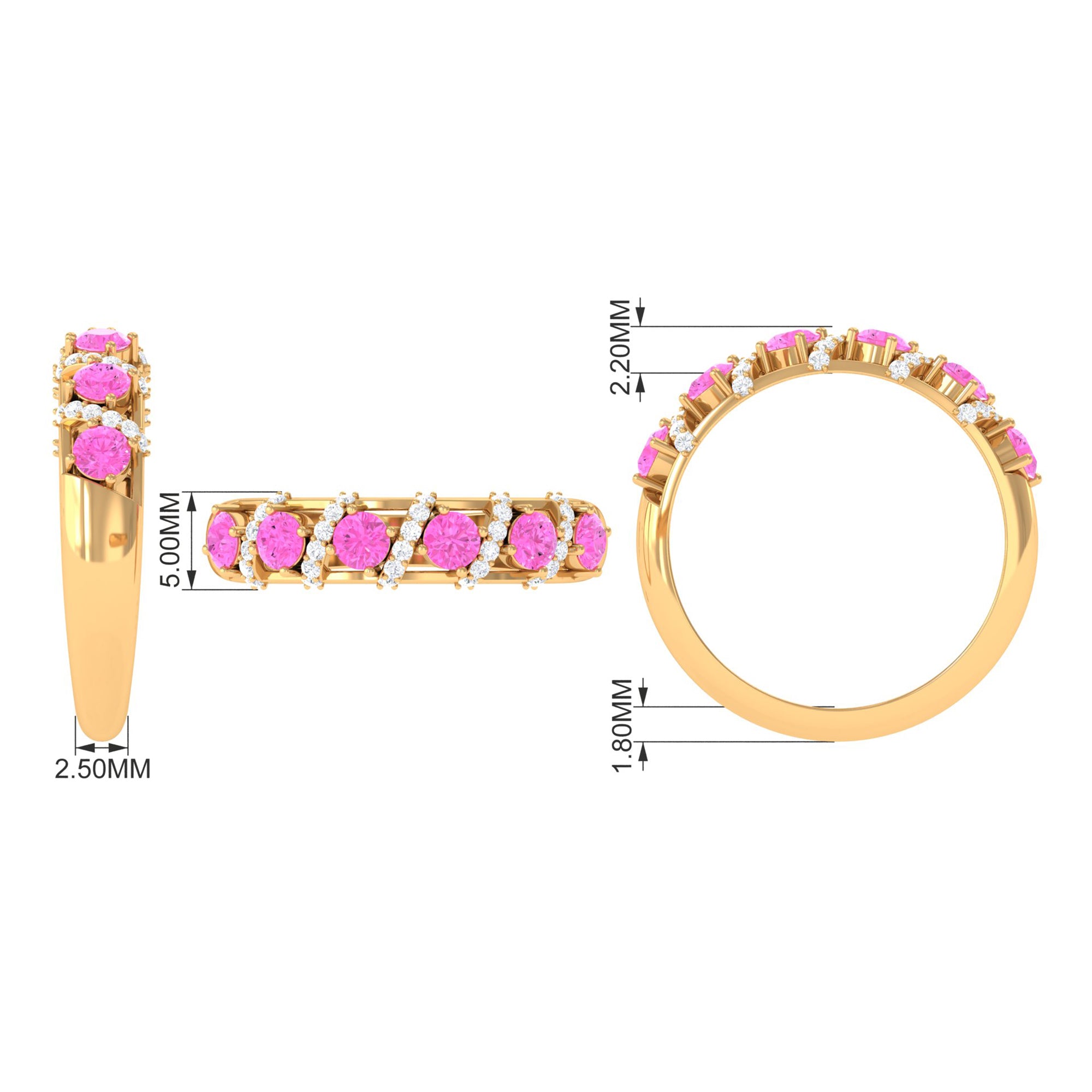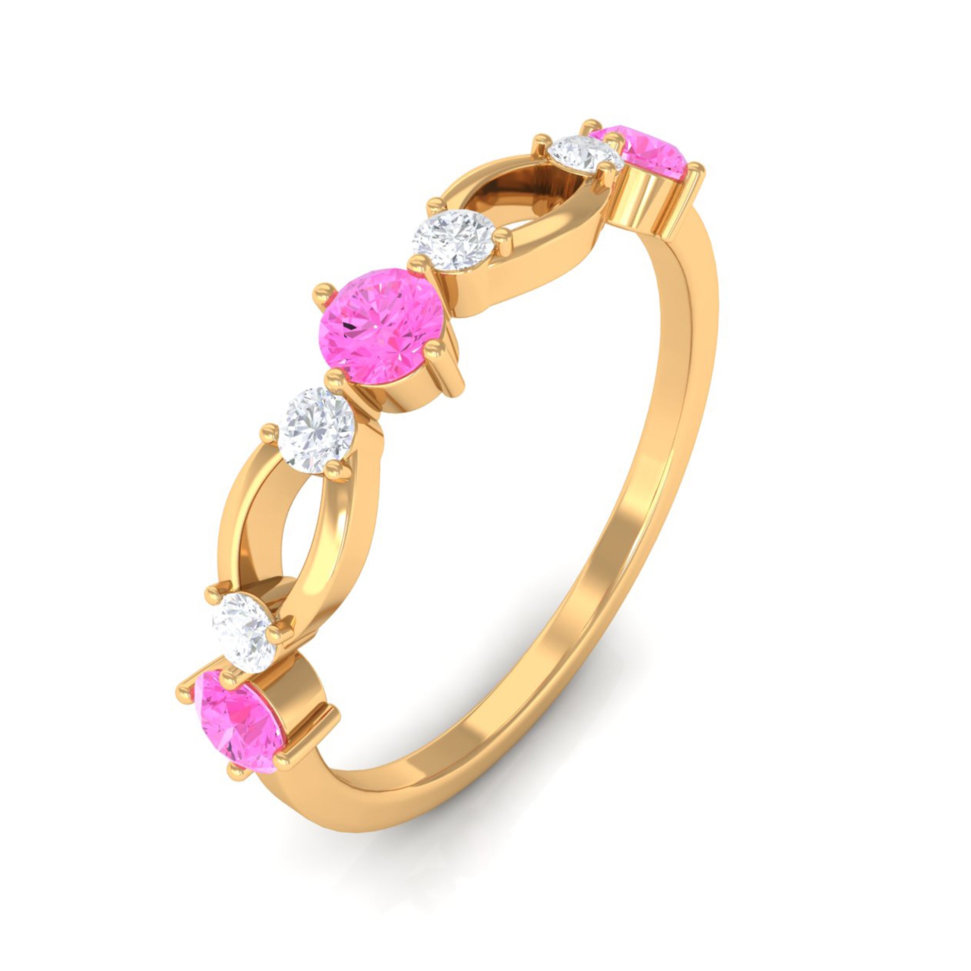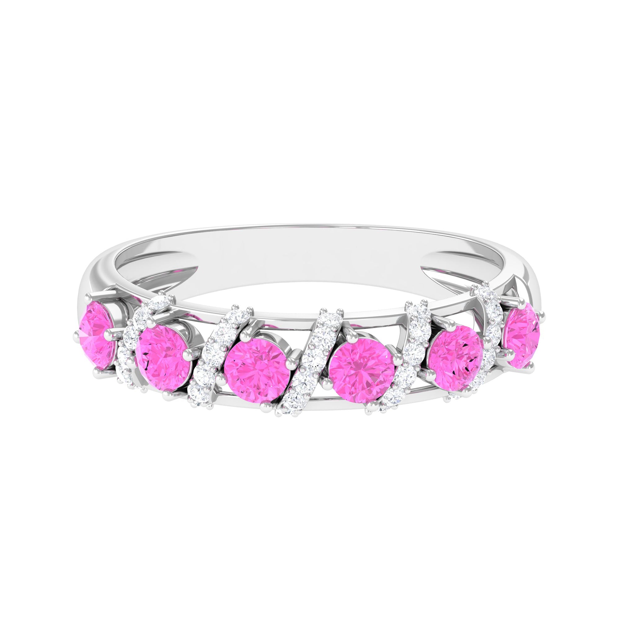 The collection of pink sapphire wedding rings from the online store of Rosec Jewels are a mesmerizing collection of wedding rings for women featuring the delicate and adorable pink hues of this fancy sapphire. Our trending ring styles and intricate designs when combined with the pink sapphire will yield utmost fascination for every eye that witness its beauty. Thus, for women in pursuit of an elegant look to adorn on their wedding day should be surprised with our pink sapphire eternity rings.