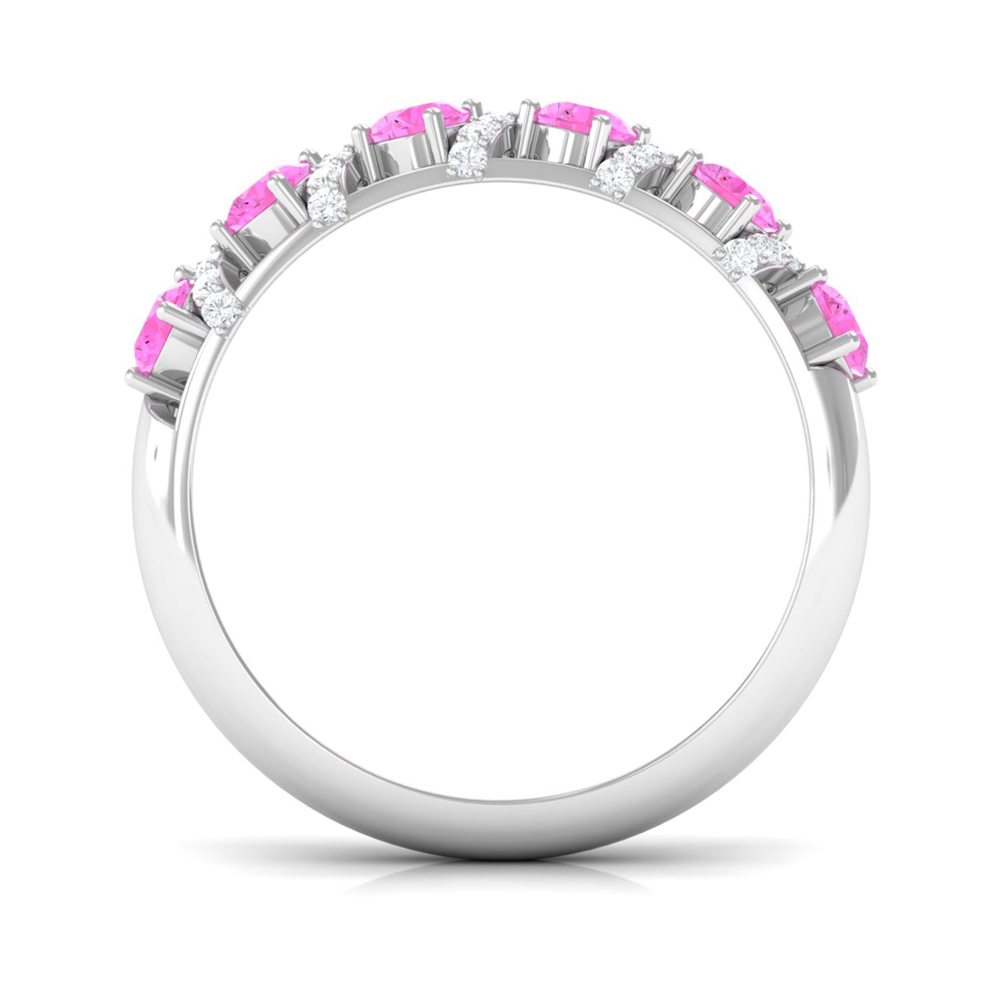 A pink sapphire wedding band can cost you somewhere between $500 to $3000 based on the quality of pink sapphires, metal quality and embellishments.