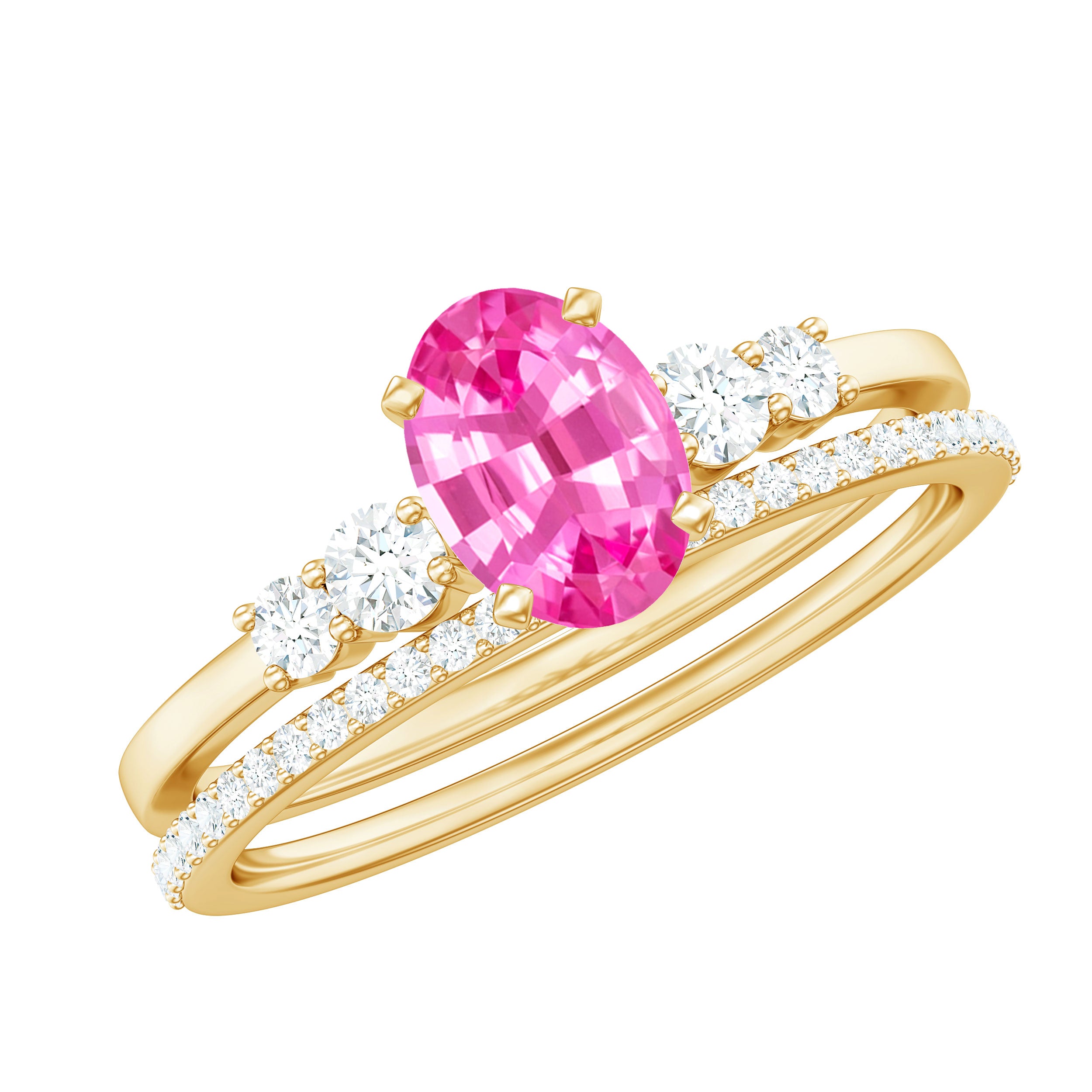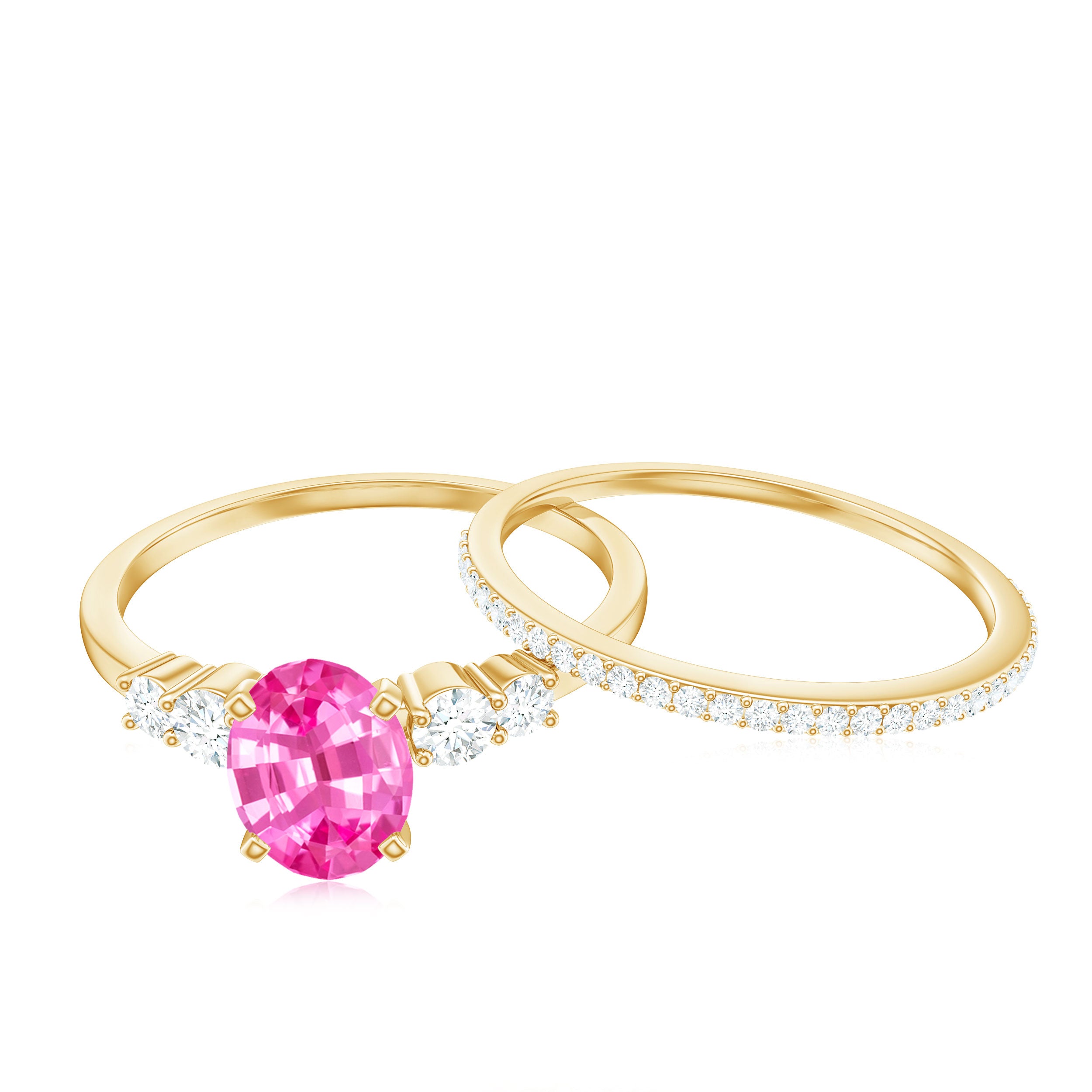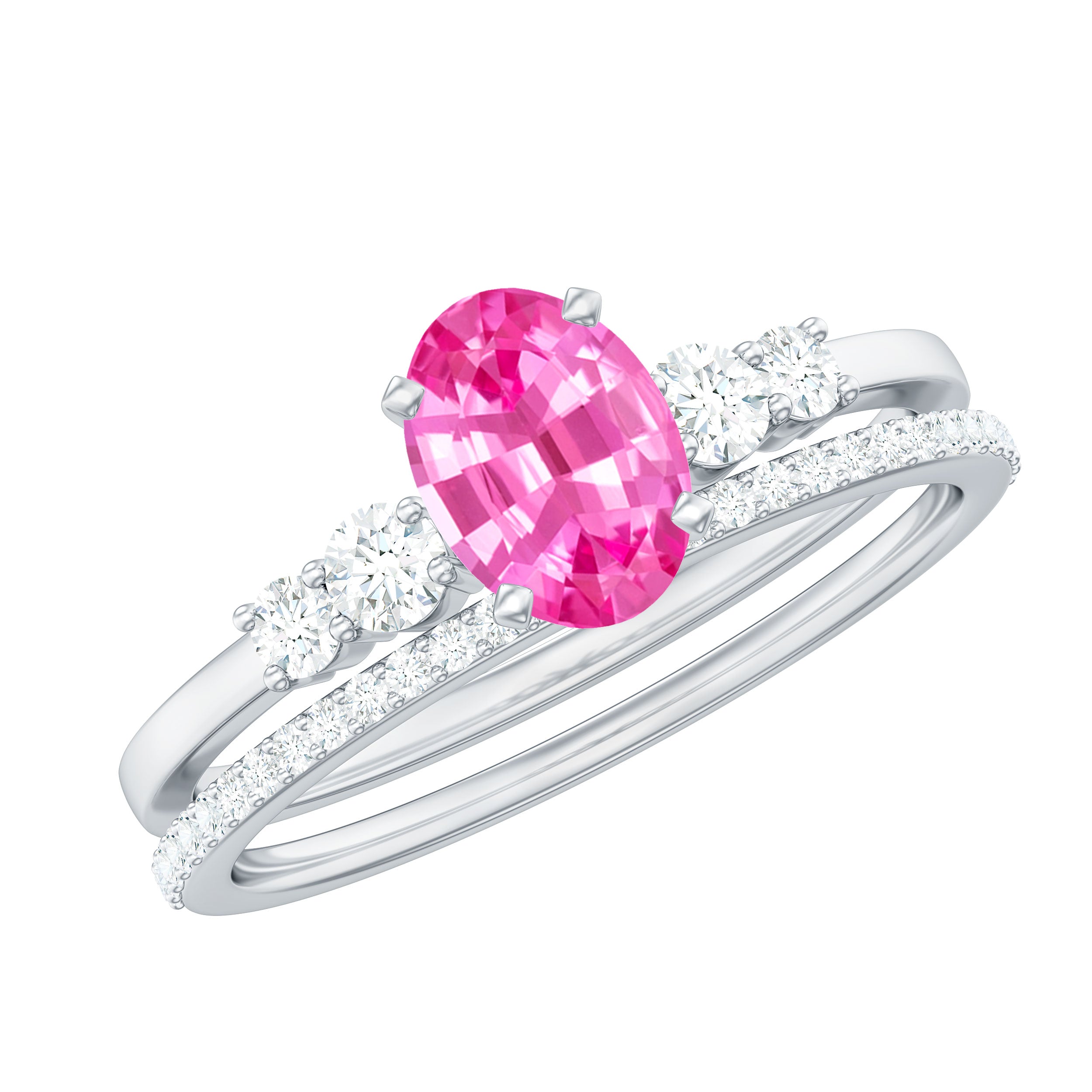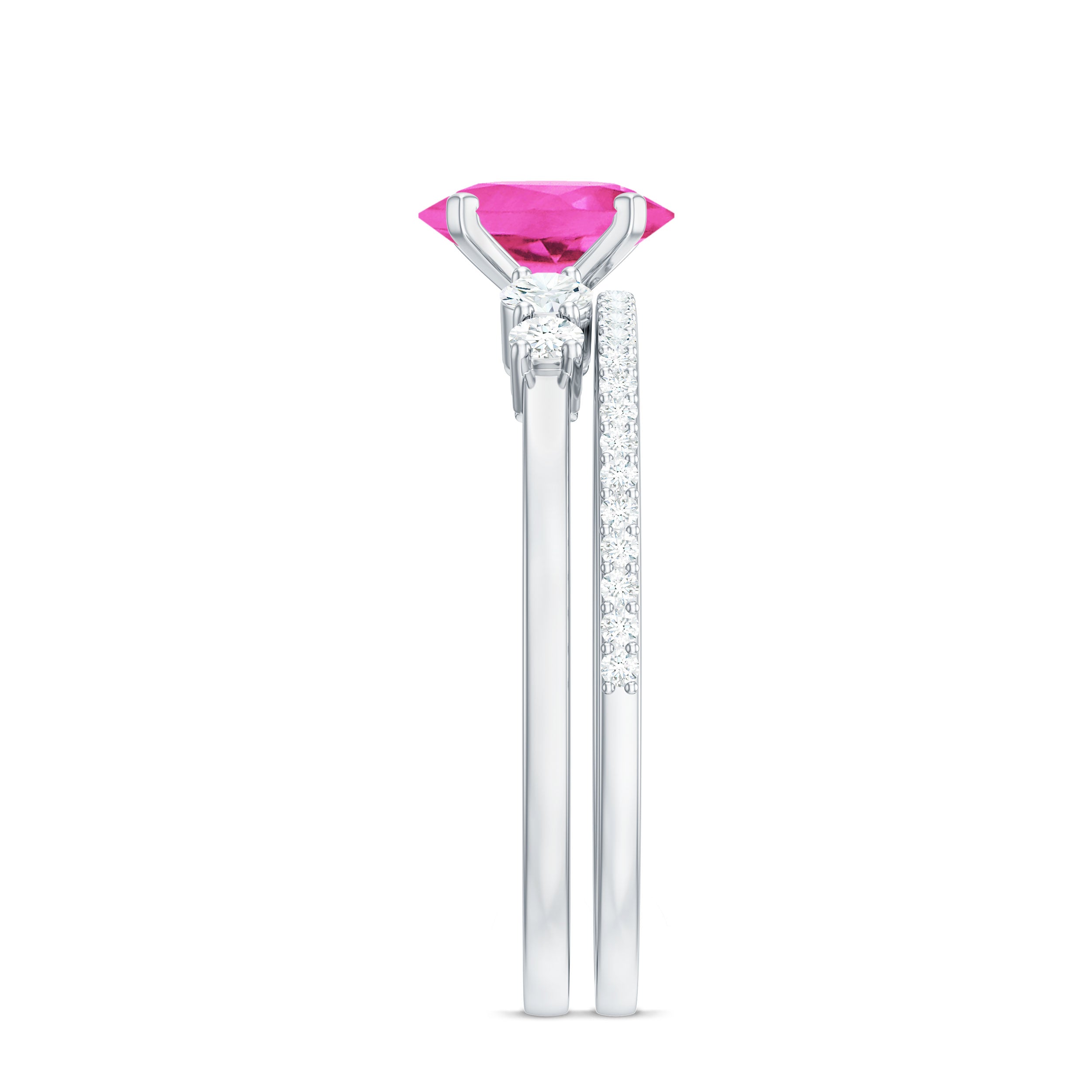 • Color: The romantic pink hues of the pink sapphire wedding bands varies from pale pink to vivid magenta with a desirable purple overtone.