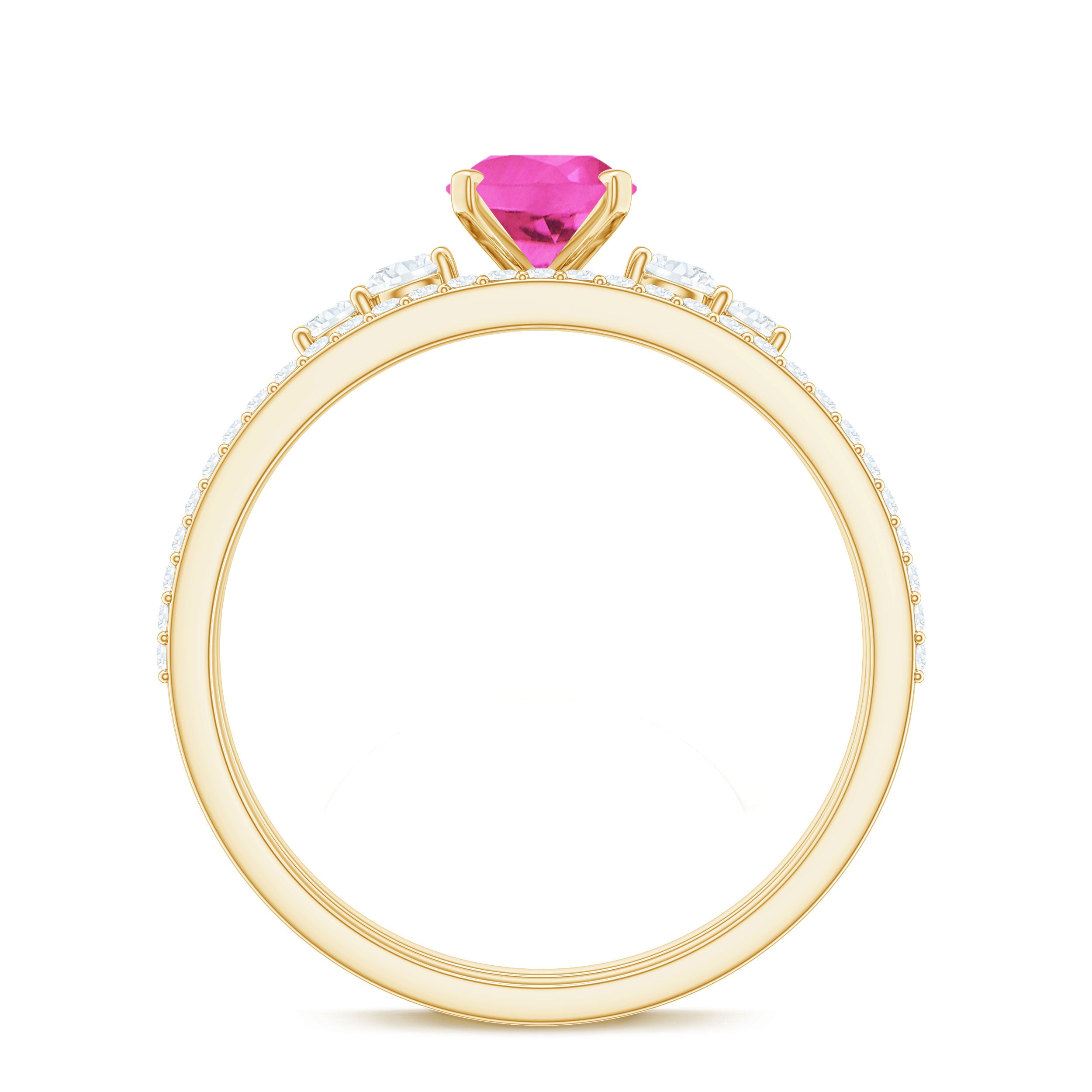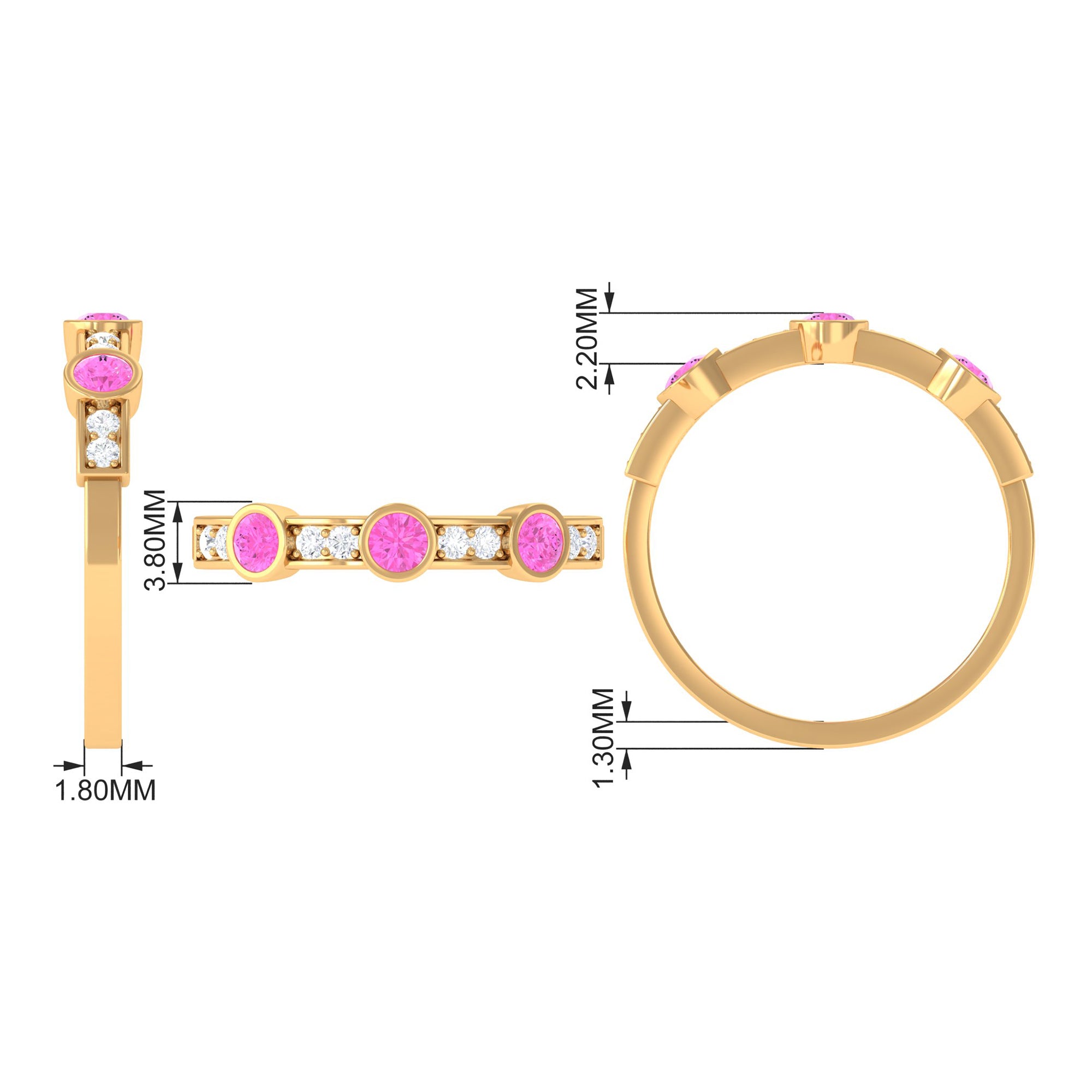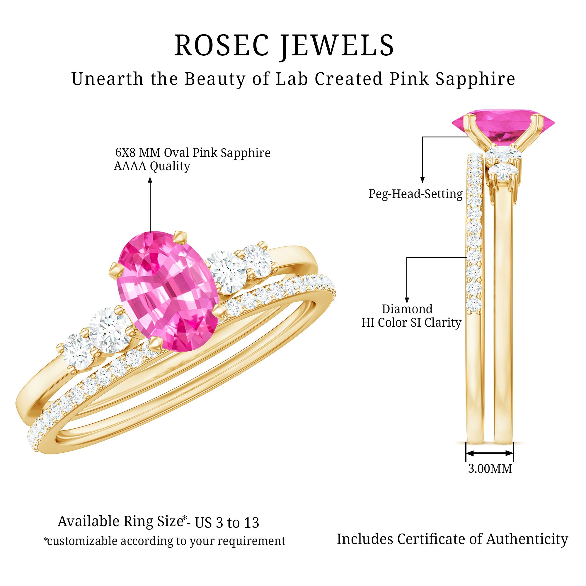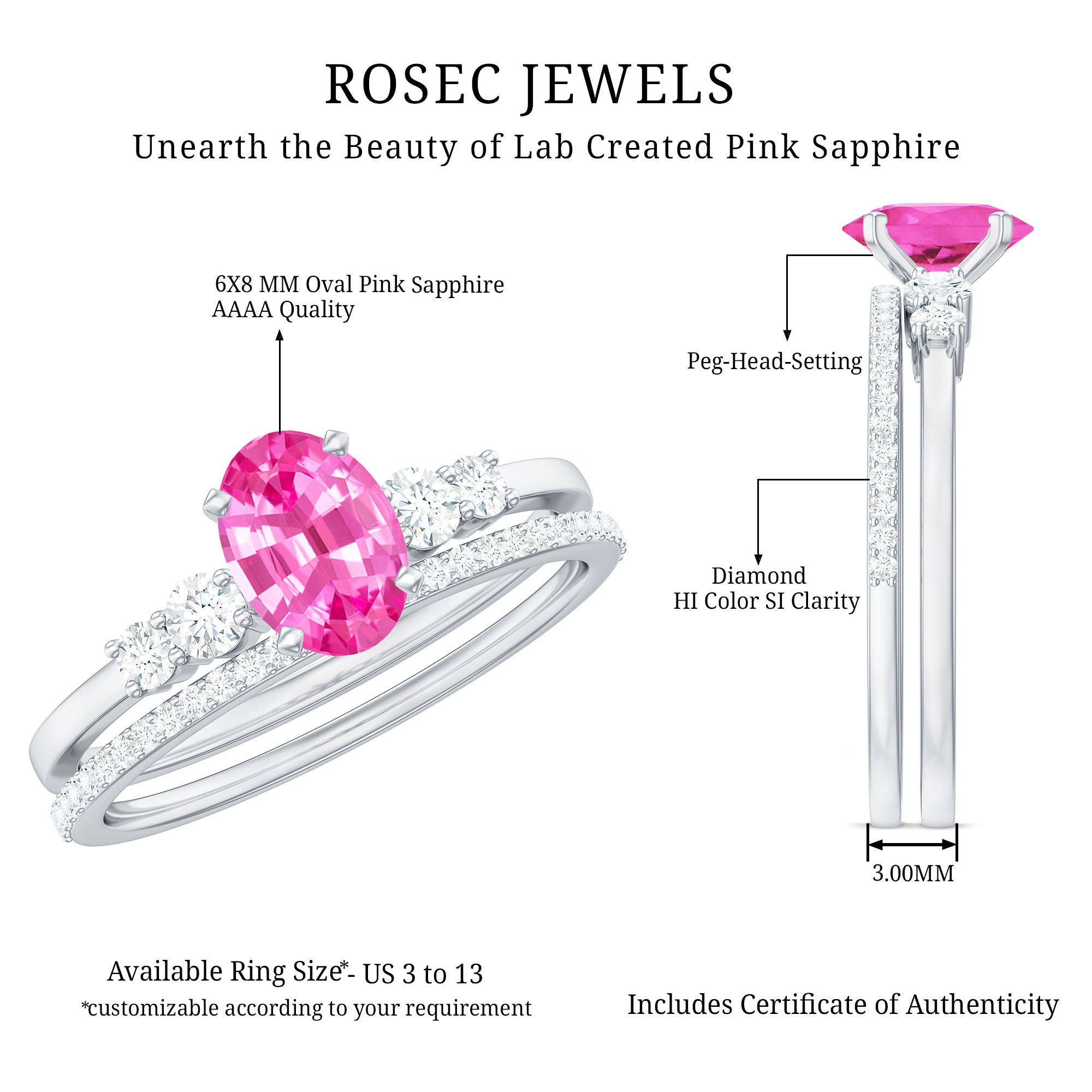 • Color: The romantic pink hues of the pink sapphire wedding bands varies from pale pink to vivid magenta with a desirable purple overtone.