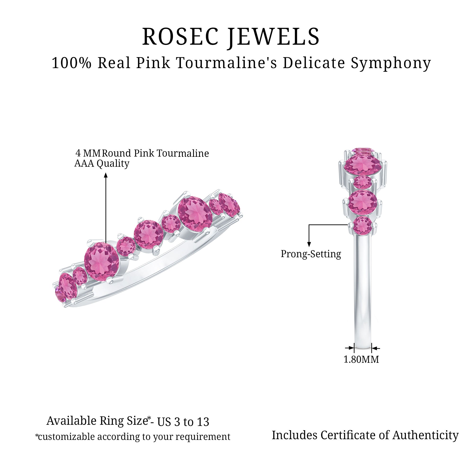 Also, did we tell you? Apart from offering a versatile collection, we can also breathe life into your dream designs with our Custom Pink Tourmaline Rings.