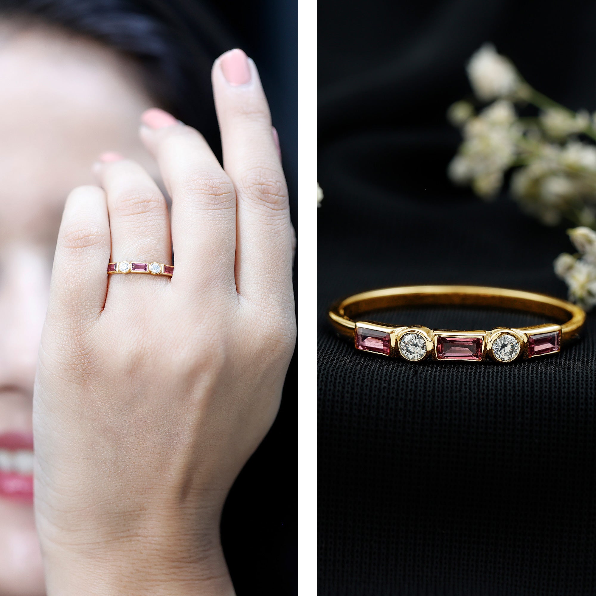 Lucky for you, our versatile styles of Pink Tourmaline Gold Rings do complete justice to the kind of beauty this October Birthstone holds.