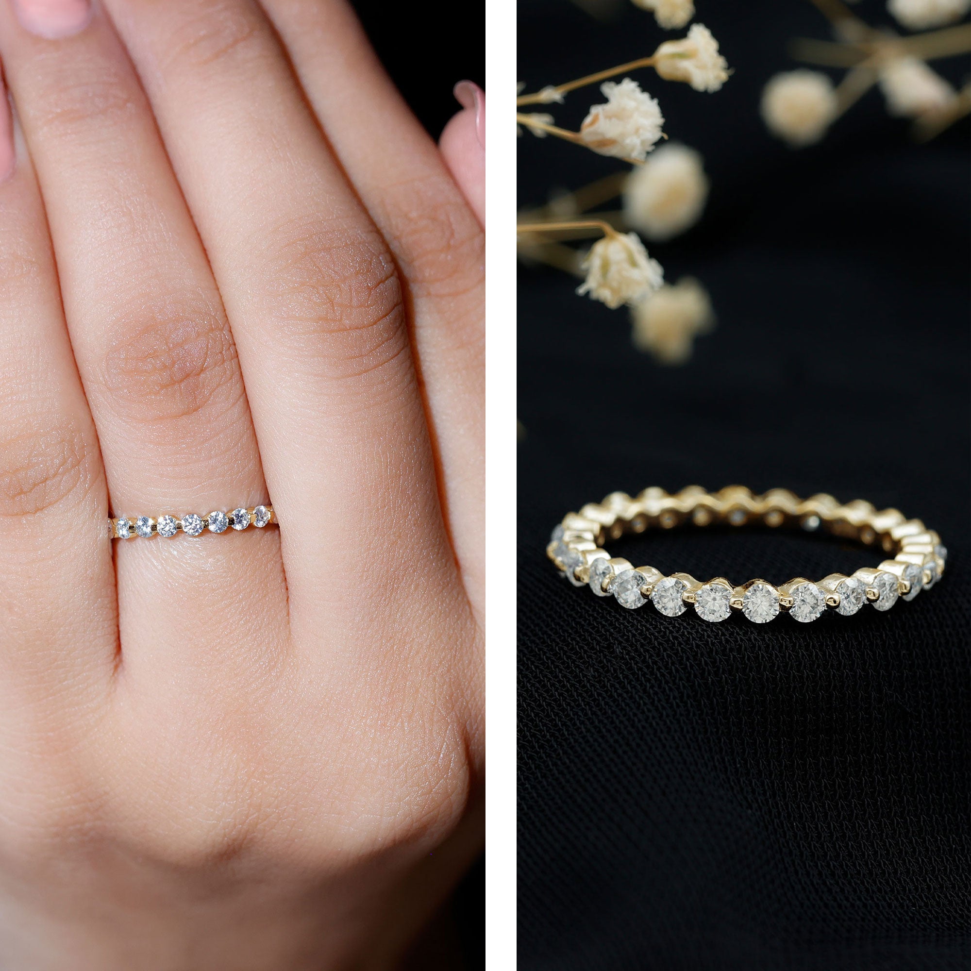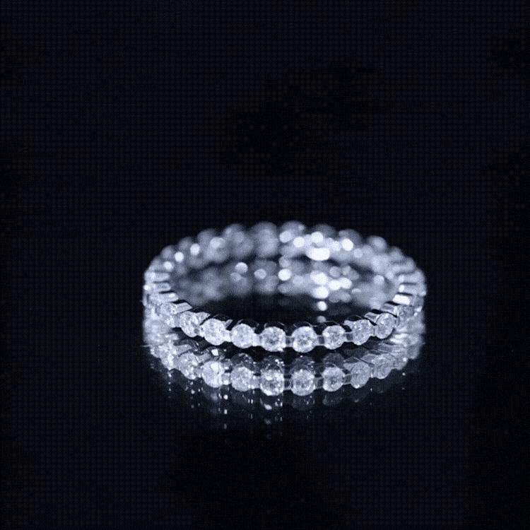 These eternal bands feature shimmering diamonds in a row, along the entire band, creating a more luxurious look. Those who love classic brilliance and eternal beauty would definitely love these engagement ring enhancers.