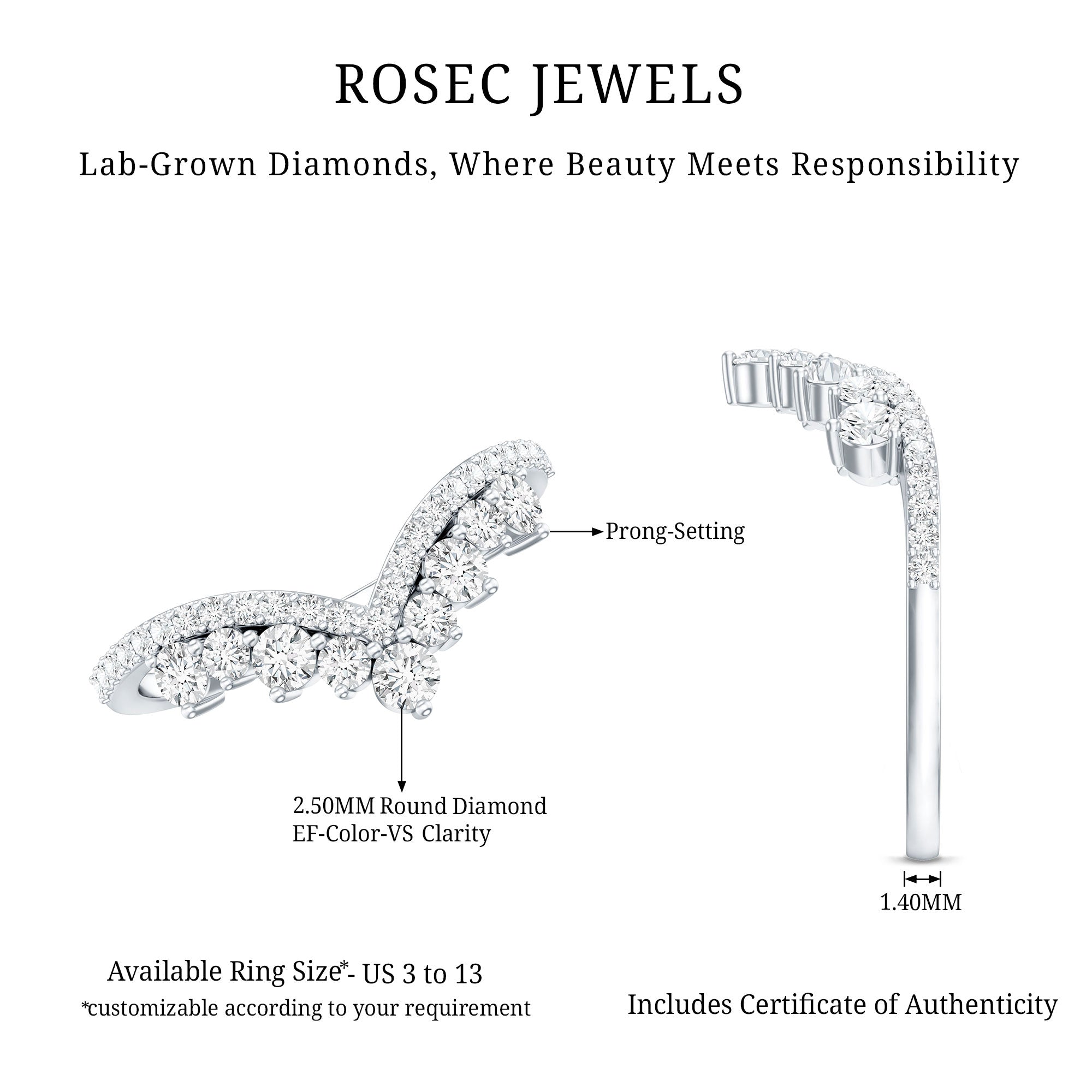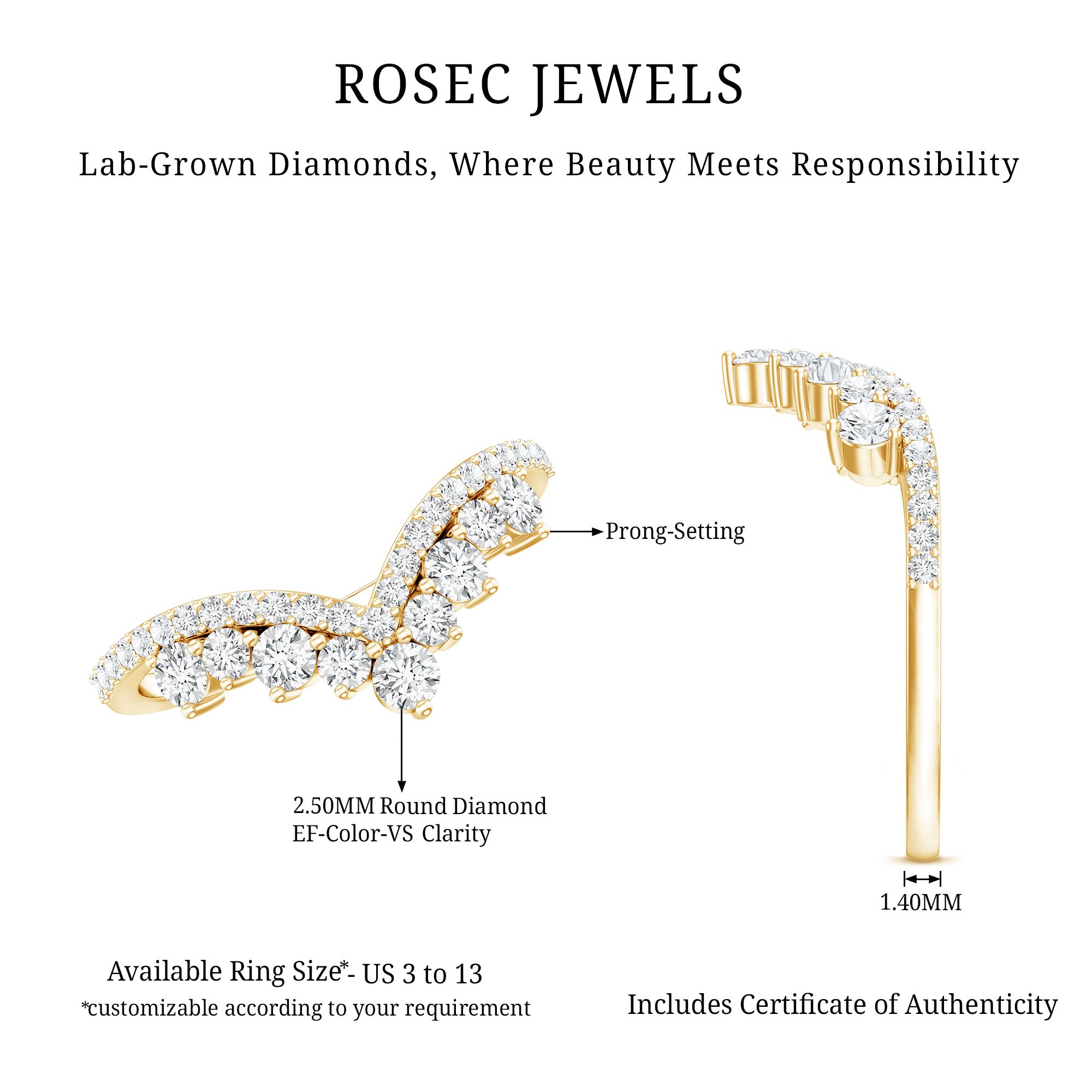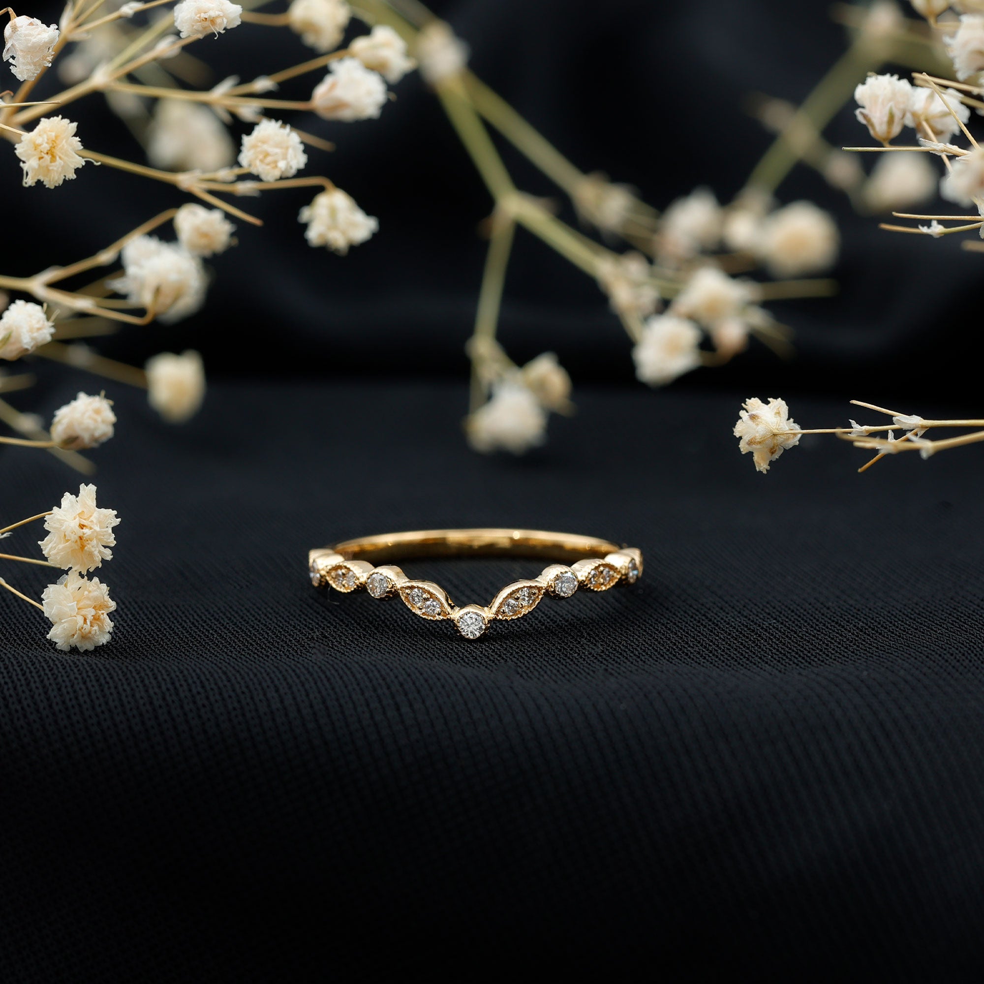These V-shaped enhancers, commonly called wishbone rings, are designed with a stylish dip that fits around the center stone of other rings perfectly. Modern brides who love bold, stackable looks are choosing chevron moissanite ring enhancers.