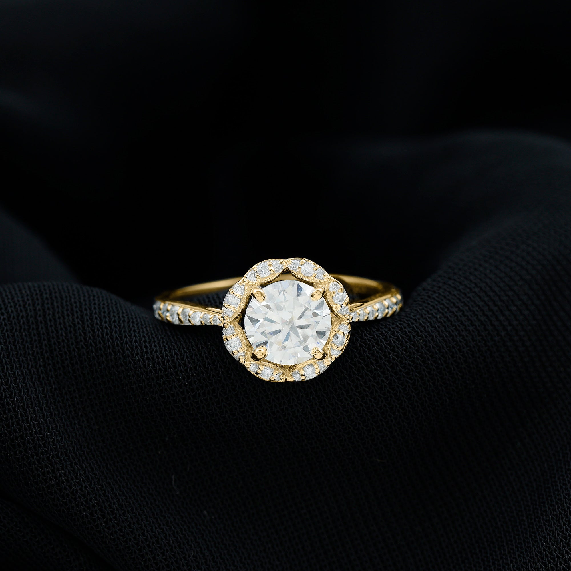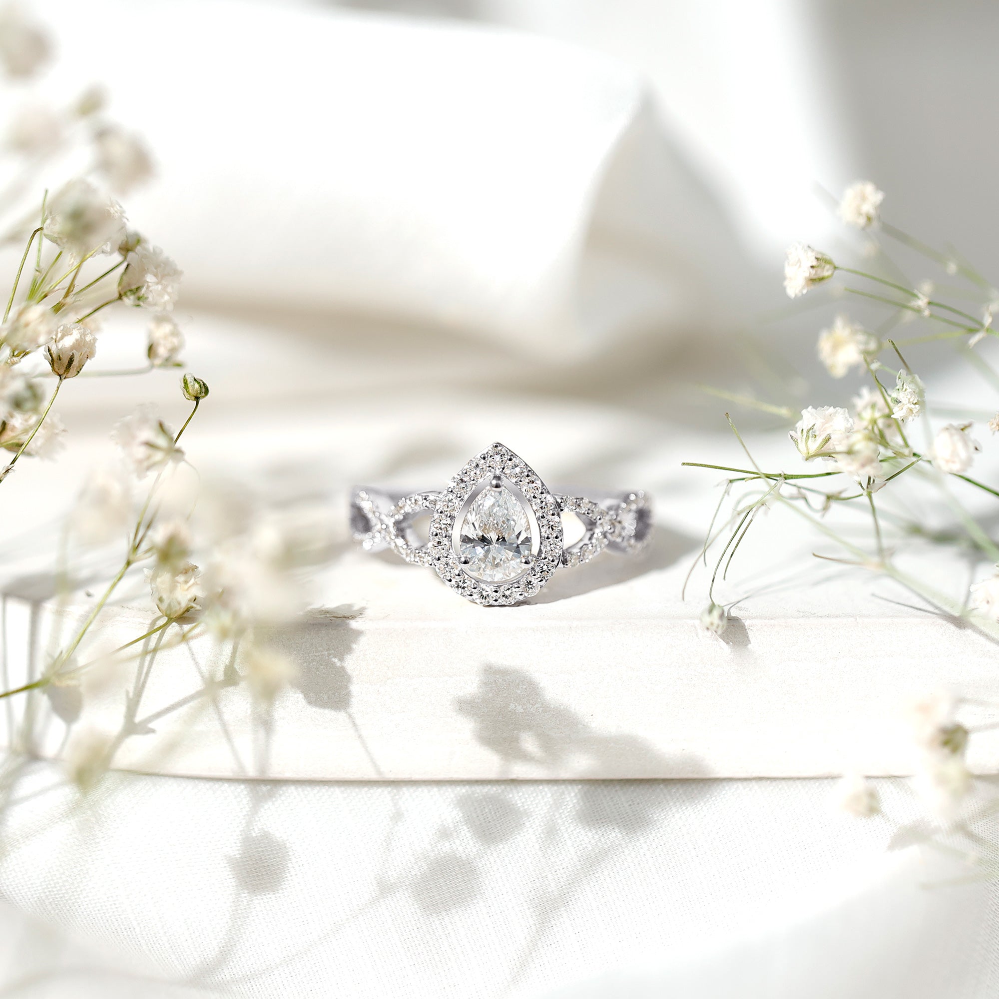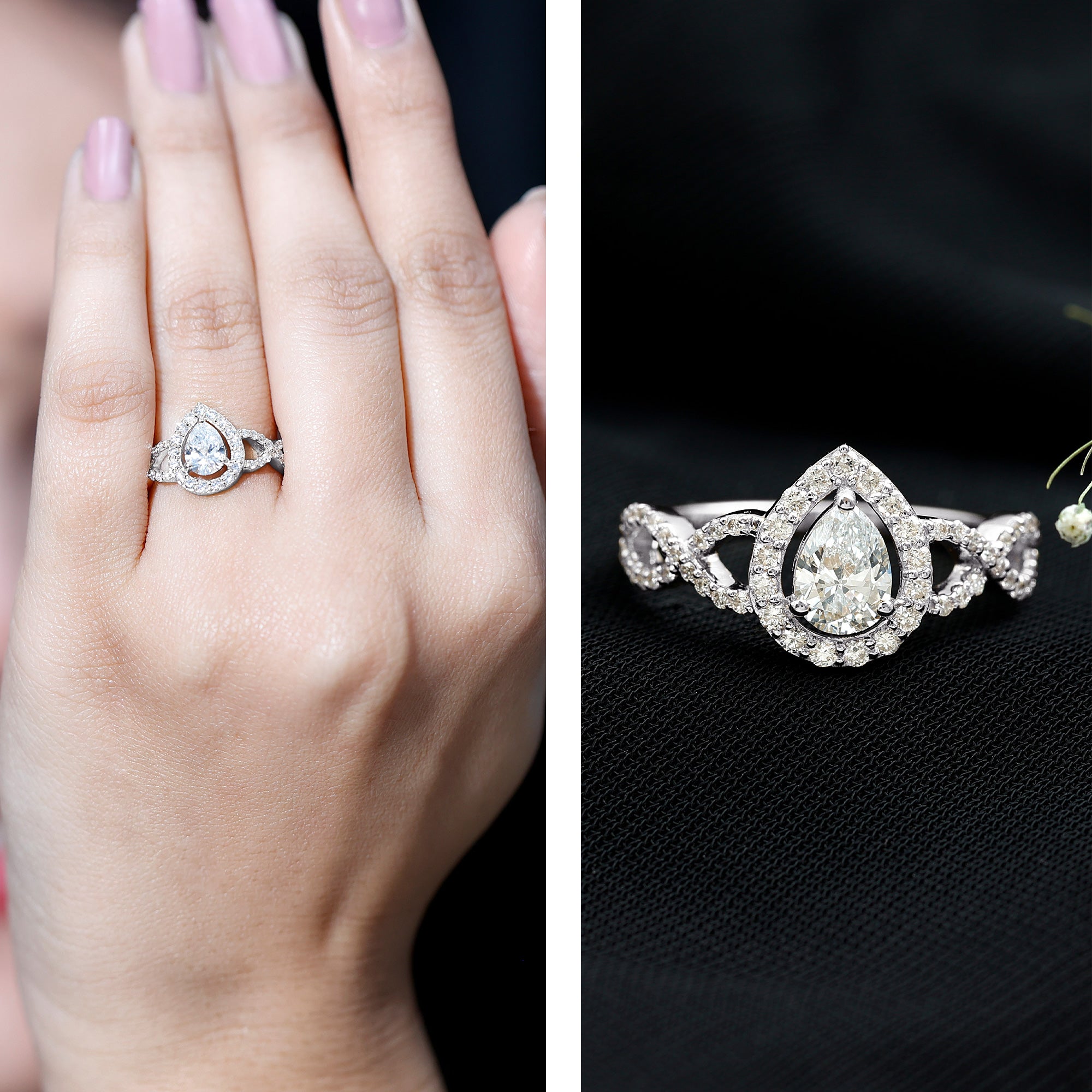 An added layer of sparkle is always a big yes! And that’s practically what drives the appeal for Gemstone Halo Rings. That’s because this style is all about sparkles and is characterized by a row of petite stones (usually diamond or moissanite) that encircle the center stone. Also, a pop of color of a colored gemstone accompanied by brilliance of diamonds/moissanite can get too hard to resist.