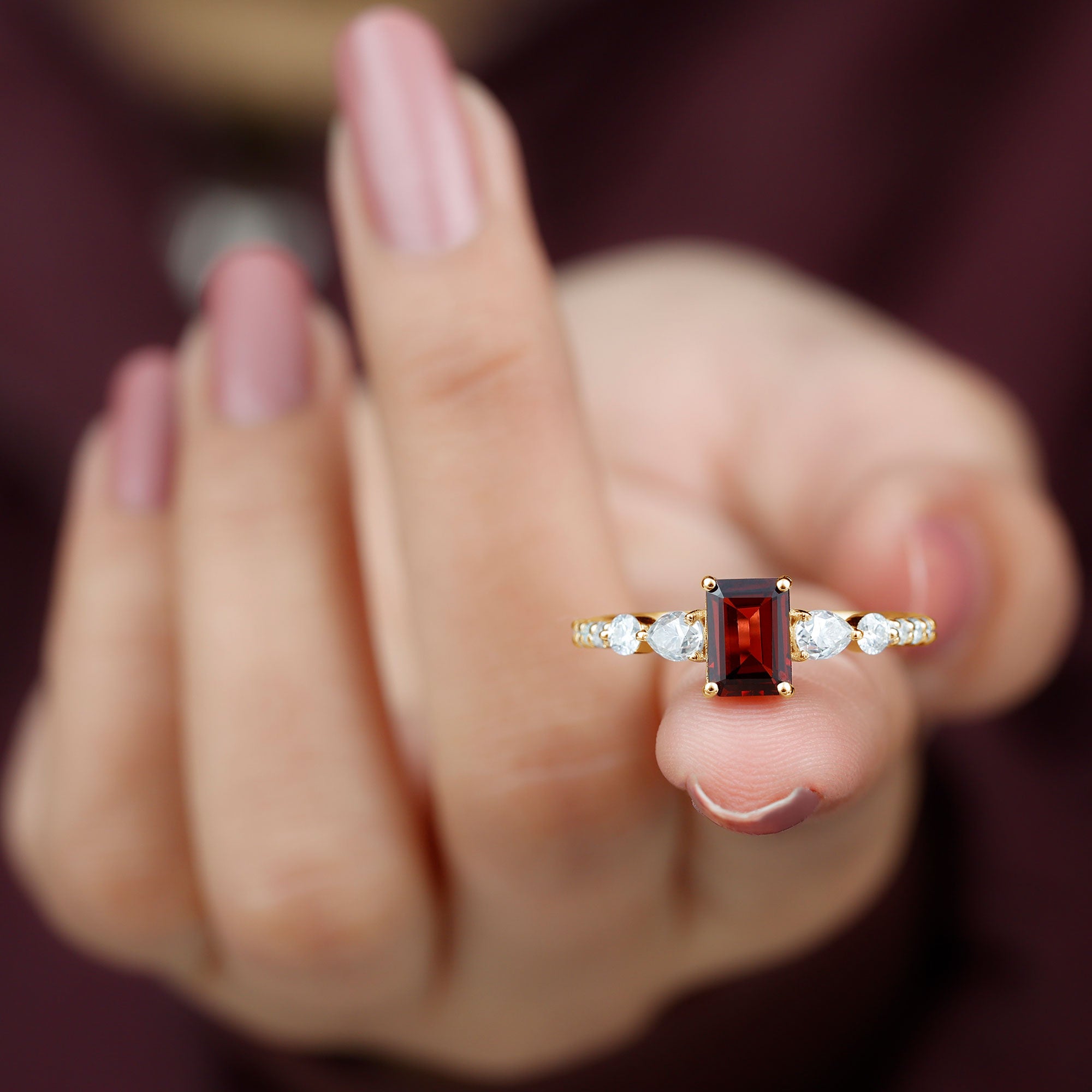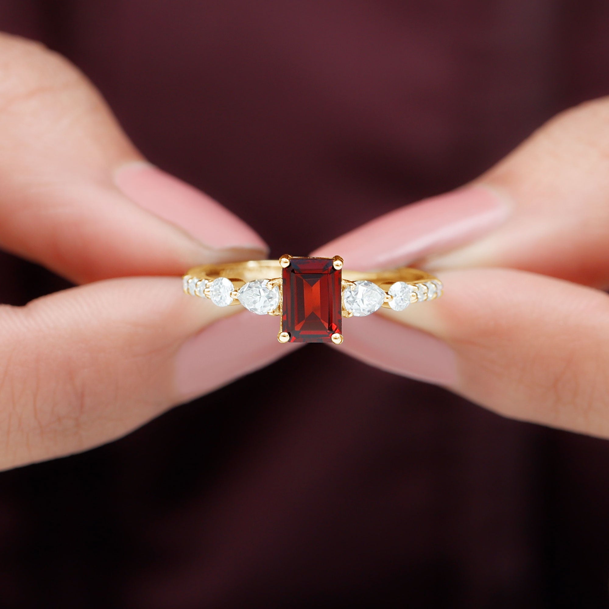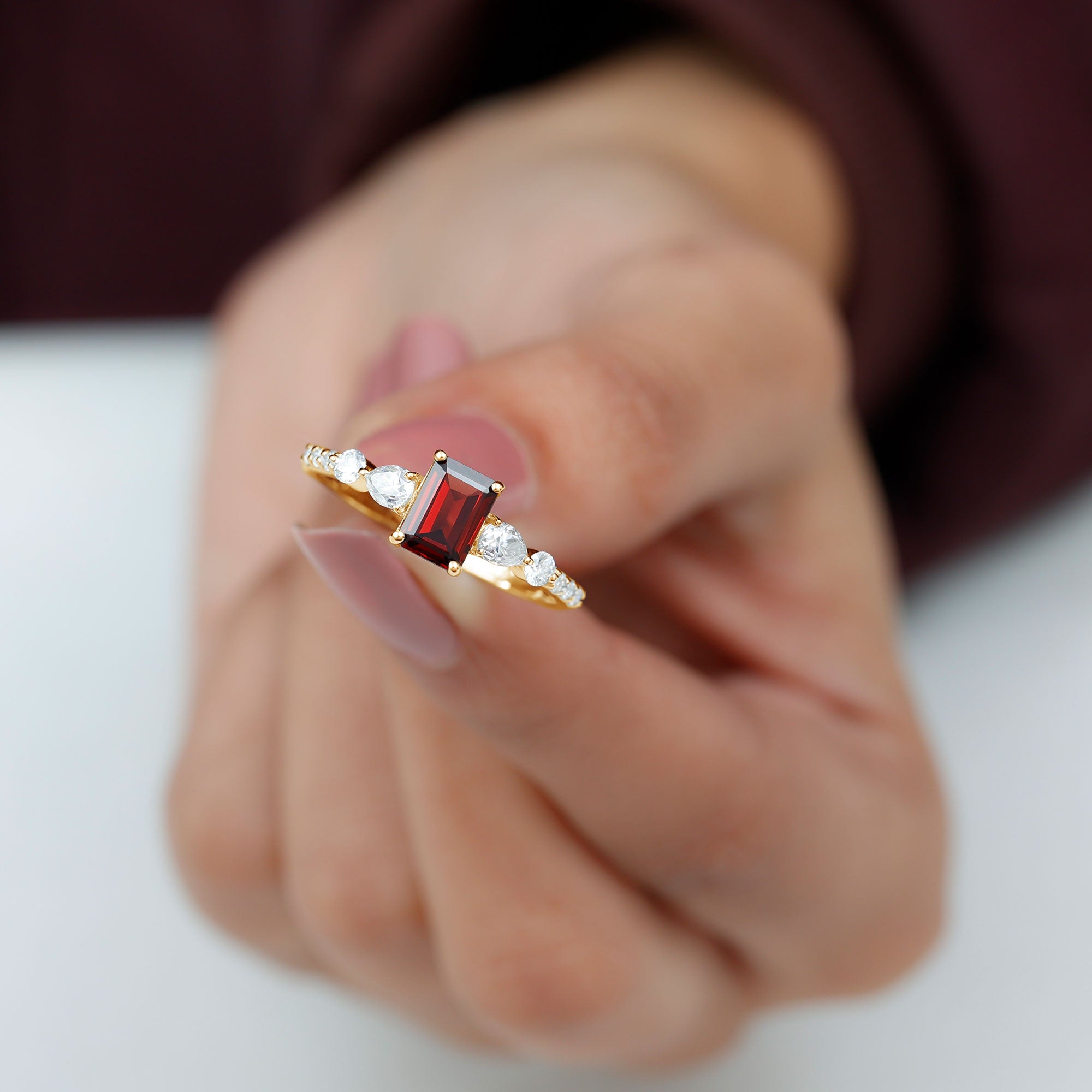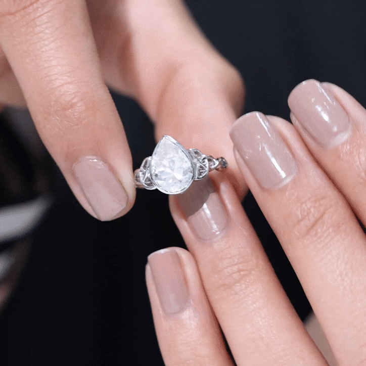 Wish to know a little secret? Not only does it sparkle at its best, but also deceives your eye by offering the illusion of a bigger center stone. So, you could totally take it to mean that it offers you the best of both worlds, making it one of the most unique gemstone rings for women out there!