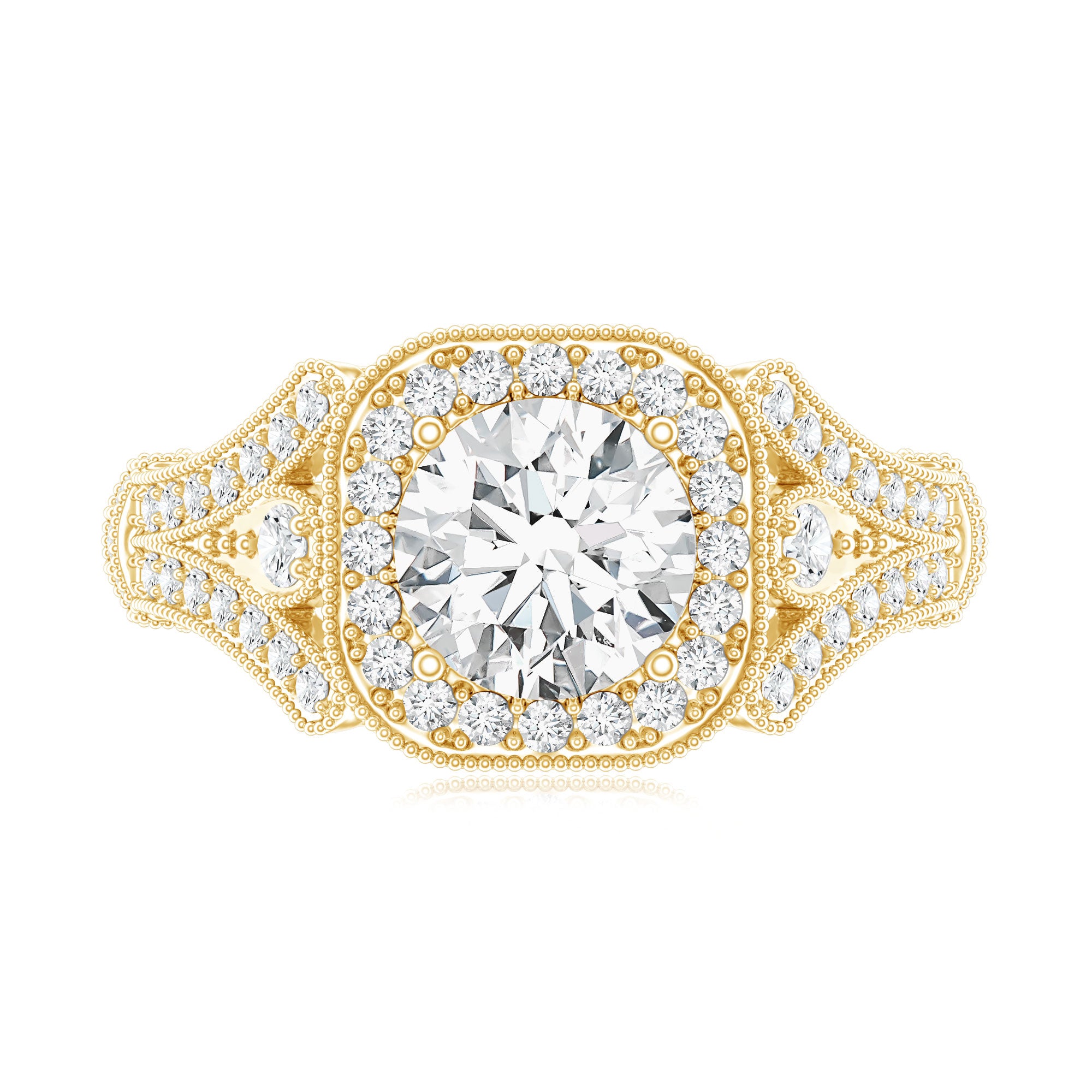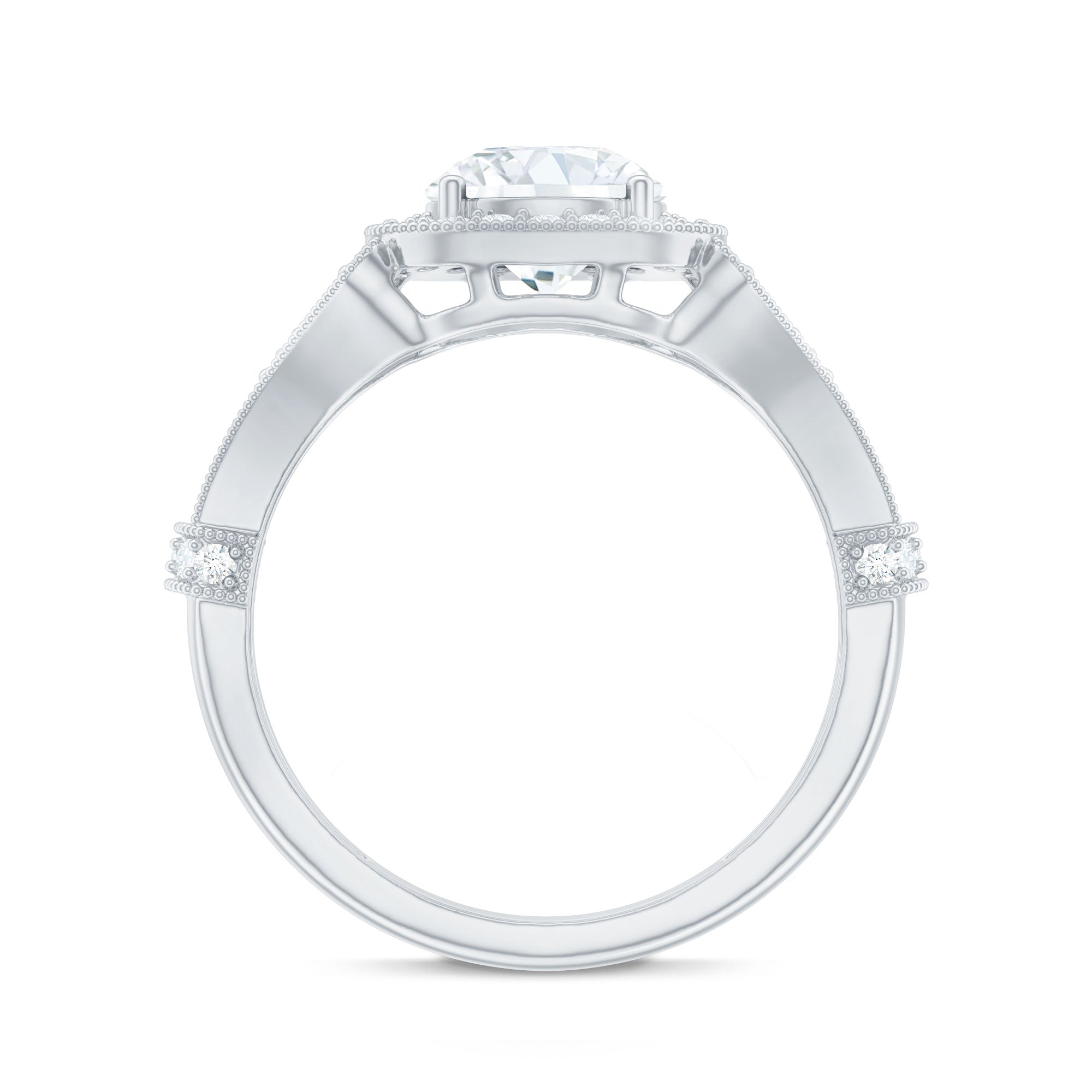 An added layer of sparkle is always a big yes! And that’s practically what drives the appeal for Gemstone Halo Rings. That’s because this style is all about sparkles and is characterized by a row of petite stones (usually diamond or moissanite) that encircle the center stone. Also, a pop of color of a colored gemstone accompanied by brilliance of diamonds/moissanite can get too hard to resist.