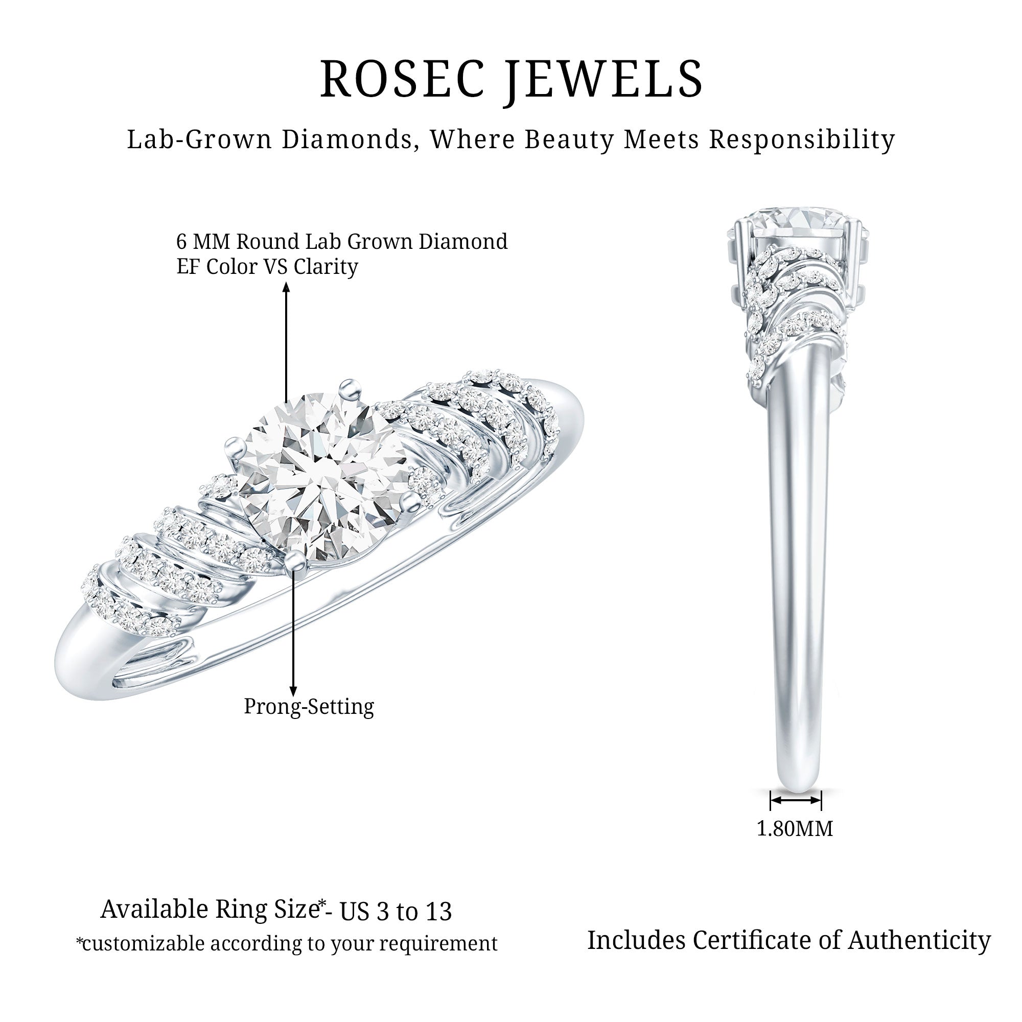 The Center Stone could be of the most traditional round shape or be on the fancier end of the spectrum (pear, marquise, etc.) or even ooze a vintage vibe (Asscher, emerald, etc). You’d be surprised to note what big a difference the shape plays in defining the aesthetics of your Solitaire Ring. The options are endless and everything ultimately boils down to your preference.