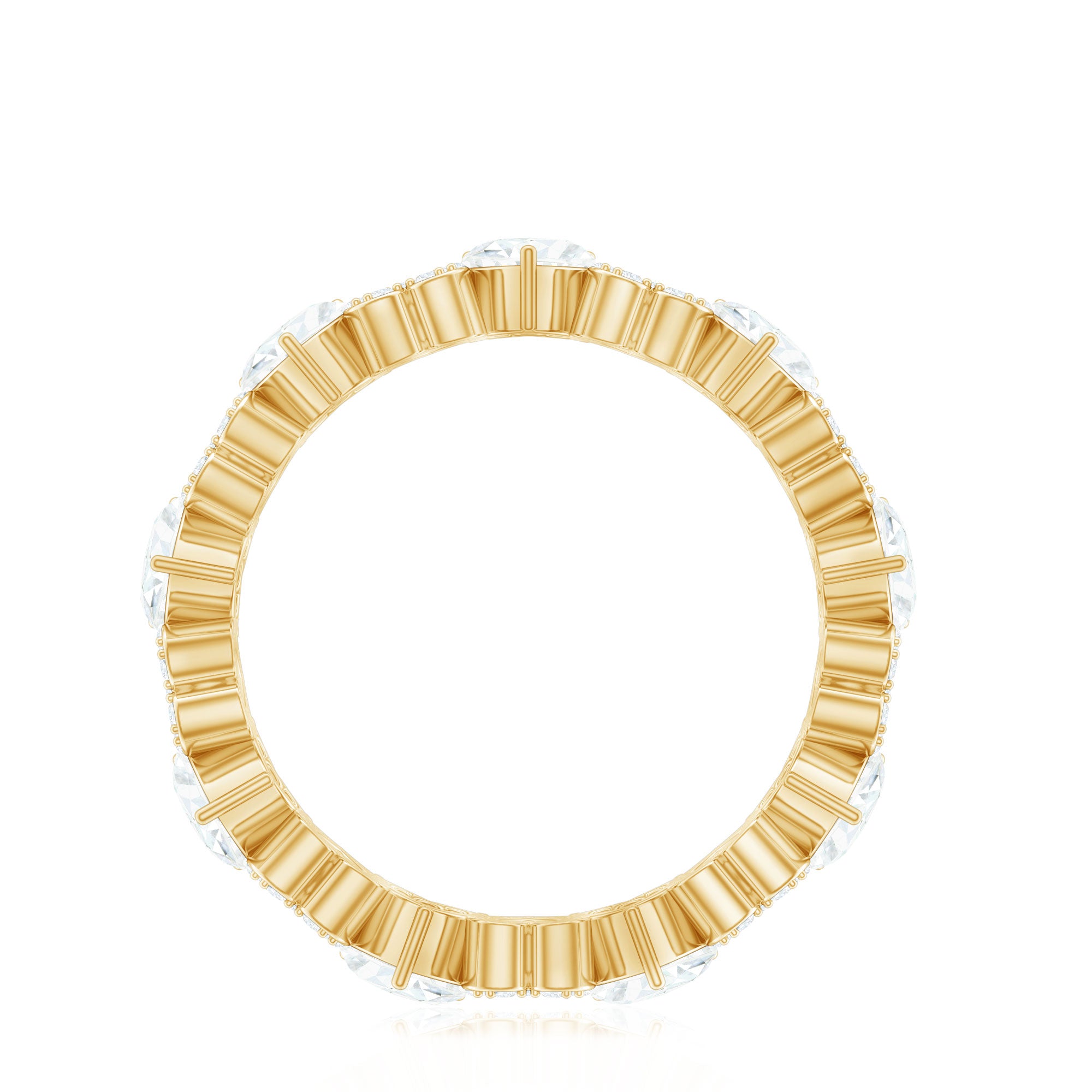 Nothing commemorates eternal love better than gemstone eternity bands. The style itself is enough to speak of that. Well, Eternity Bands feature a row of uniformly sized gemstones studded all along the band in an unbreakable circle (reflecting on your everlasting love). Eternity Bands in our collection can be adorned with the most classic colored stones or even more flashy ones, all crafted in white, yellow, and rose gold.