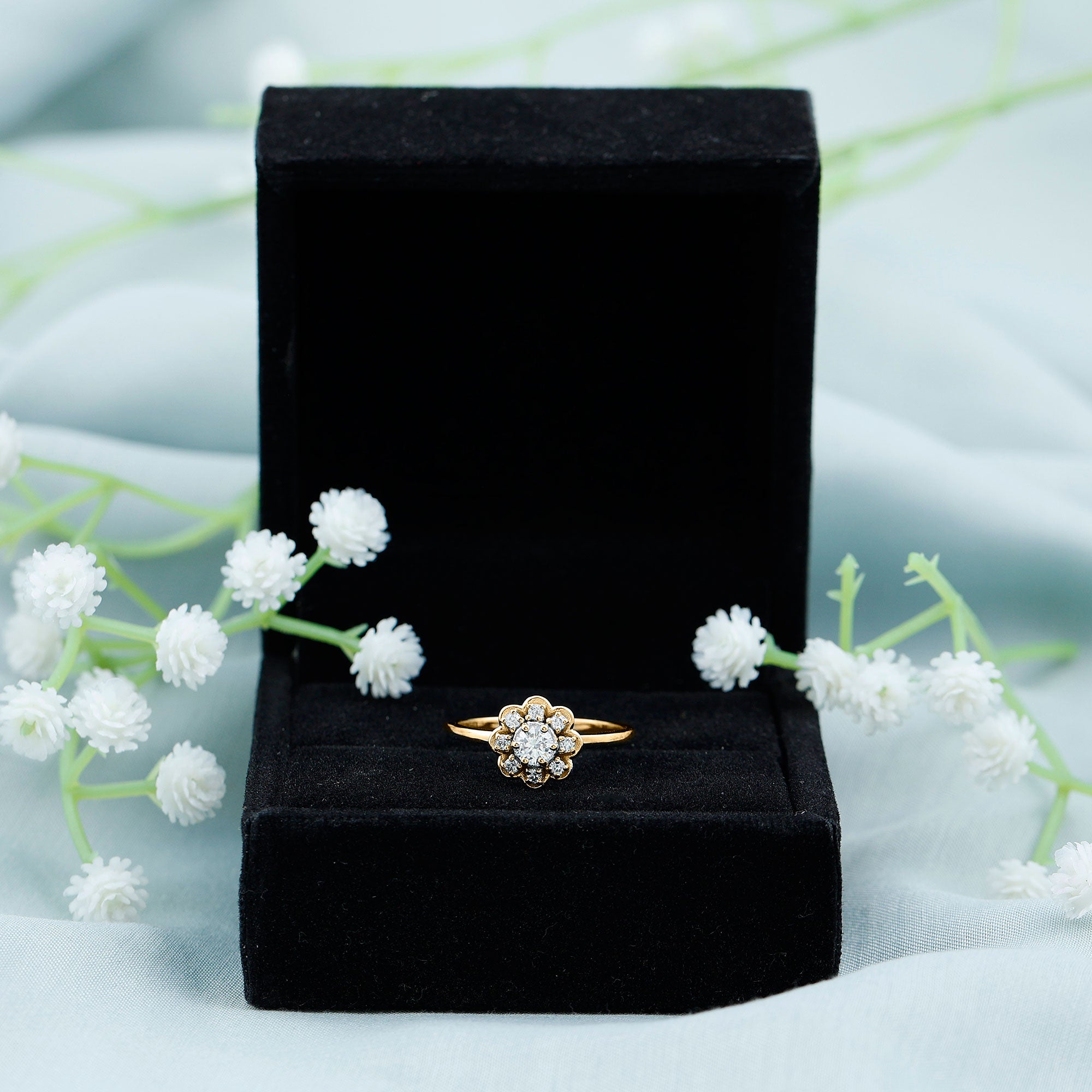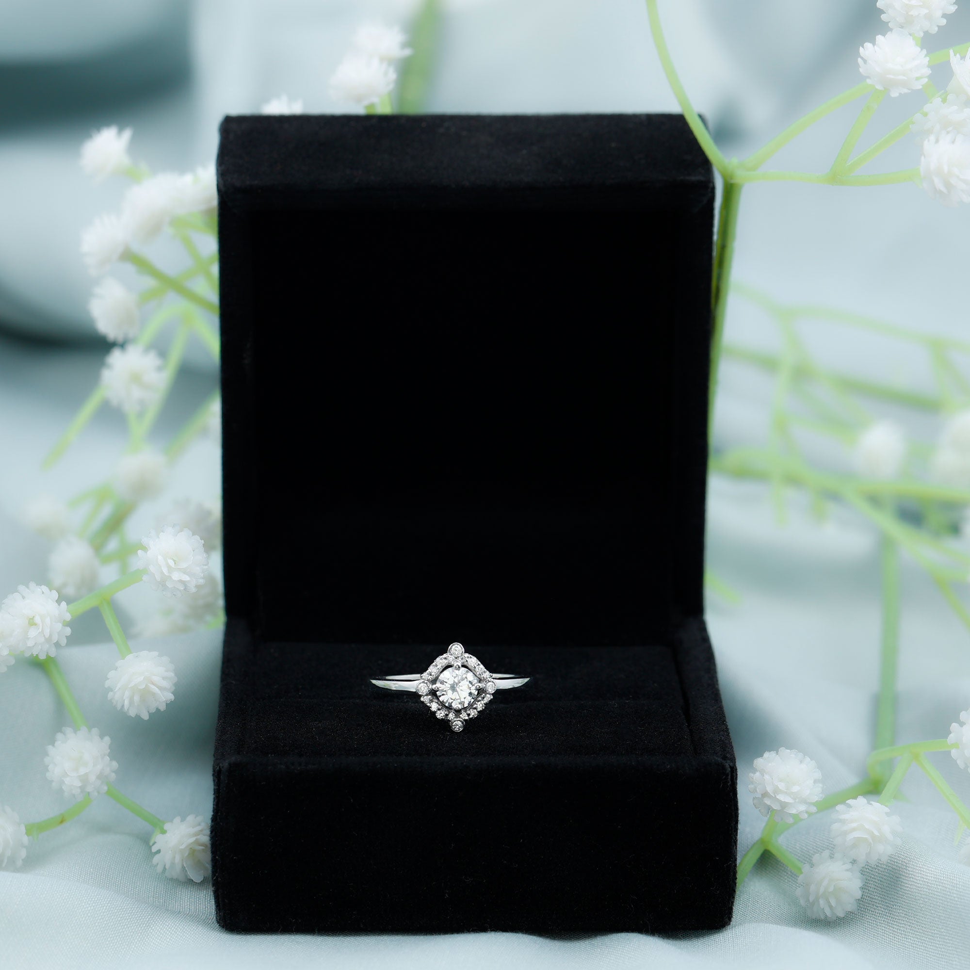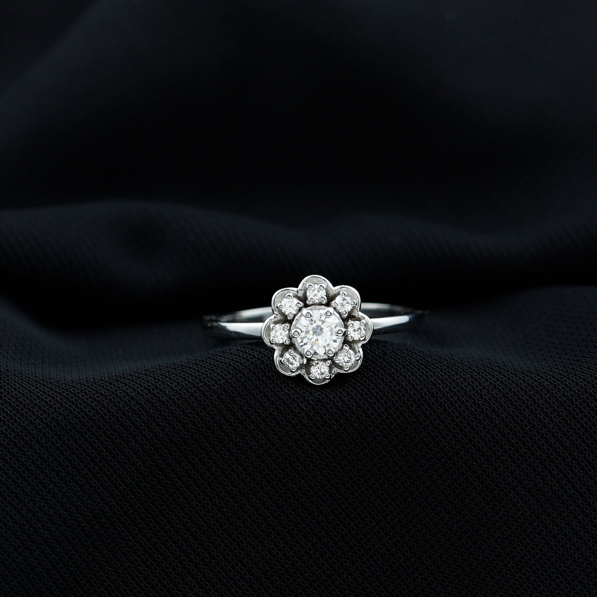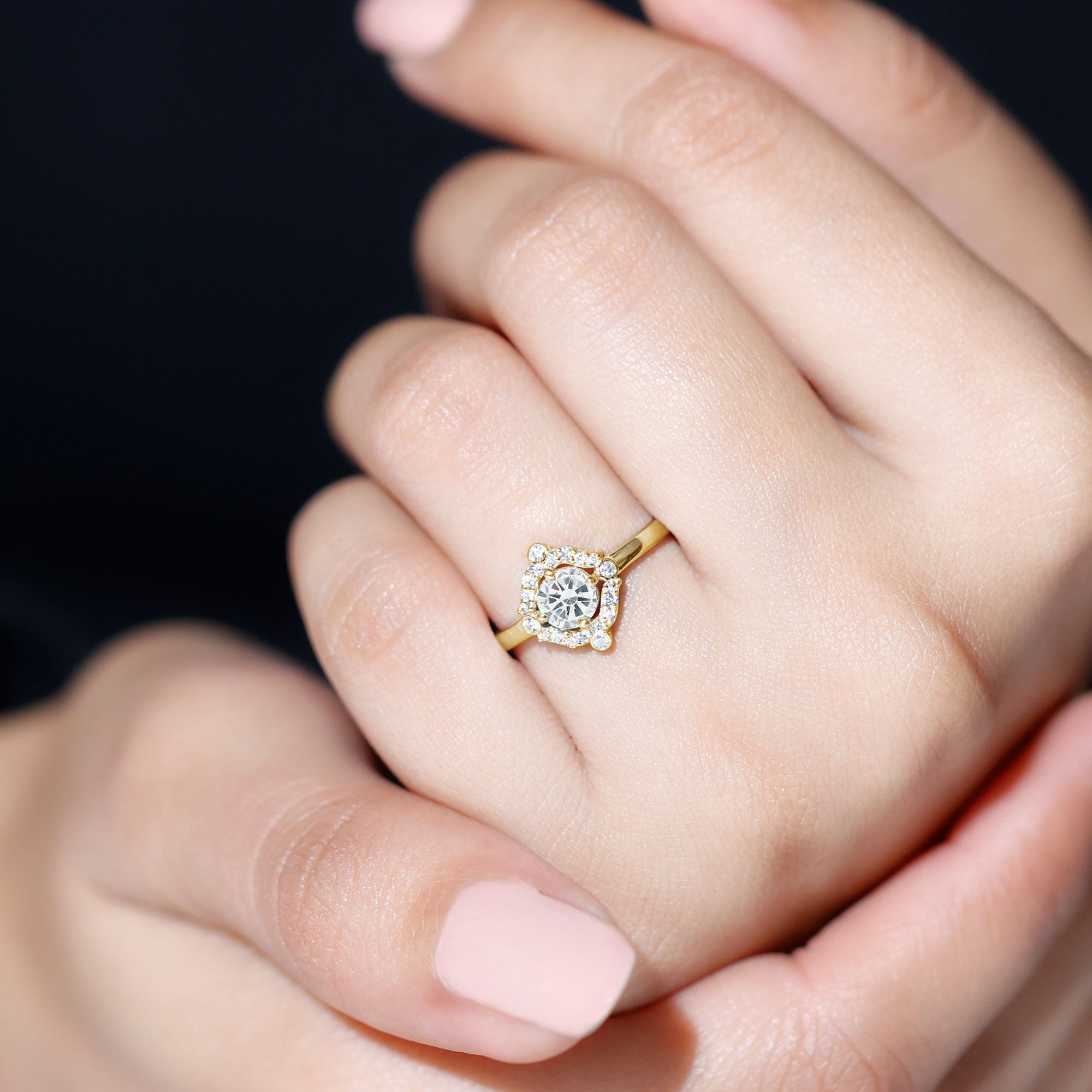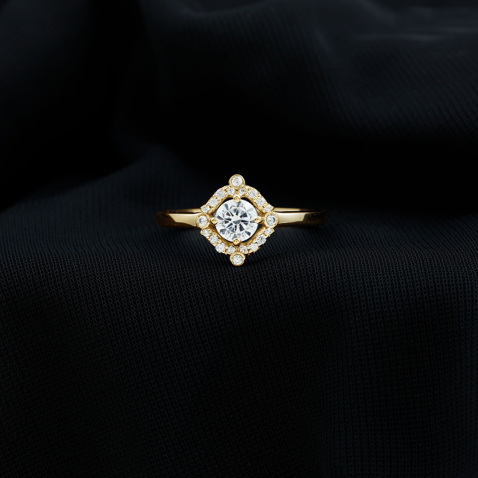 Wish to know a little secret? Not only does it sparkle at its best, but also deceives your eye by offering the illusion of a bigger center stone. So, you could totally take it to mean that it offers you the best of both worlds, making it one of the most unique gemstone rings for women out there!