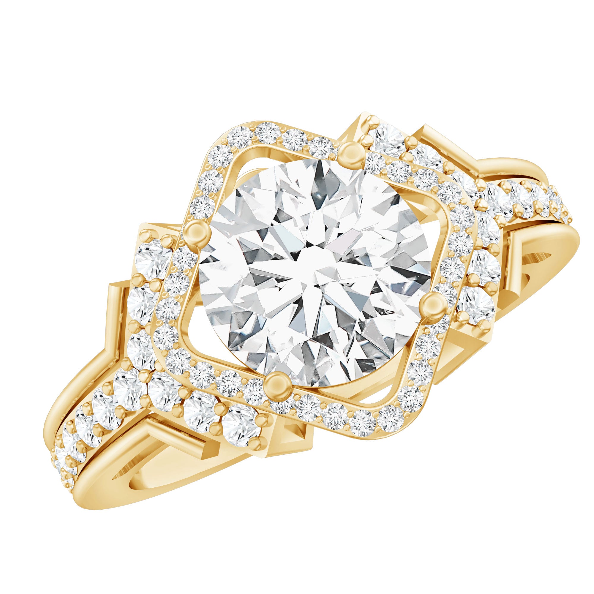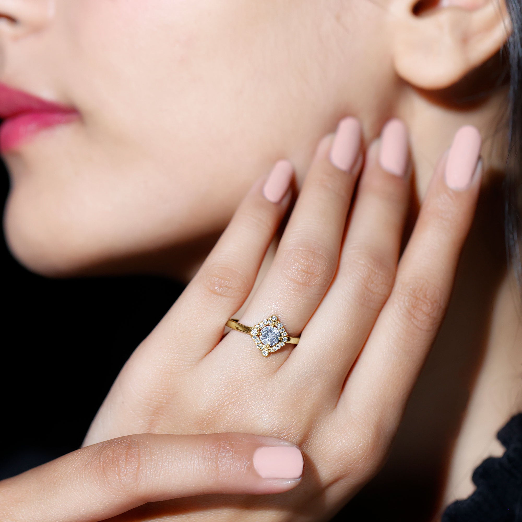 An added layer of sparkle is always a big yes! And that’s practically what drives the appeal for Gemstone Halo Rings. That’s because this style is all about sparkles and is characterized by a row of petite stones (usually diamond or moissanite) that encircle the center stone. Also, a pop of color of a colored gemstone accompanied by brilliance of diamonds/moissanite can get too hard to resist.