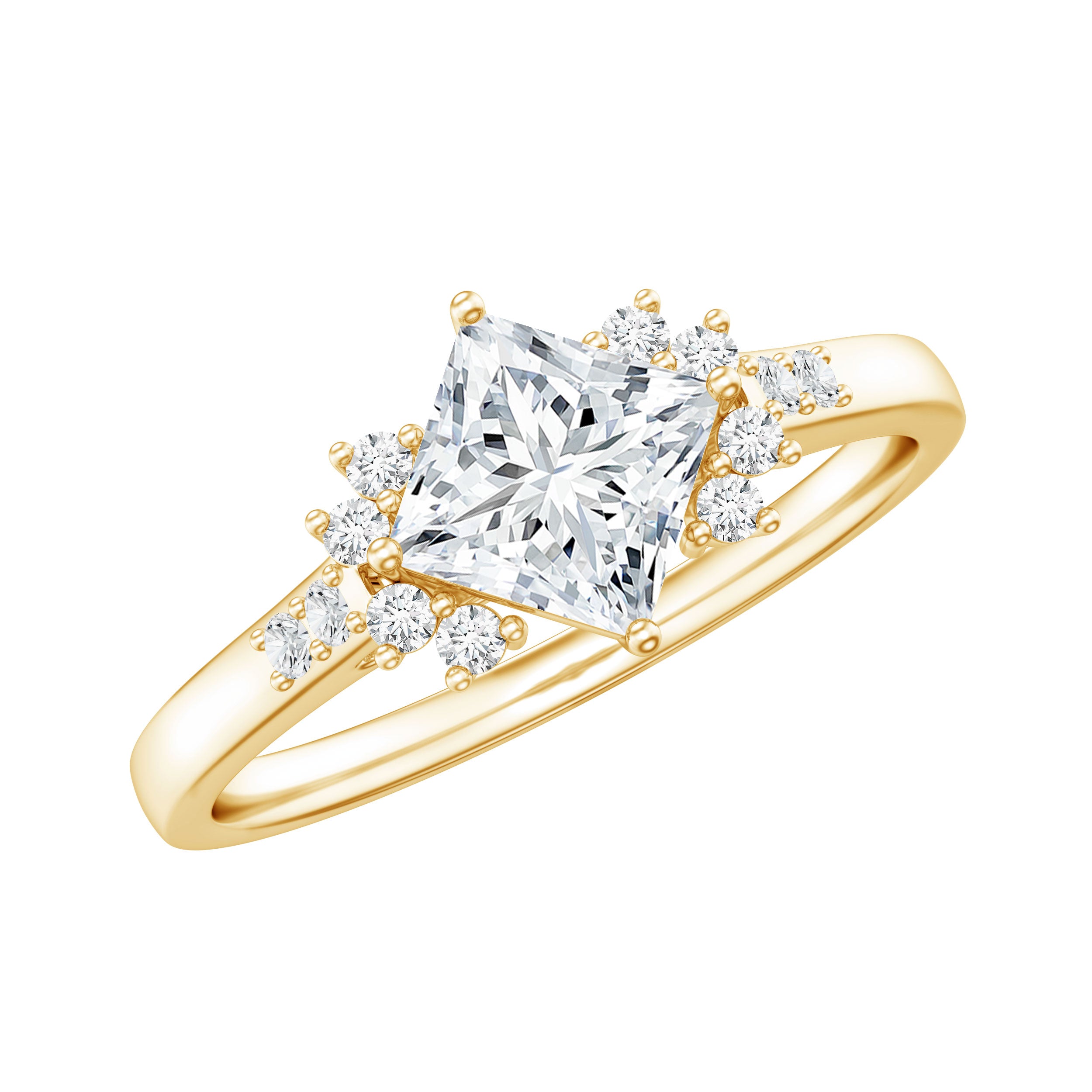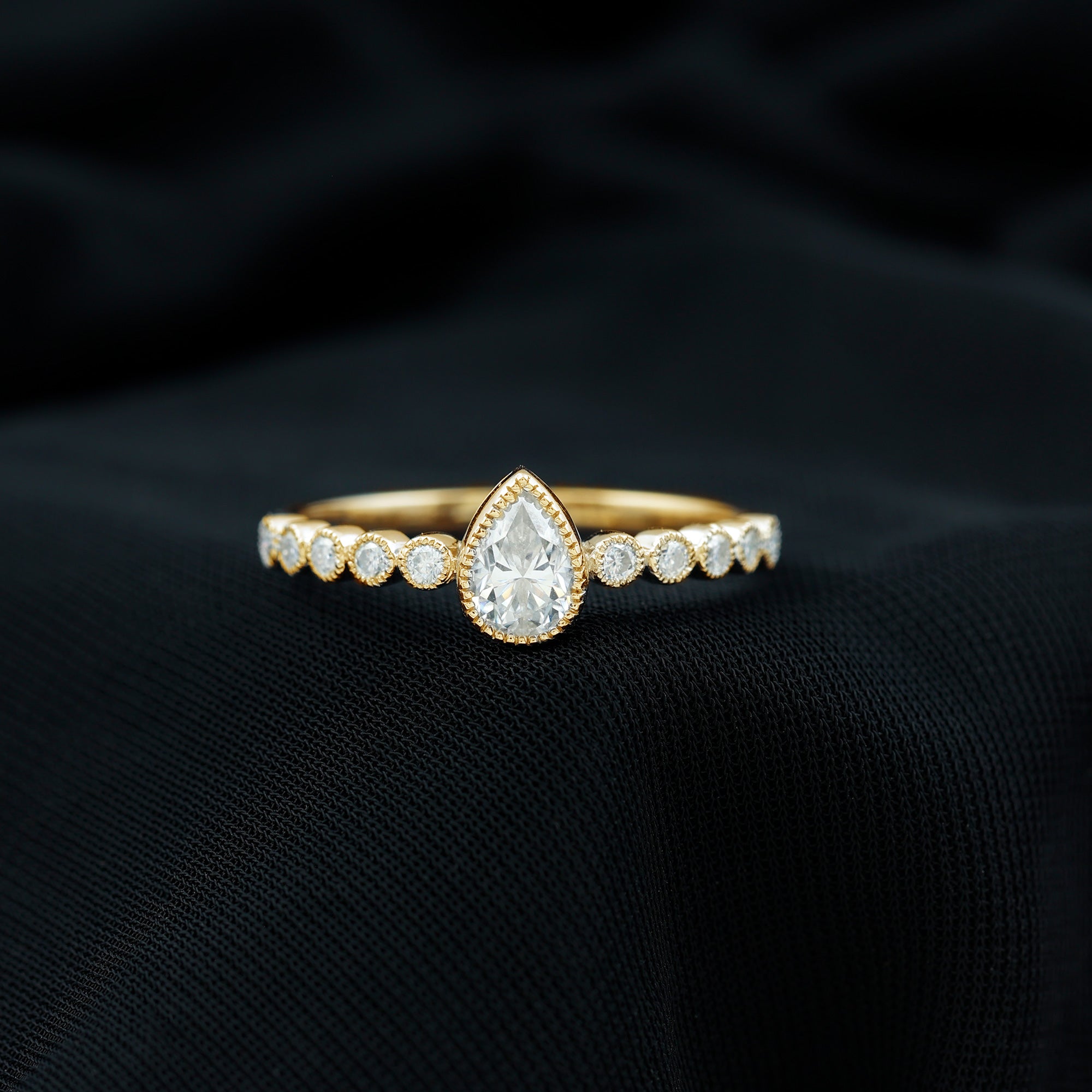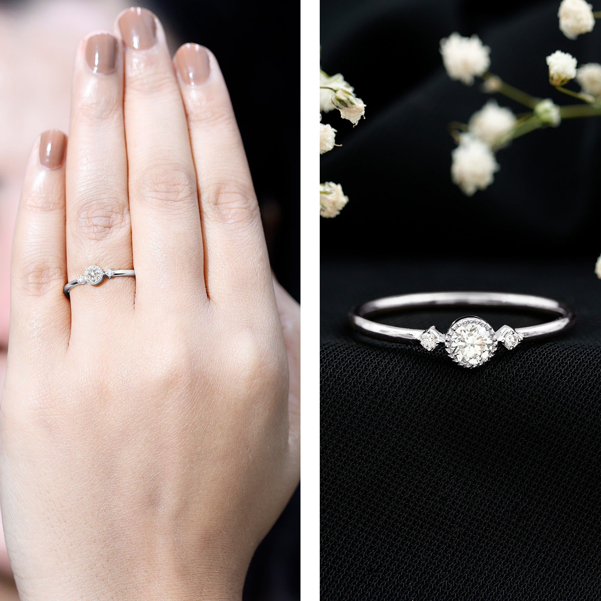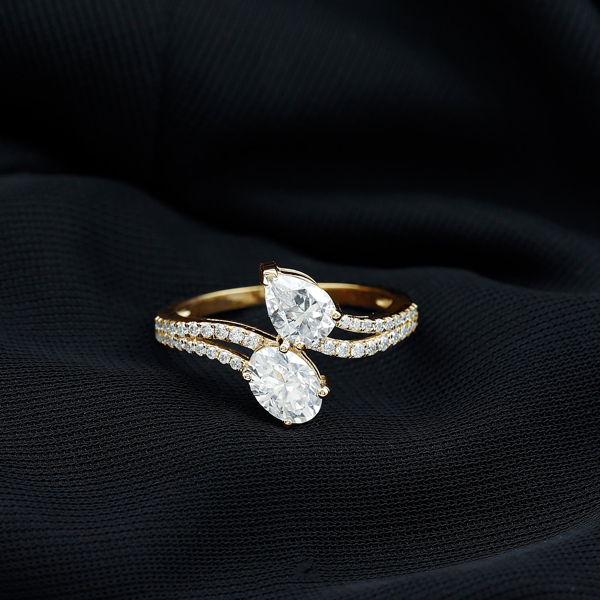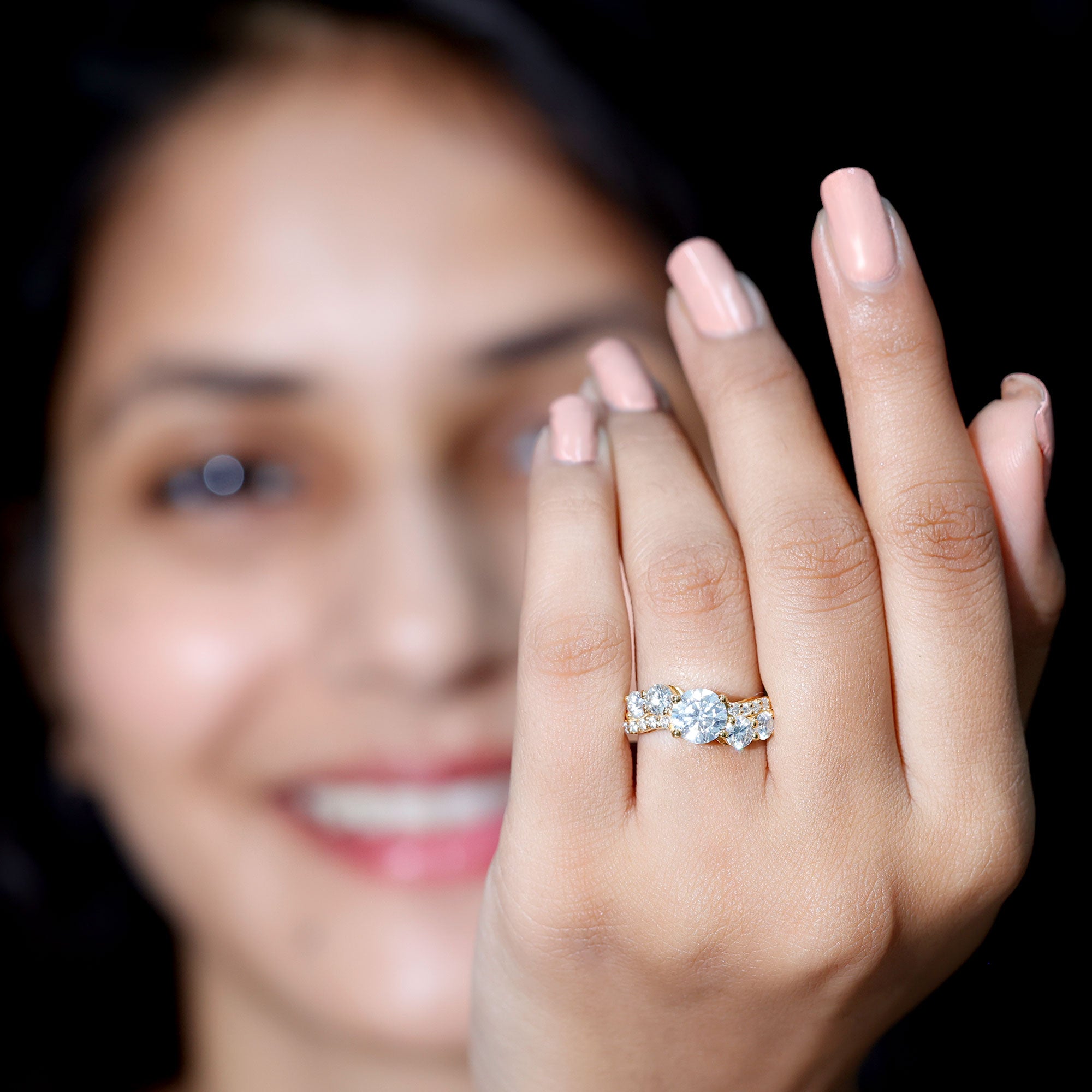 Wish to know a little secret? Not only does it sparkle at its best, but also deceives your eye by offering the illusion of a bigger center stone. So, you could totally take it to mean that it offers you the best of both worlds, making it one of the most unique gemstone rings for women out there!