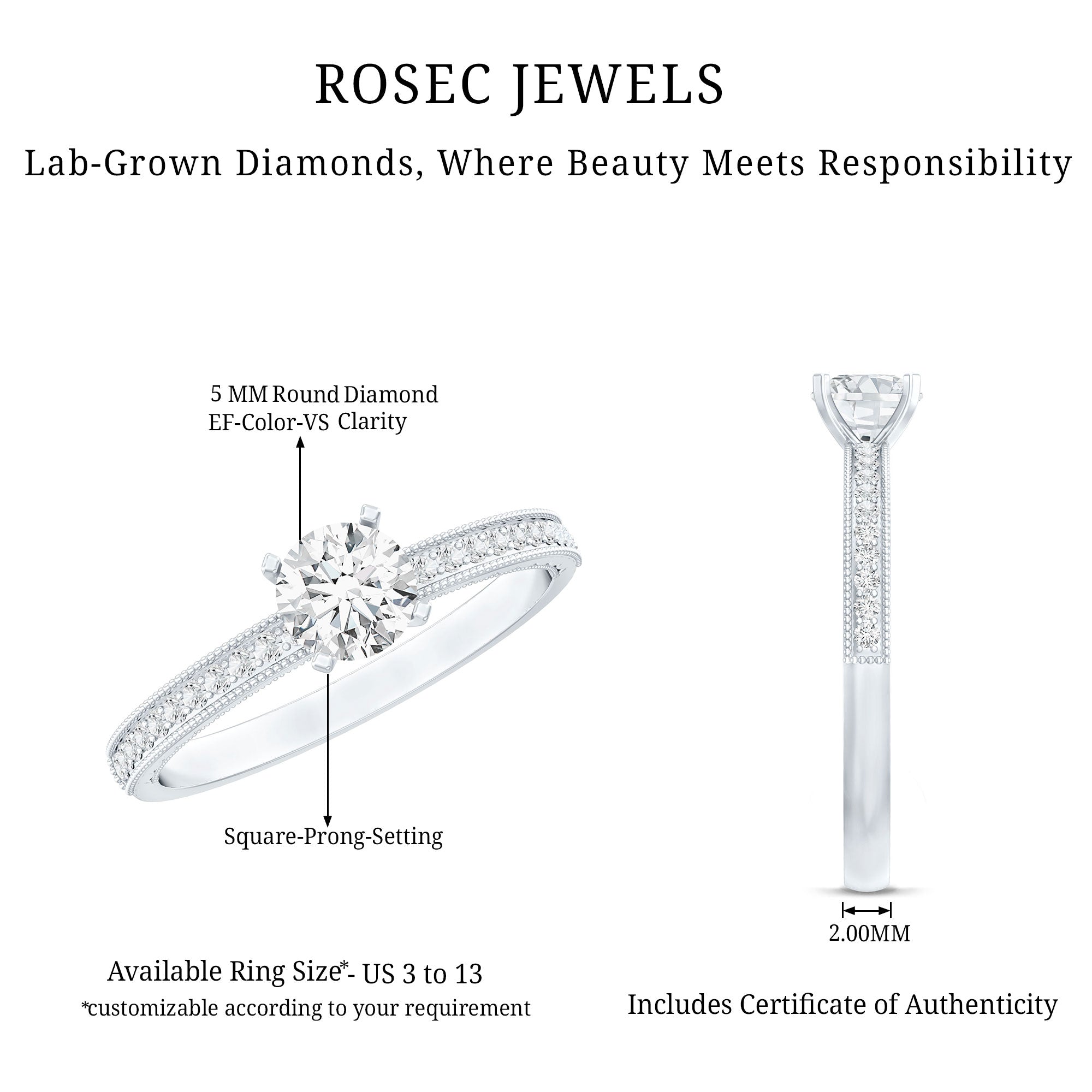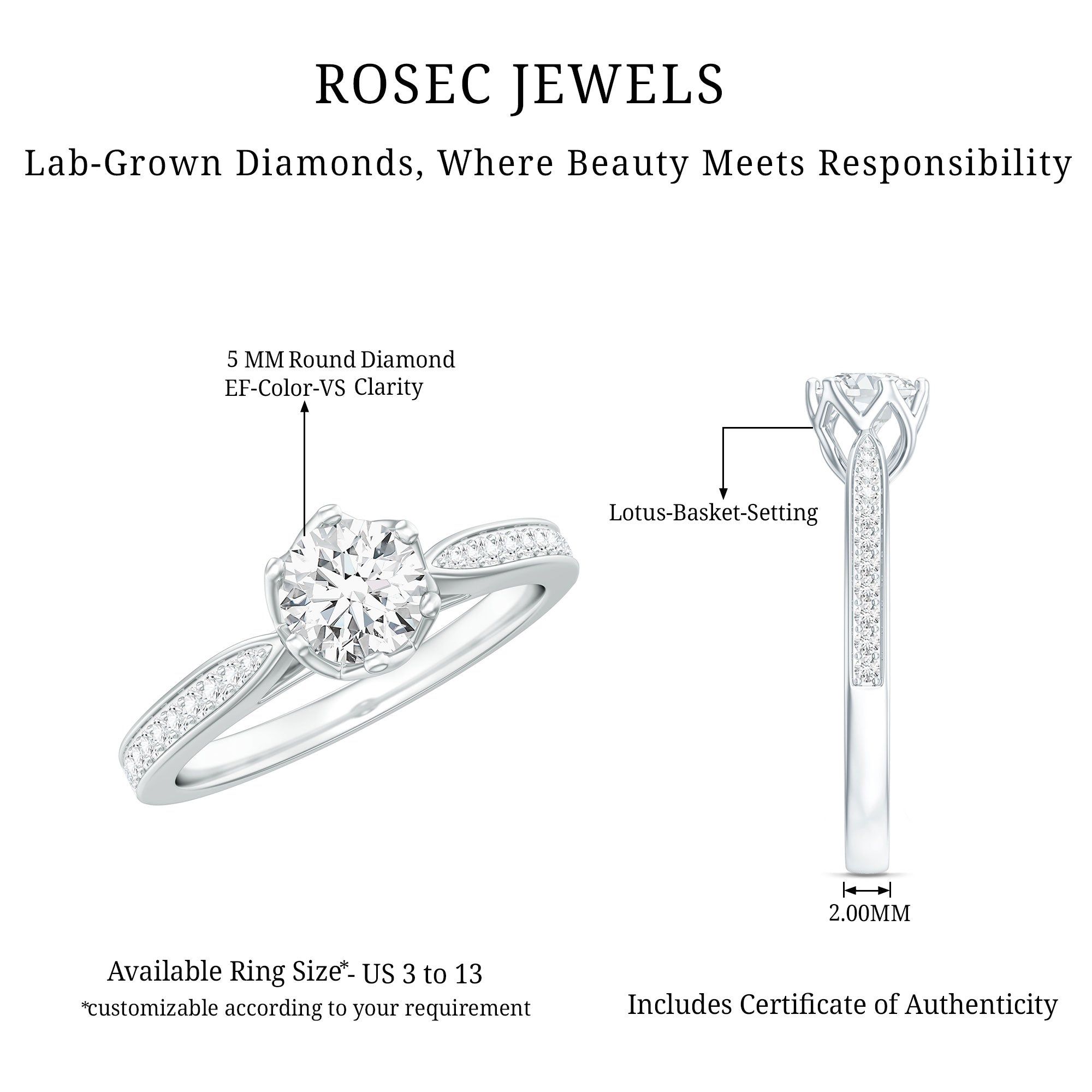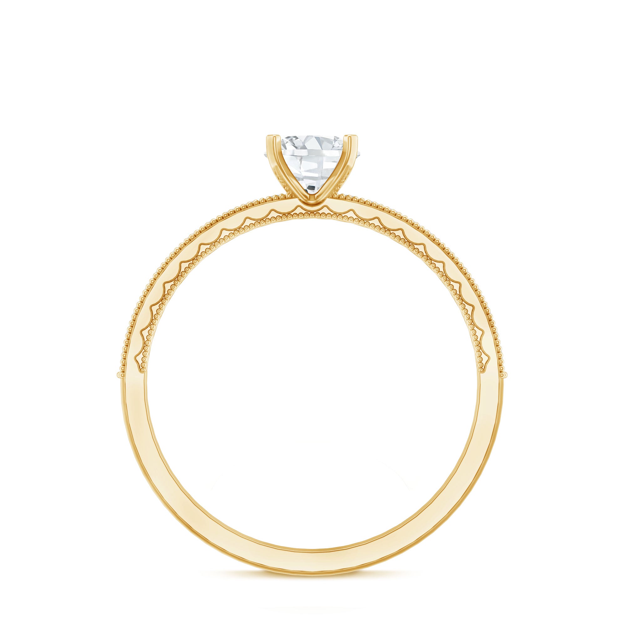 The Center Stone could be of the most traditional round shape or be on the fancier end of the spectrum (pear, marquise, etc.) or even ooze a vintage vibe (Asscher, emerald, etc). You’d be surprised to note what big a difference the shape plays in defining the aesthetics of your Solitaire Ring. The options are endless and everything ultimately boils down to your preference.