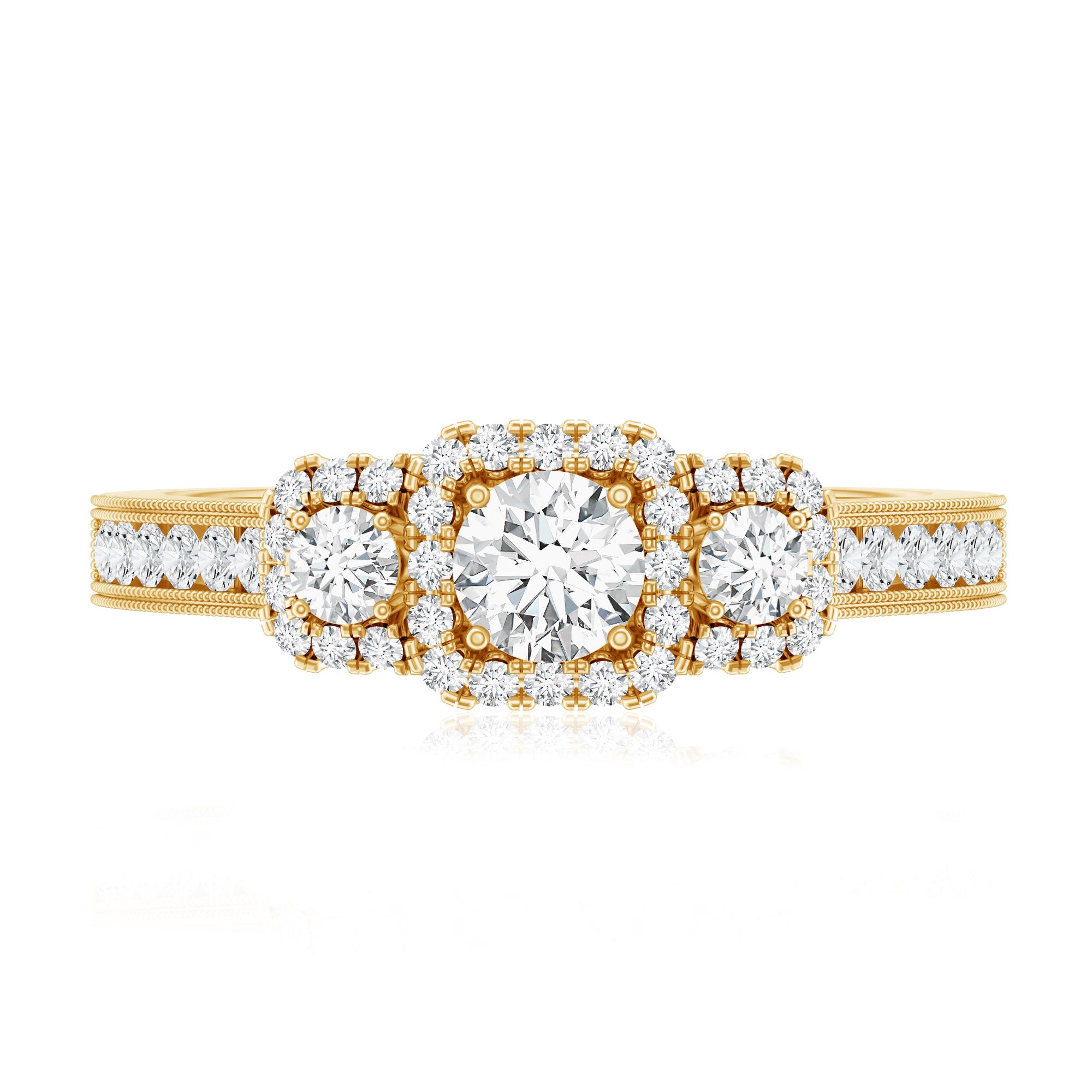 An added layer of sparkle is always a big yes! And that’s practically what drives the appeal for Gemstone Halo Rings. That’s because this style is all about sparkles and is characterized by a row of petite stones (usually diamond or moissanite) that encircle the center stone. Also, a pop of color of a colored gemstone accompanied by brilliance of diamonds/moissanite can get too hard to resist.