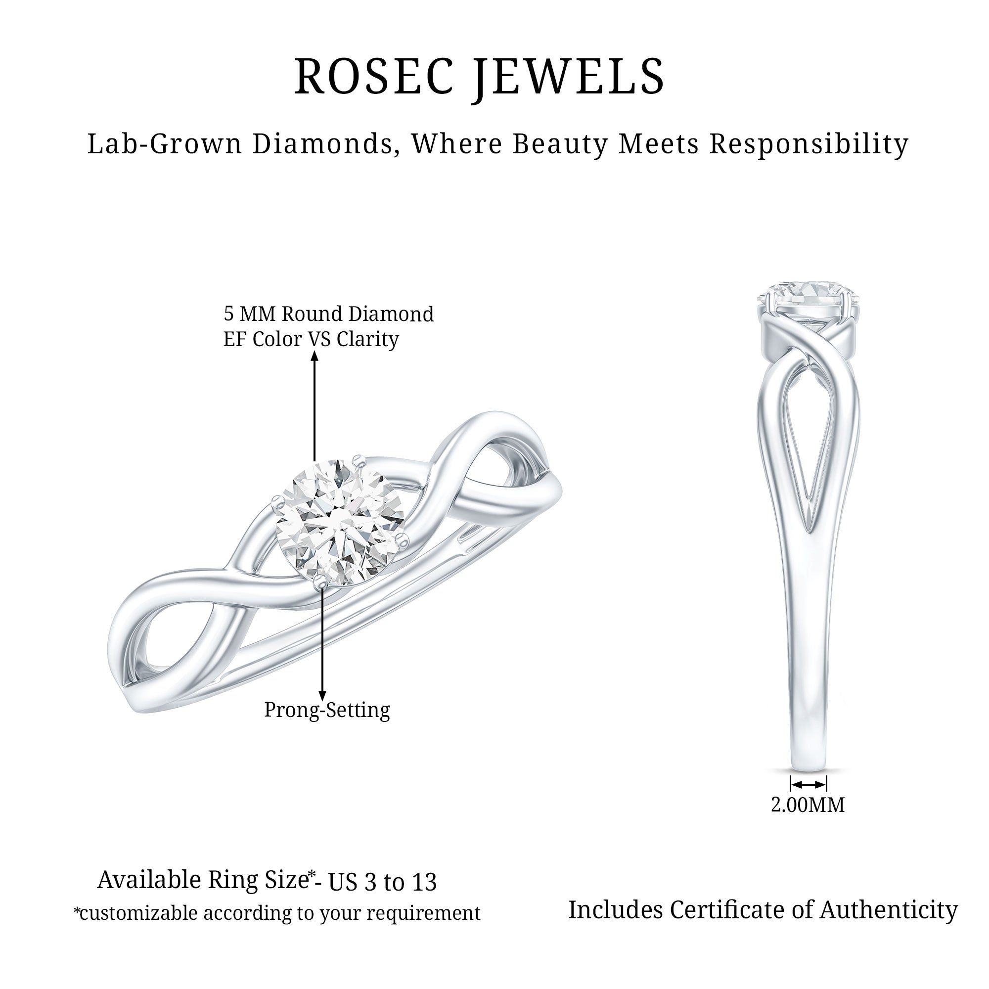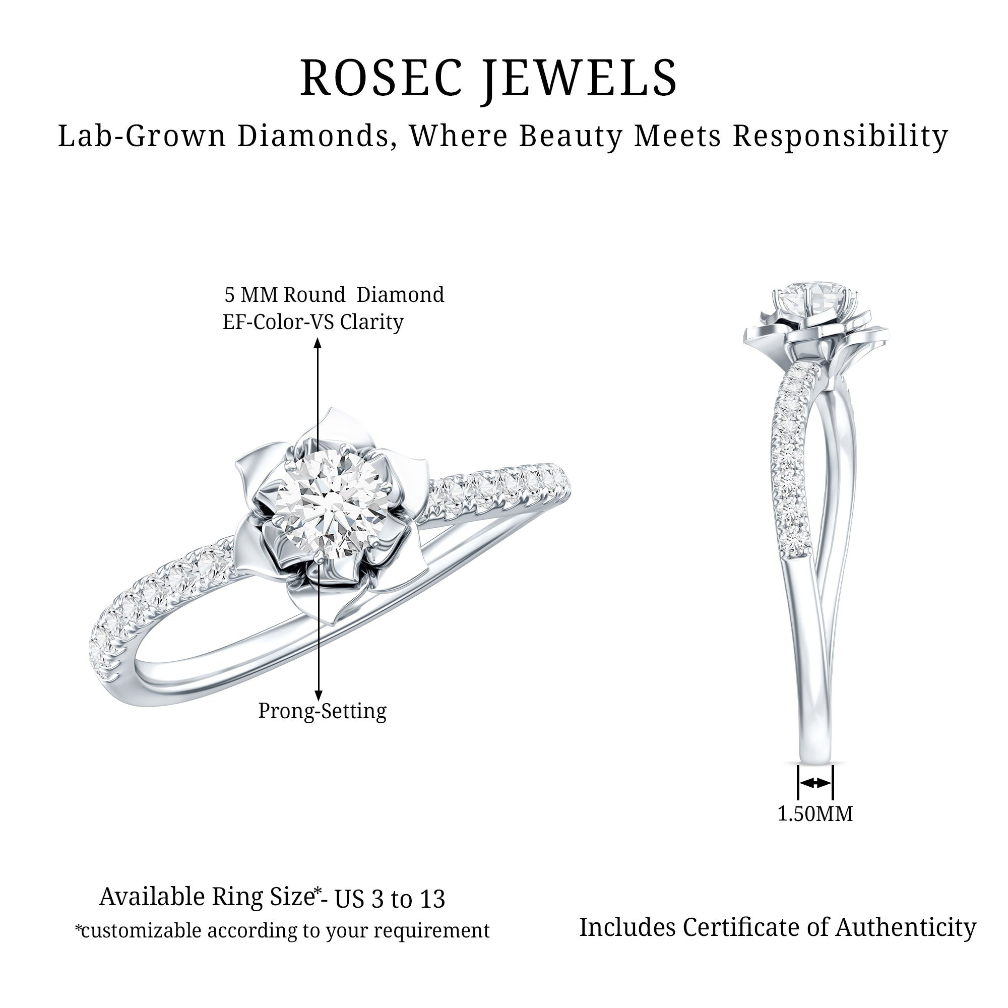 The Center Stone could be of the most traditional round shape or be on the fancier end of the spectrum (pear, marquise, etc.) or even ooze a vintage vibe (Asscher, emerald, etc). You’d be surprised to note what big a difference the shape plays in defining the aesthetics of your Solitaire Ring. The options are endless and everything ultimately boils down to your preference.