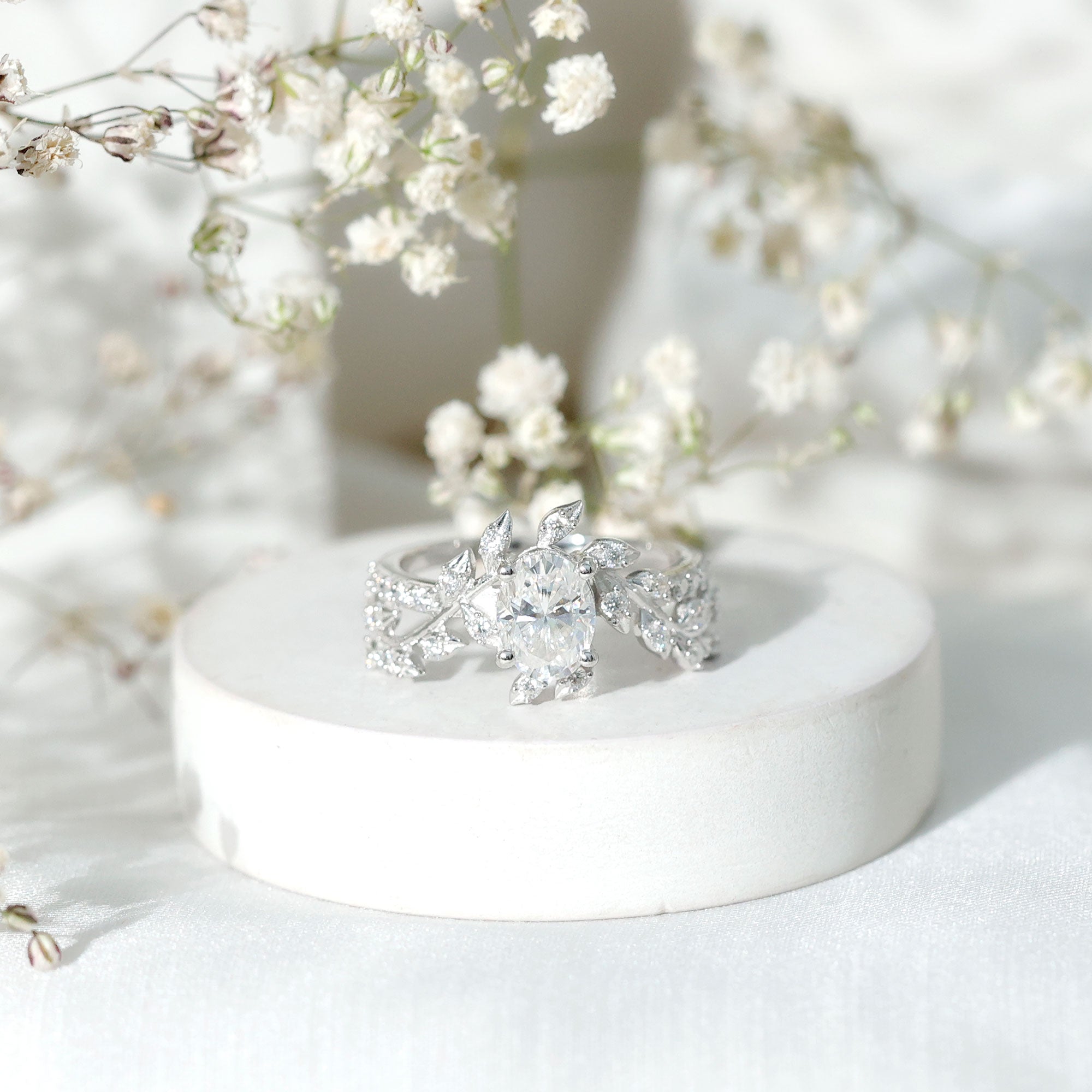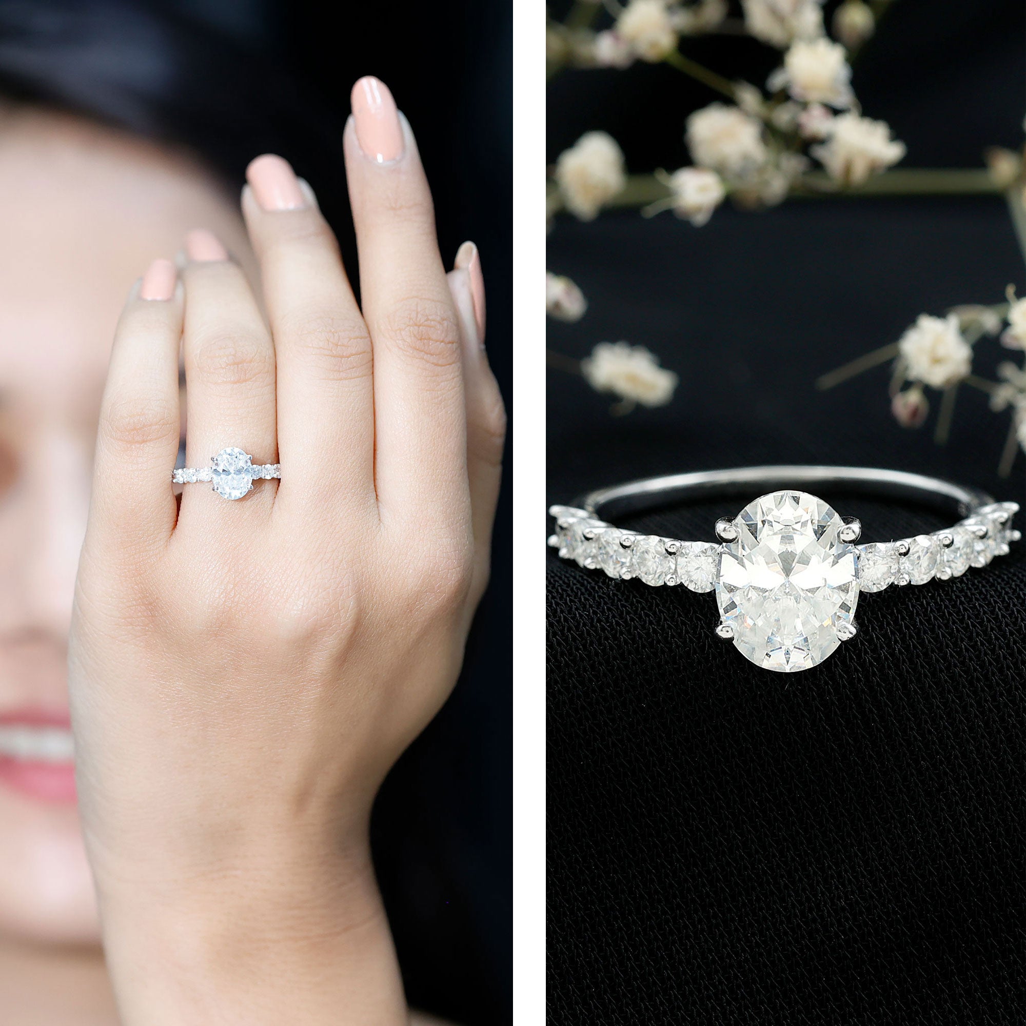 An added layer of sparkle is always a big yes! And that’s practically what drives the appeal for Gemstone Halo Rings. That’s because this style is all about sparkles and is characterized by a row of petite stones (usually diamond or moissanite) that encircle the center stone. Also, a pop of color of a colored gemstone accompanied by brilliance of diamonds/moissanite can get too hard to resist.