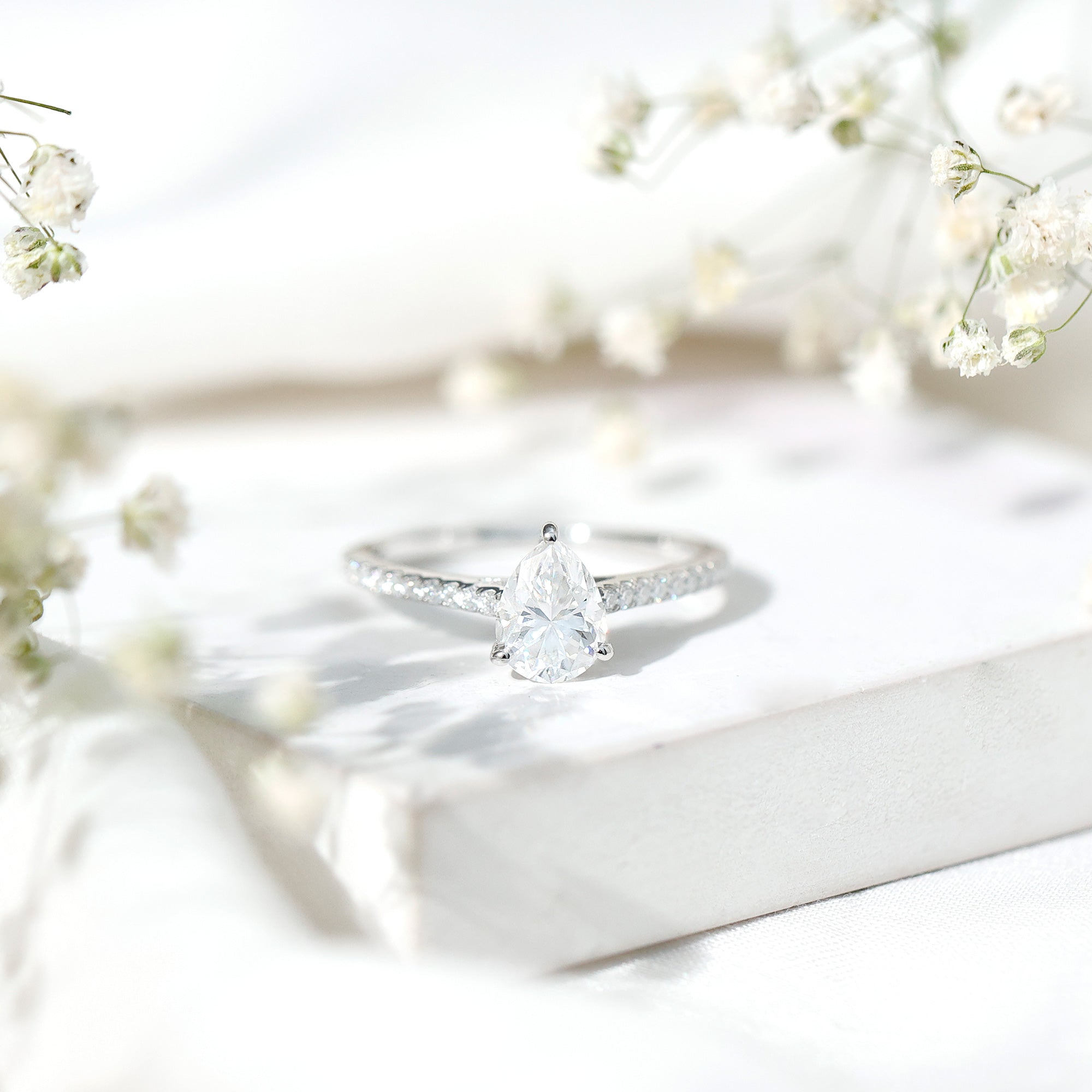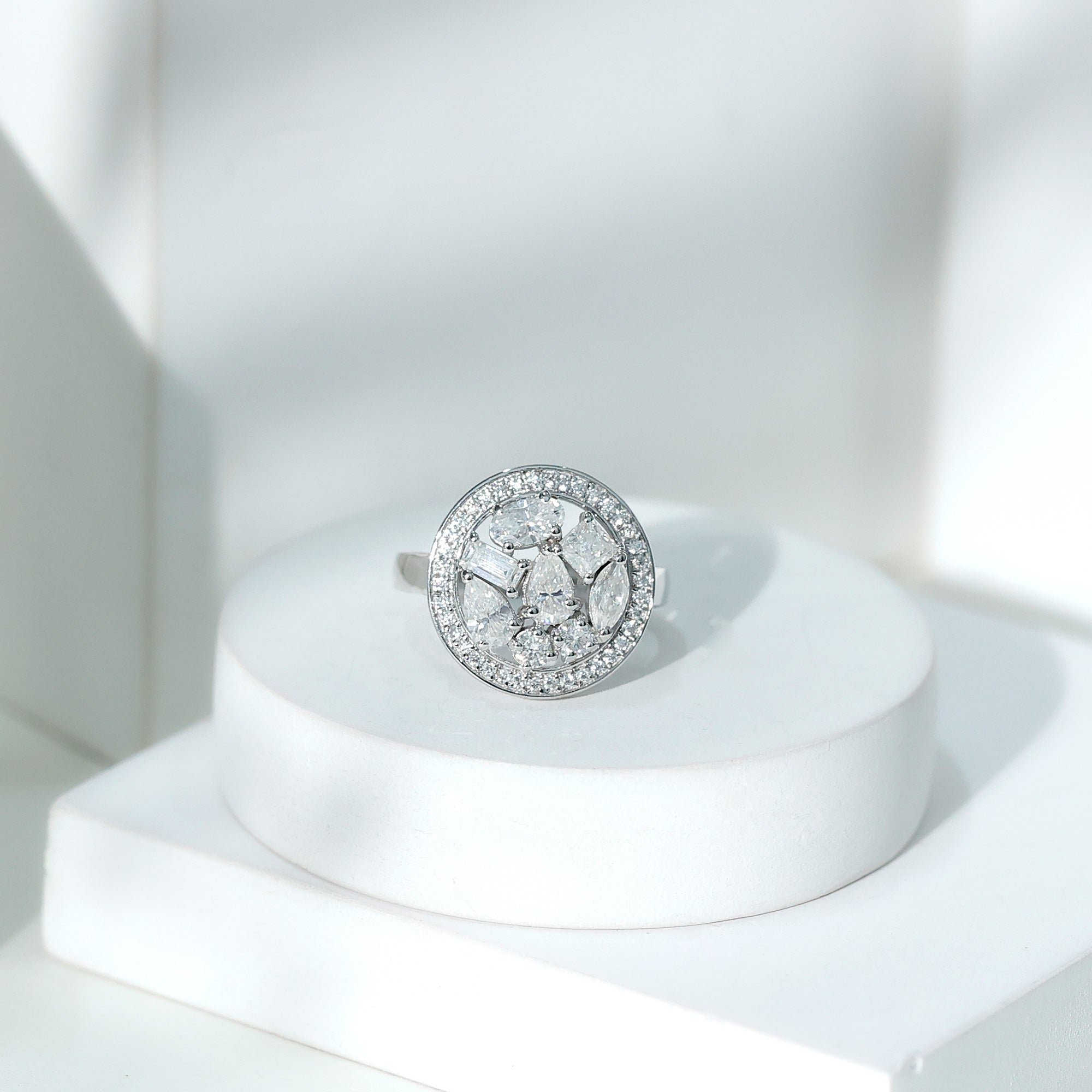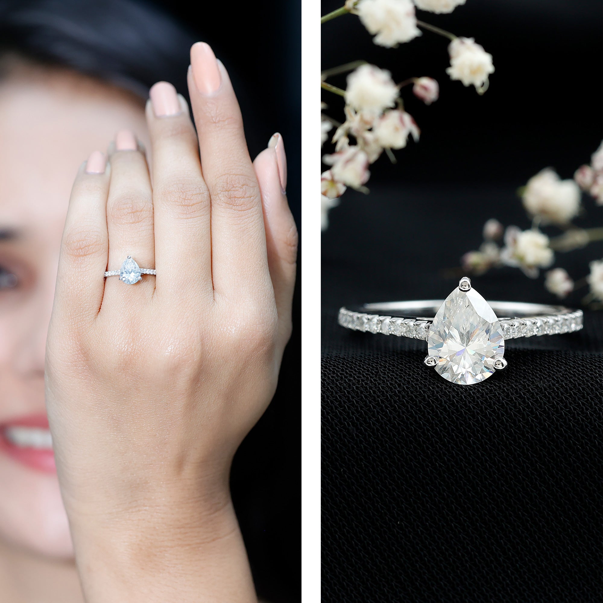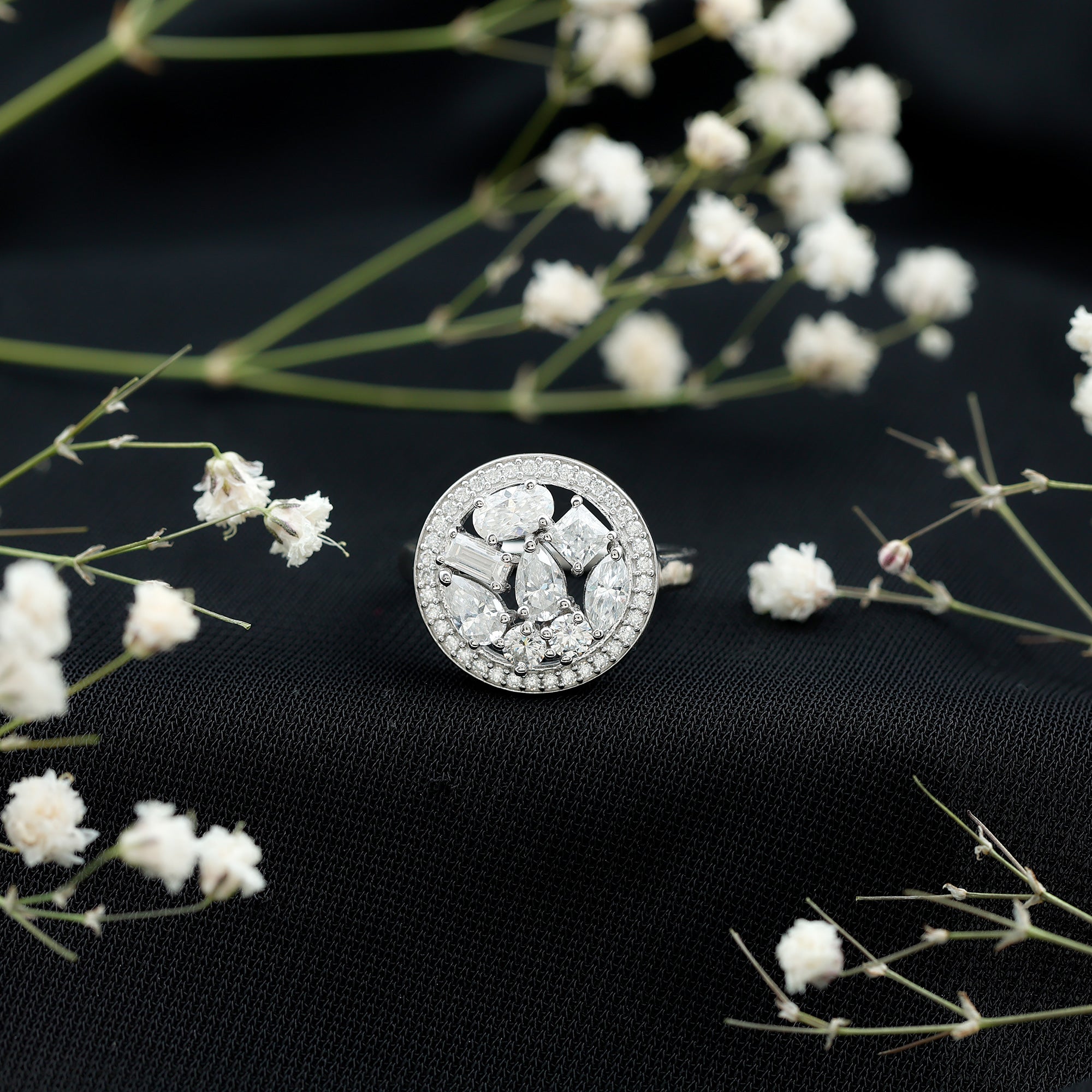 Wish to know a little secret? Not only does it sparkle at its best, but also deceives your eye by offering the illusion of a bigger center stone. So, you could totally take it to mean that it offers you the best of both worlds, making it one of the most unique gemstone rings for women out there!
