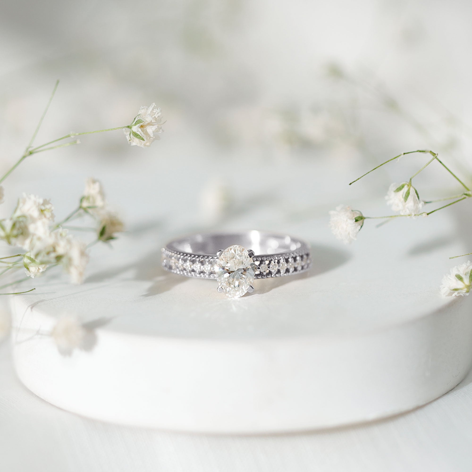 An added layer of sparkle is always a big yes! And that’s practically what drives the appeal for Gemstone Halo Rings. That’s because this style is all about sparkles and is characterized by a row of petite stones (usually diamond or moissanite) that encircle the center stone. Also, a pop of color of a colored gemstone accompanied by brilliance of diamonds/moissanite can get too hard to resist.