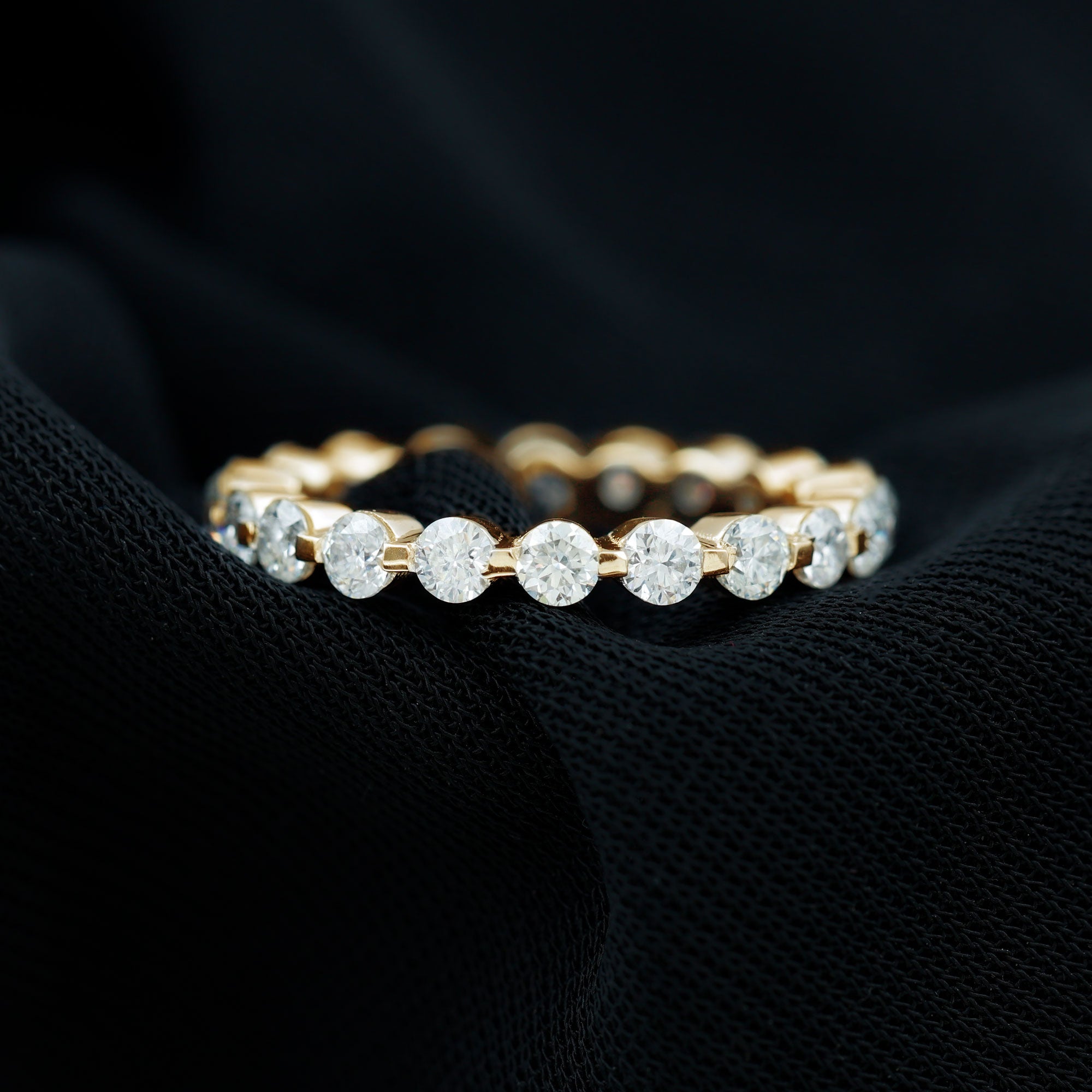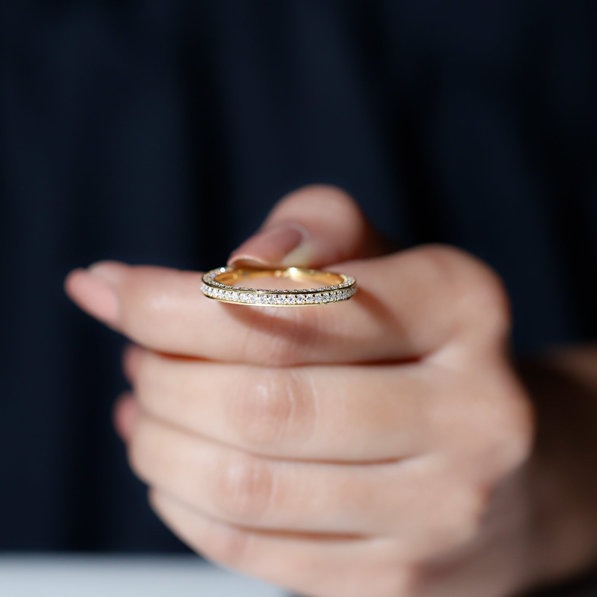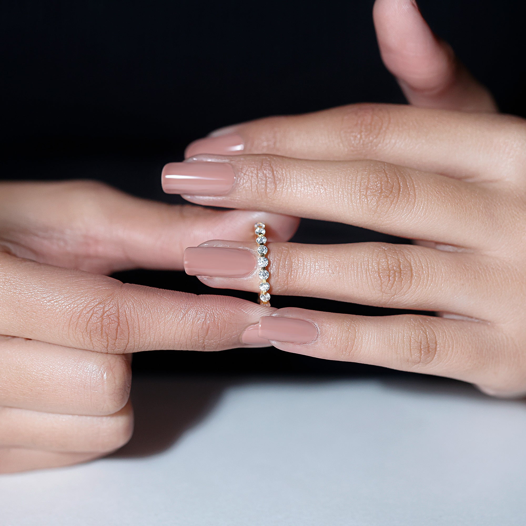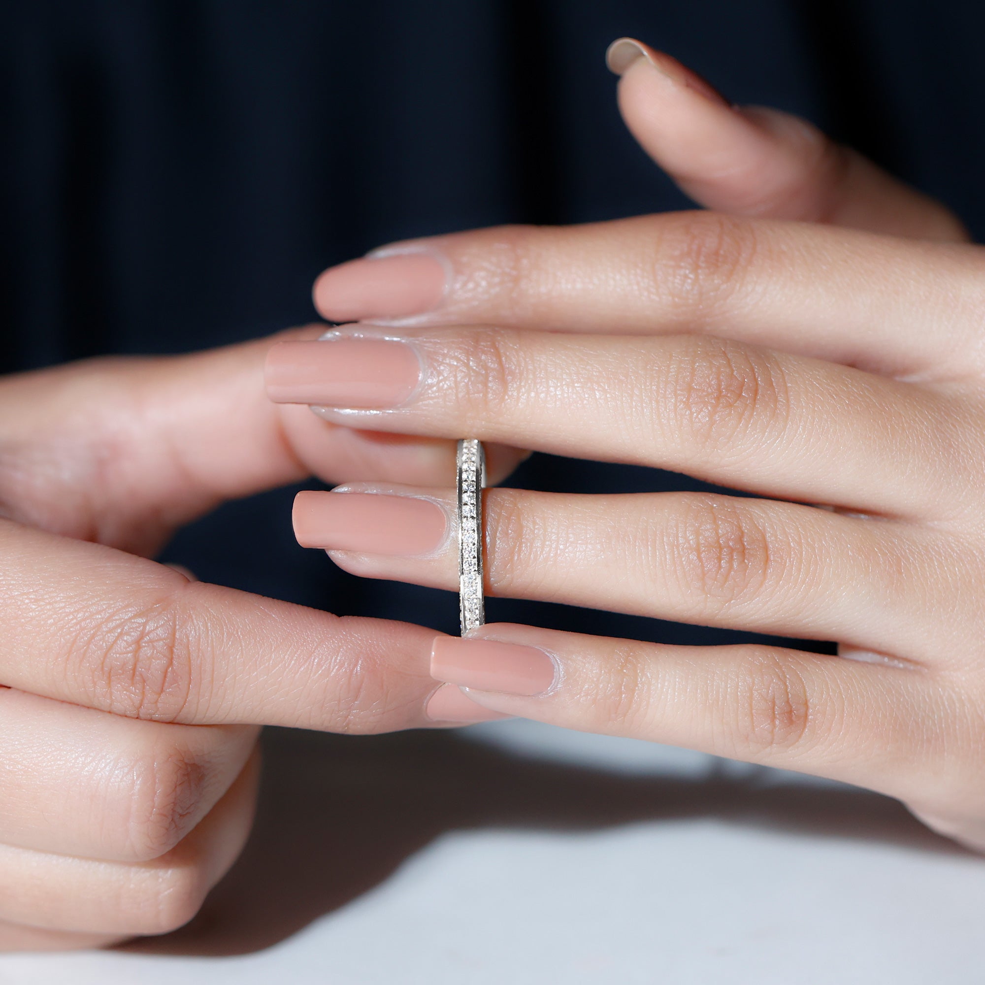 Typically, it is a type of metal ring that features gemstones set in a continuous band around the circumference of the ring. If you’re seeking something simple to flaunt regularly, a band with subtle colored stones such as Morganite, Aquamarine, Moissanite, or a Classic 14K White Gold Gemstone Band could be the one. While if you’re a little more fond of a pop of color, deeply hued stones such as Ruby, Blue Sapphire, Emerald etc., or a Yellow or Rose Gold Gemstone Band might do the job right.