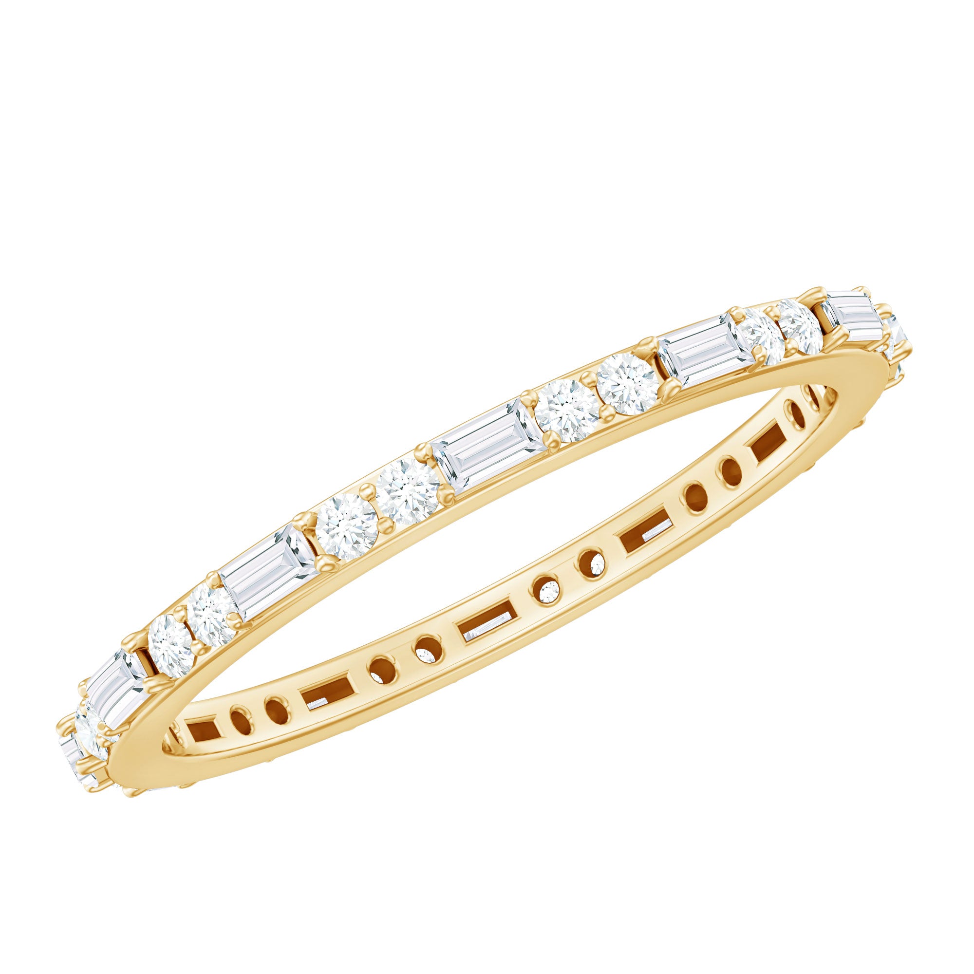 Typically, it is a type of metal ring that features gemstones set in a continuous band around the circumference of the ring. If you’re seeking something simple to flaunt regularly, a band with subtle colored stones such as Morganite, Aquamarine, Moissanite, or a Classic 14K White Gold Gemstone Band could be the one. While if you’re a little more fond of a pop of color, deeply hued stones such as Ruby, Blue Sapphire, Emerald etc., or a Yellow or Rose Gold Gemstone Band might do the job right.