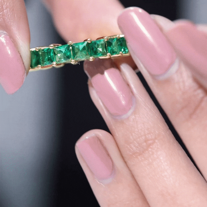 Typically, it is a type of metal ring that features gemstones set in a continuous band around the circumference of the ring. If you’re seeking something simple to flaunt regularly, a band with subtle colored stones such as Morganite, Aquamarine, Moissanite, or a Classic 14K White Gold Gemstone Band could be the one. While if you’re a little more fond of a pop of color, deeply hued stones such as Ruby, Blue Sapphire, Emerald etc., or a Yellow or Rose Gold Gemstone Band might do the job right.