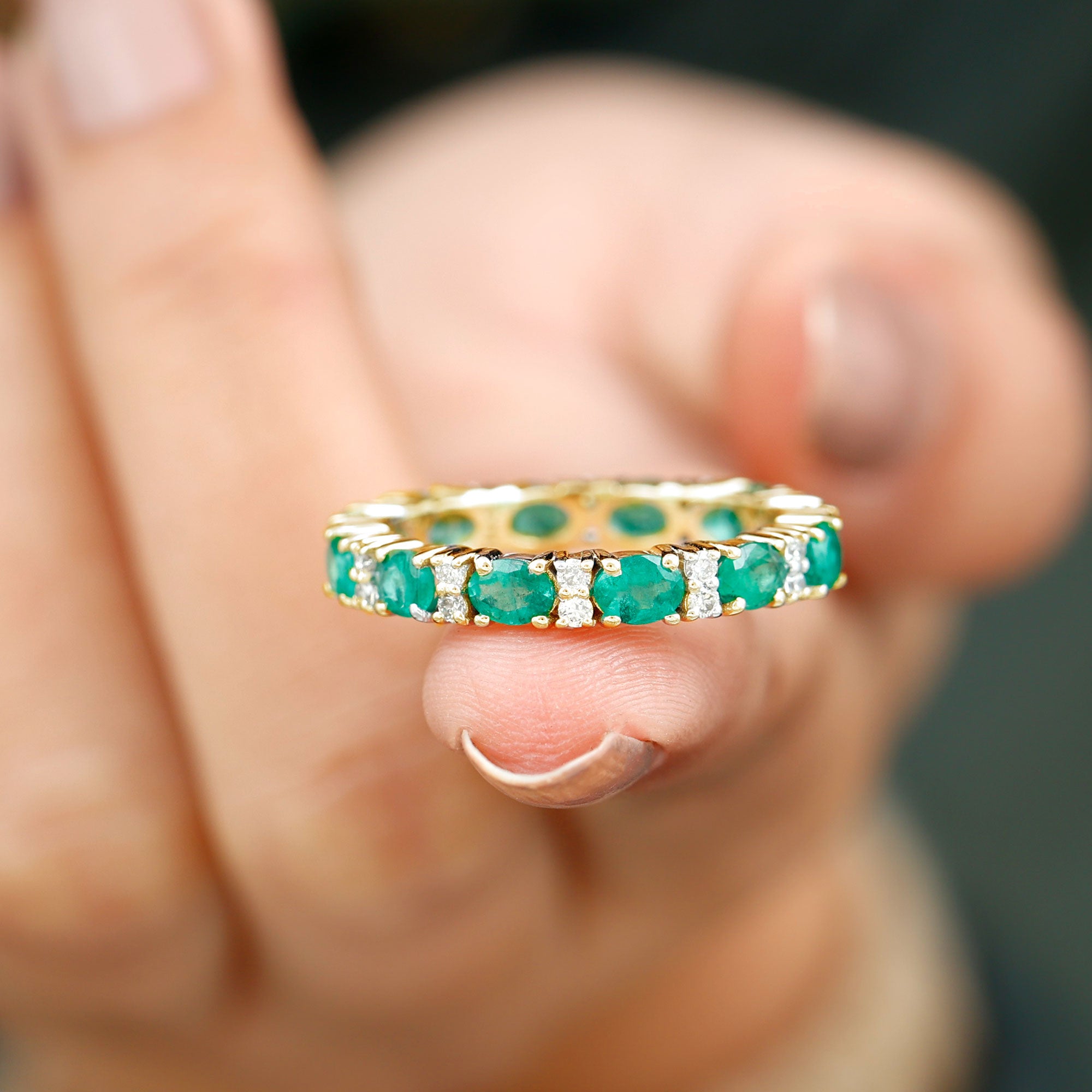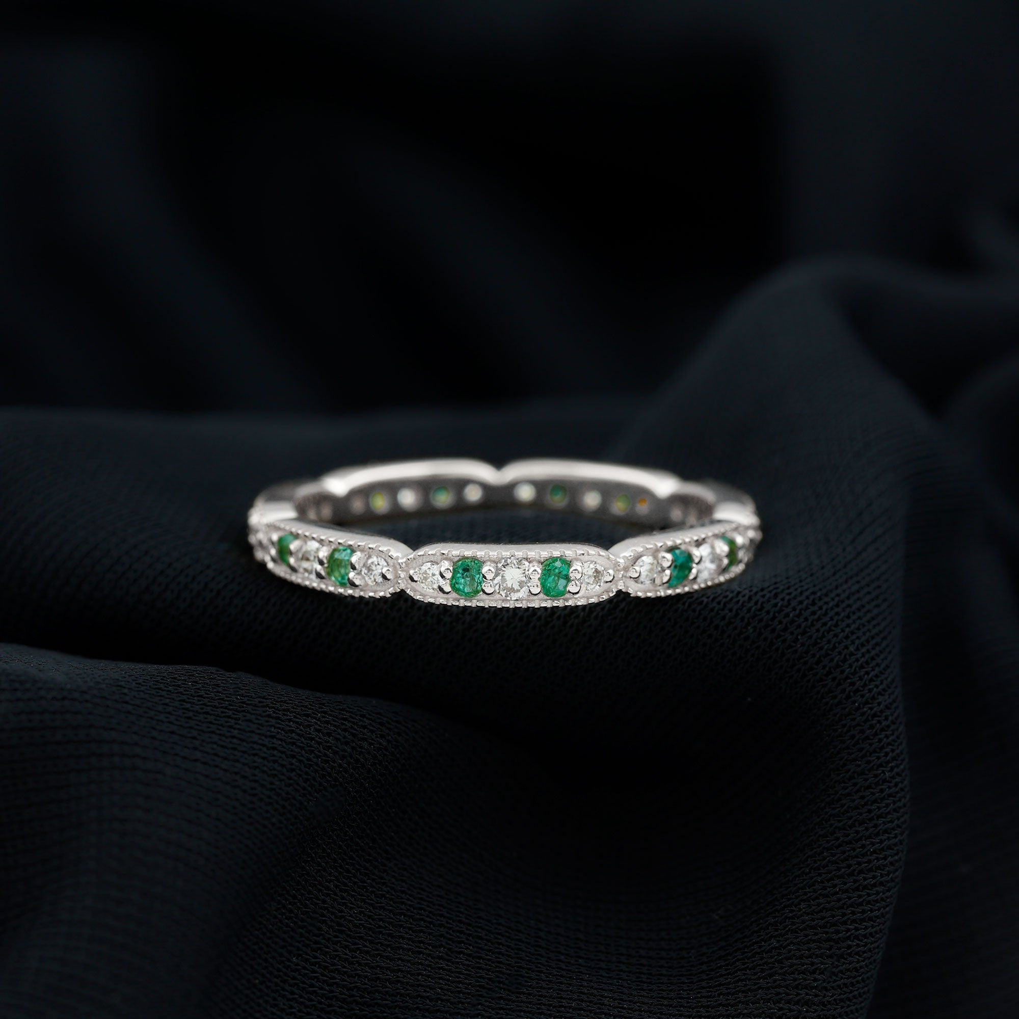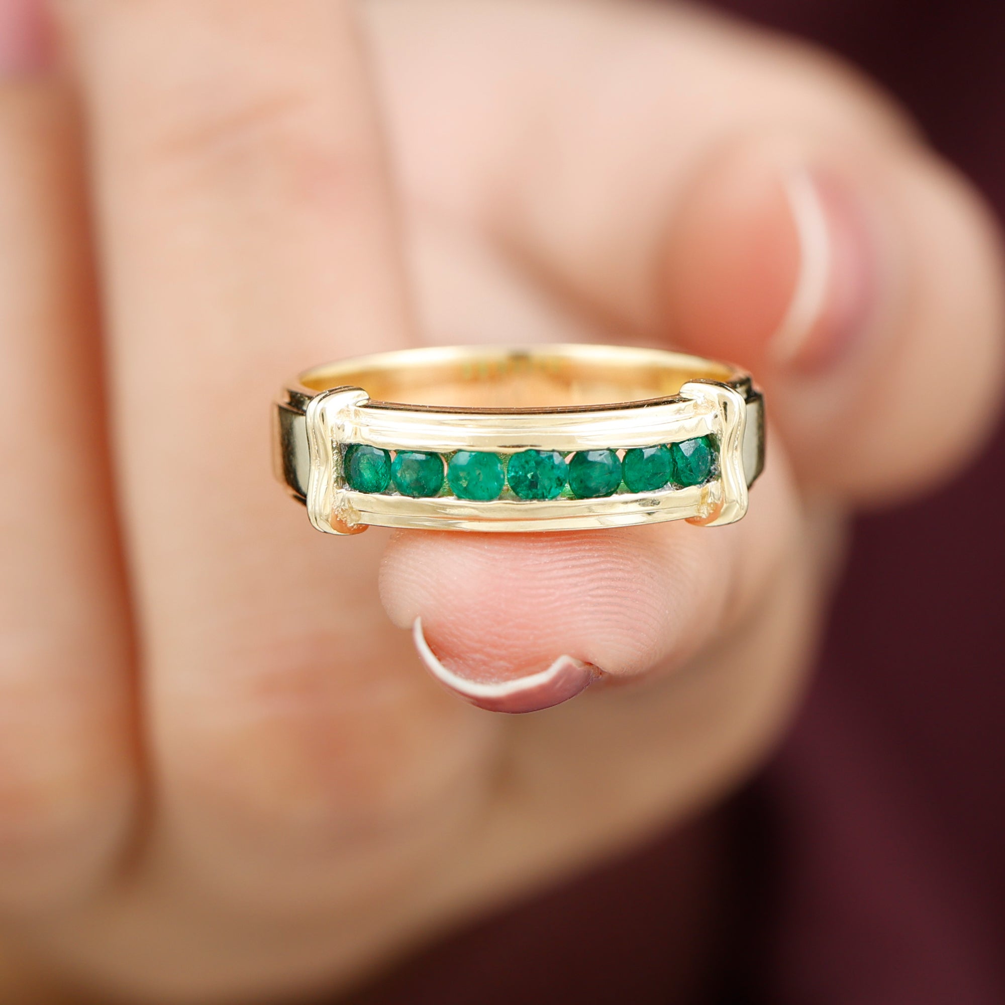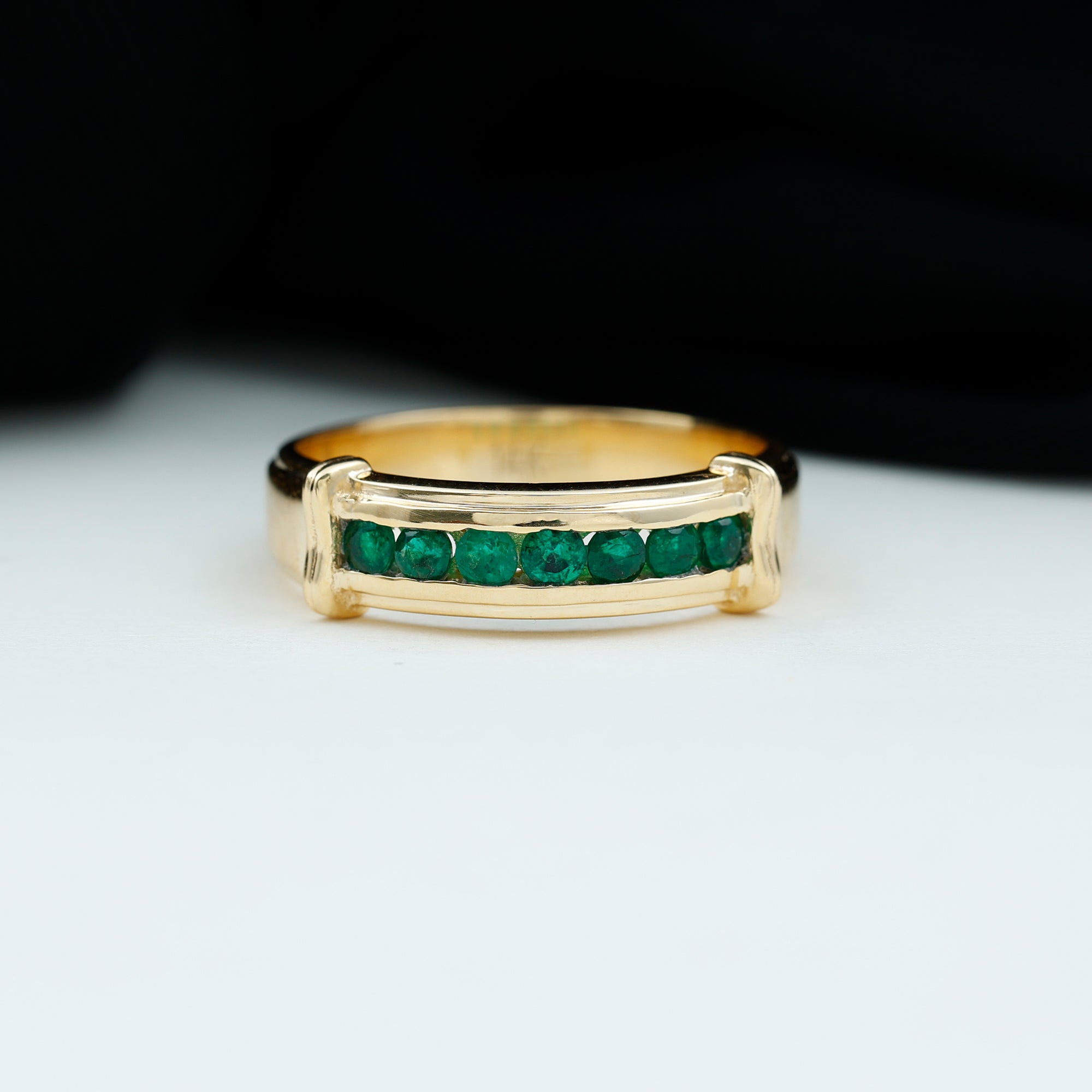 Typically, it is a type of metal ring that features gemstones set in a continuous band around the circumference of the ring. If you’re seeking something simple to flaunt regularly, a band with subtle colored stones such as Morganite, Aquamarine, Moissanite, or a Classic 14K White Gold Gemstone Band could be the one. While if you’re a little more fond of a pop of color, deeply hued stones such as Ruby, Blue Sapphire, Emerald etc., or a Yellow or Rose Gold Gemstone Band might do the job right.