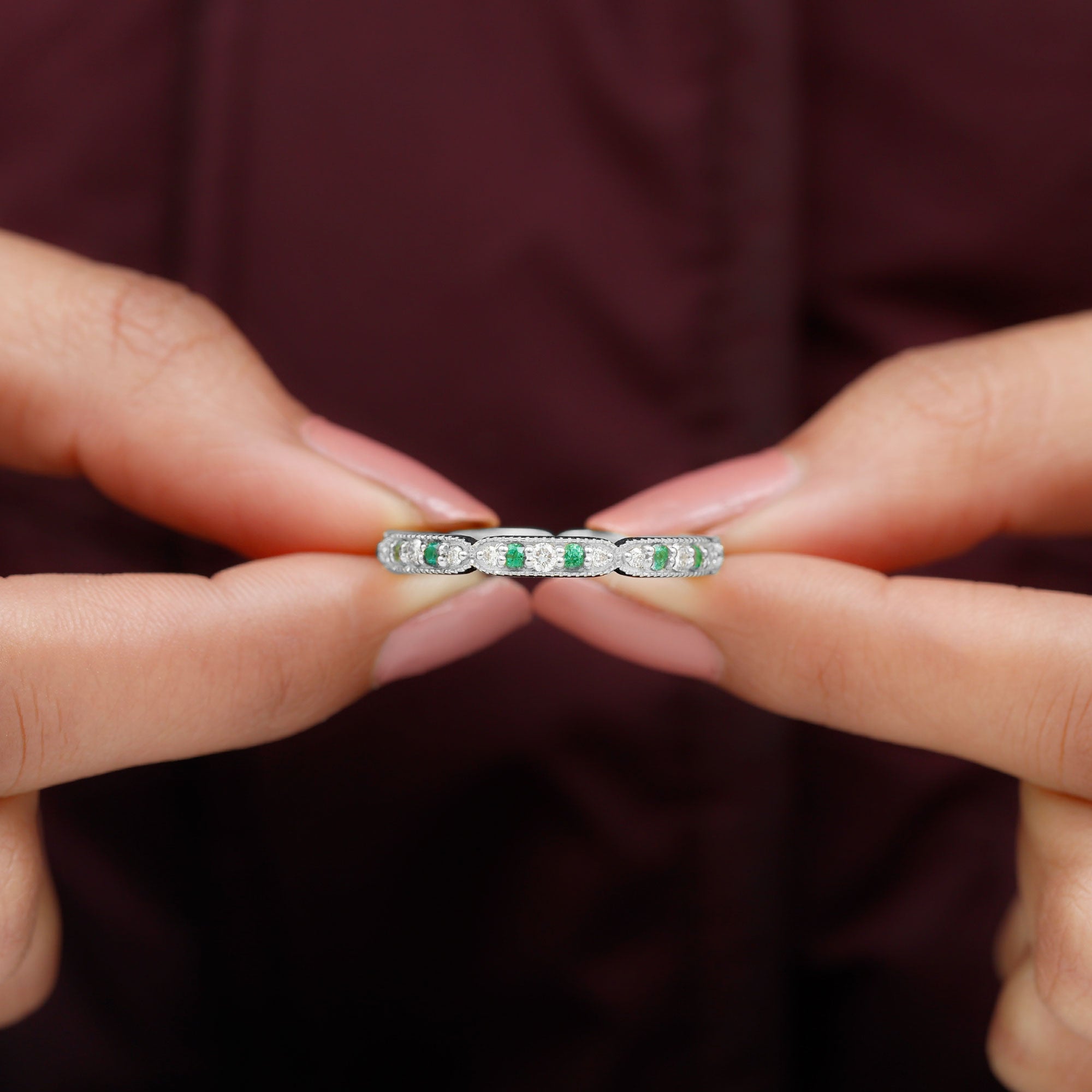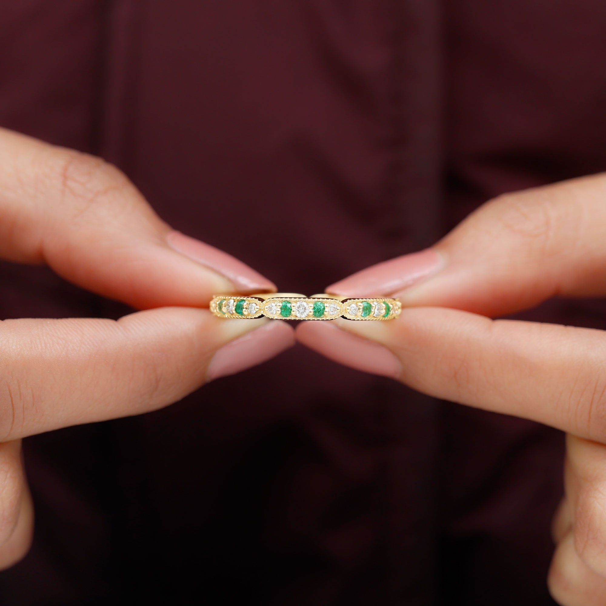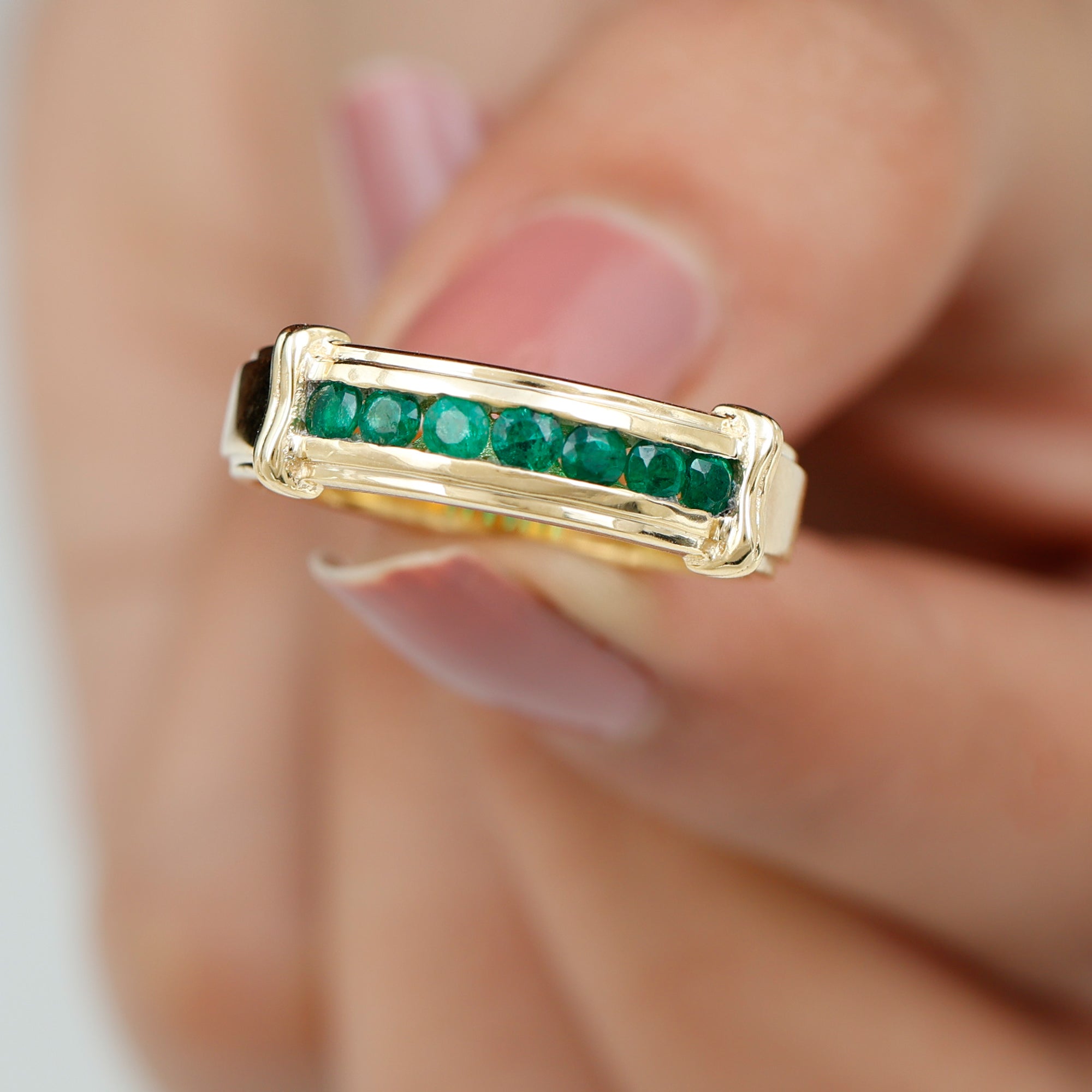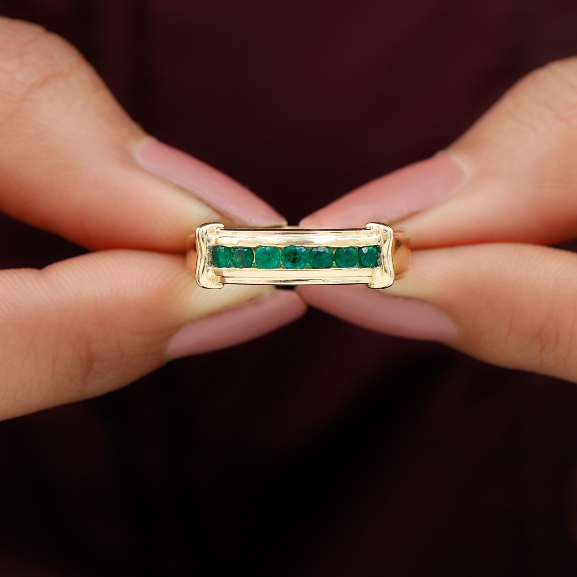 Typically, it is a type of metal ring that features gemstones set in a continuous band around the circumference of the ring. If you’re seeking something simple to flaunt regularly, a band with subtle colored stones such as Morganite, Aquamarine, Moissanite, or a Classic 14K White Gold Gemstone Band could be the one. While if you’re a little more fond of a pop of color, deeply hued stones such as Ruby, Blue Sapphire, Emerald etc., or a Yellow or Rose Gold Gemstone Band might do the job right.